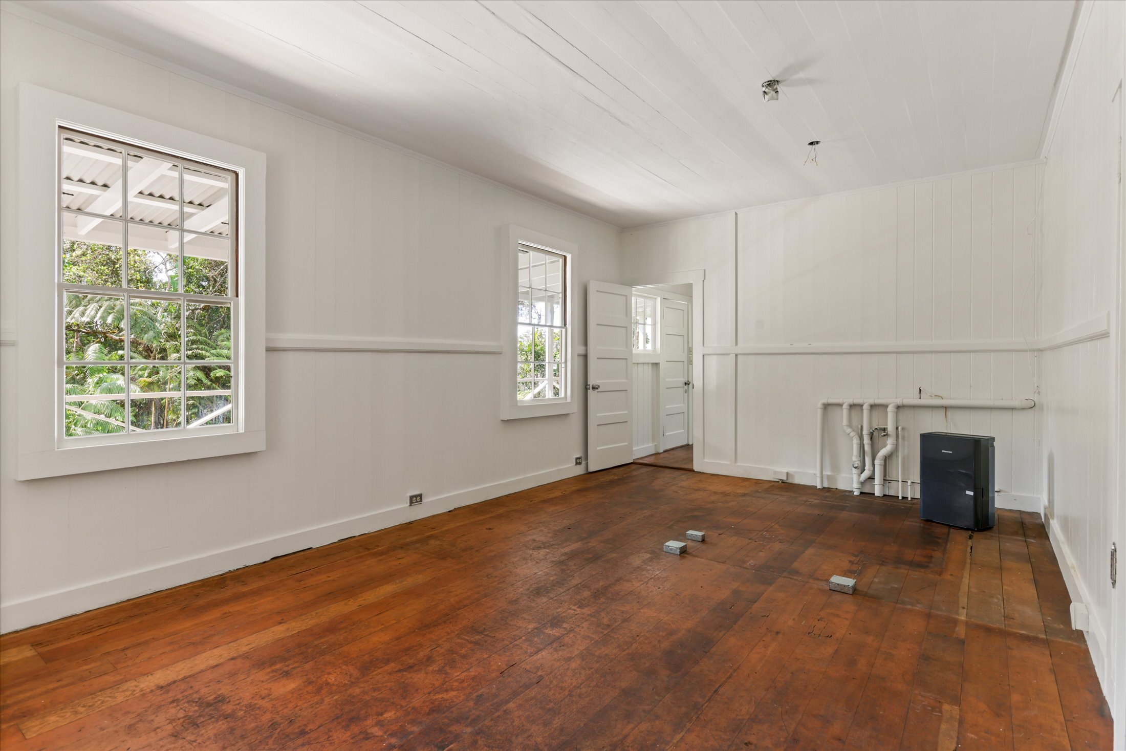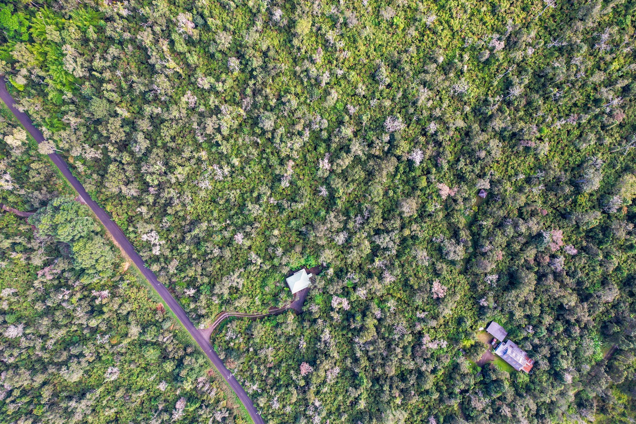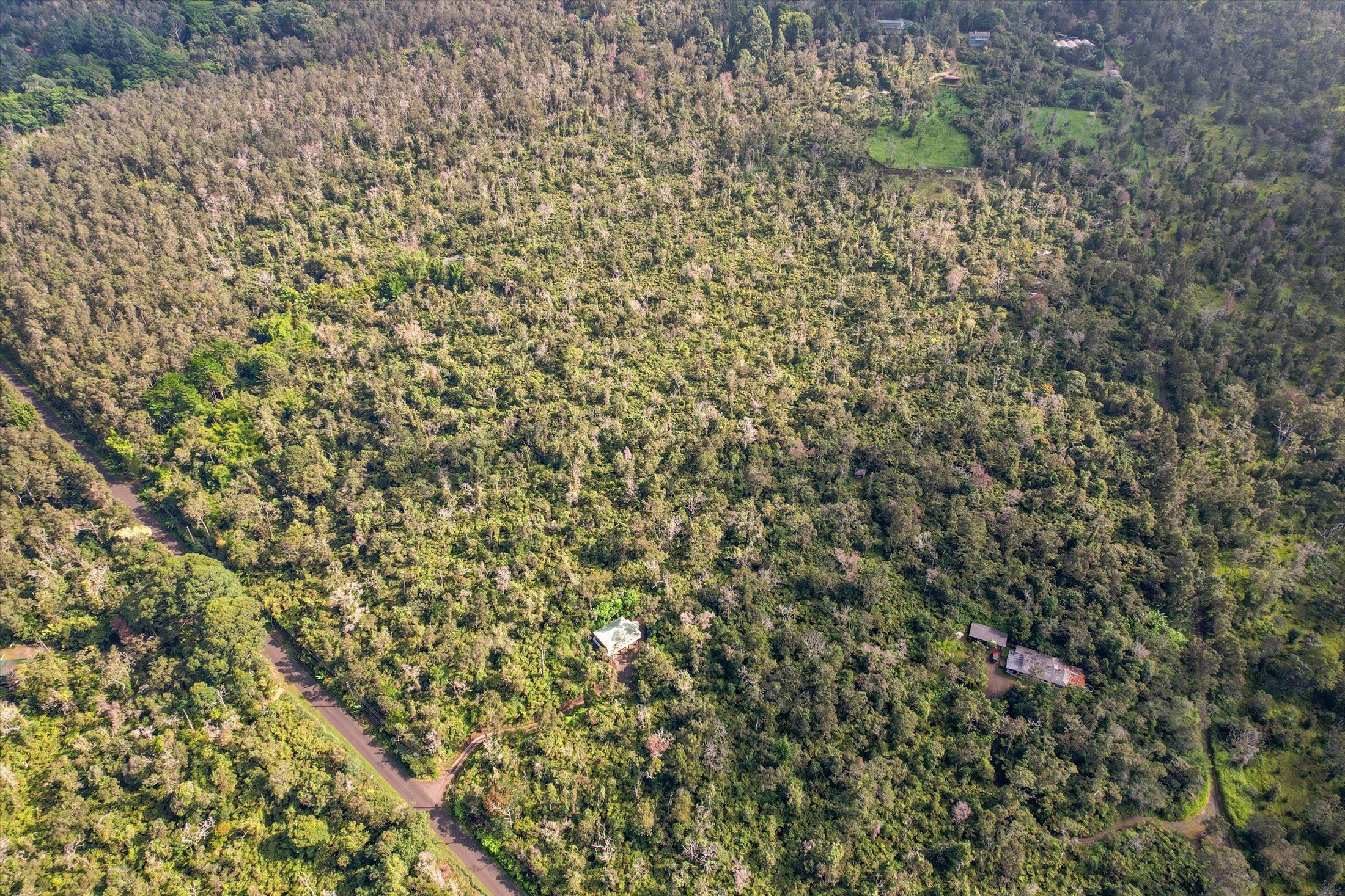 The Cottage space consists of kitchen/ living area, 2 bedroom spaces, basic plumbing is installed for 2.5 . The structure is supported by massive Ohia post-and-pier construction and features second-story living in the cottage, with a wrap-around deck for relaxing and enjoying the cool-birdsong climate. The concrete-floor carport with utility room allows space for additional improvements or a great workshop. A concrete driveway leads up to the cottage's carport/parking.