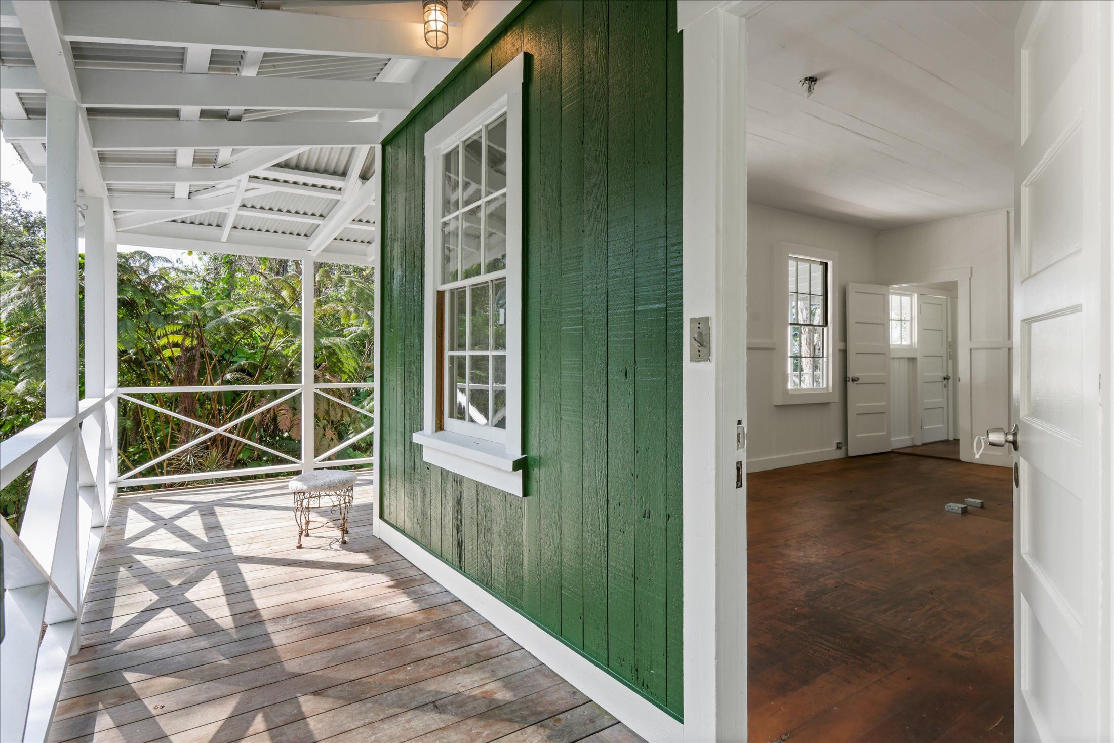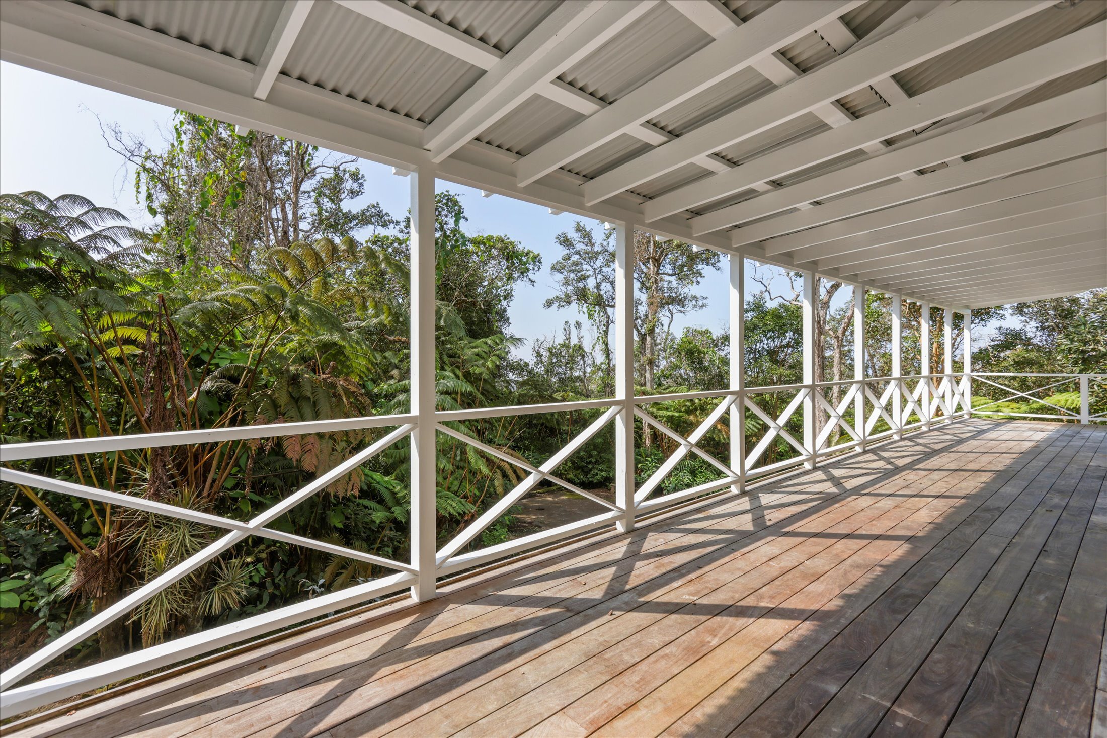 The structure is supported by massive Ohia post-and-pier construction. It features a second-story living space in the cottage, with a wrap-around deck for relaxing and enjoying the cool-birdsong climate.