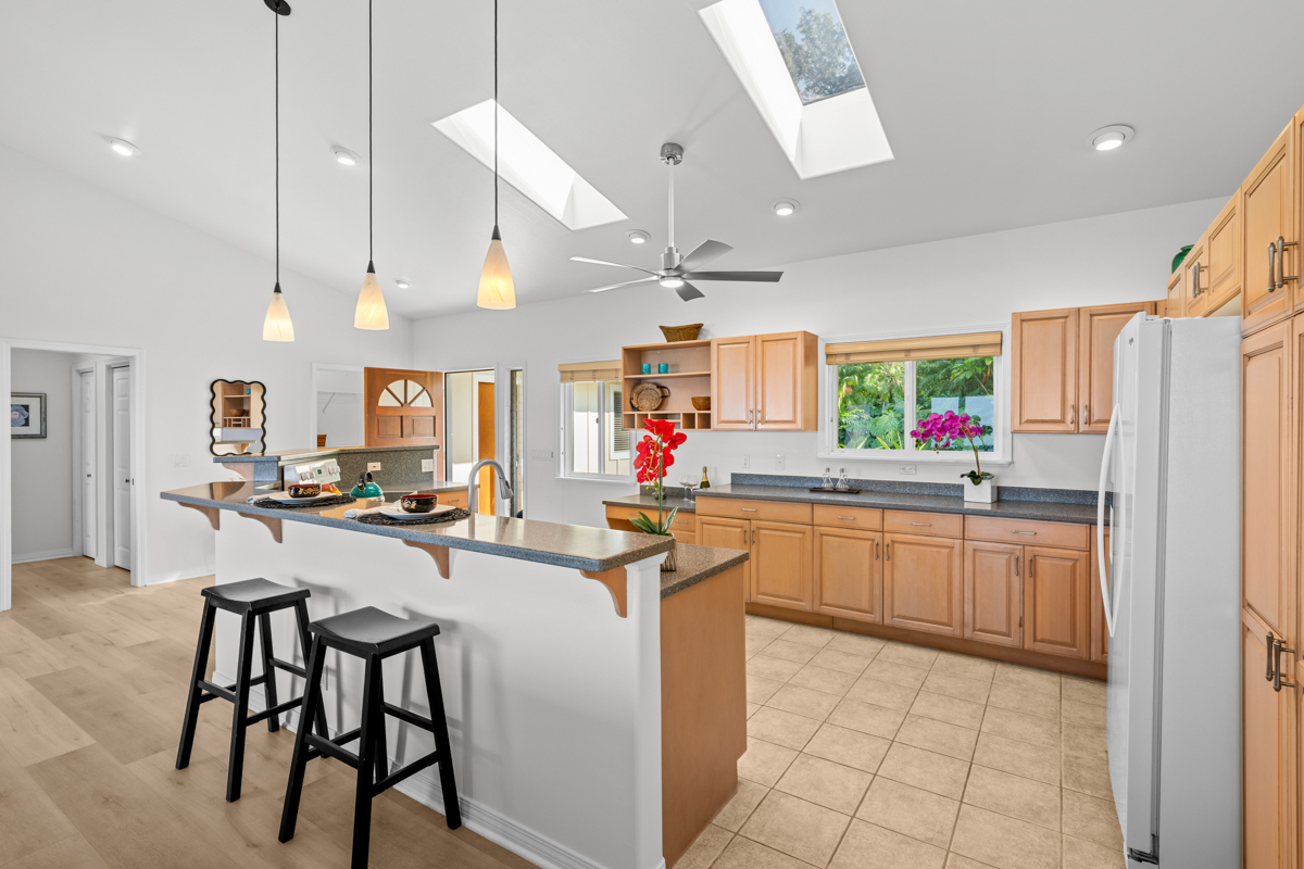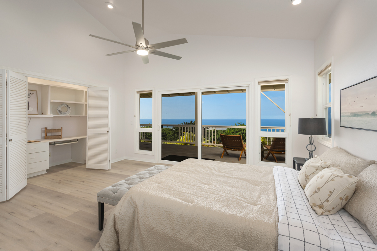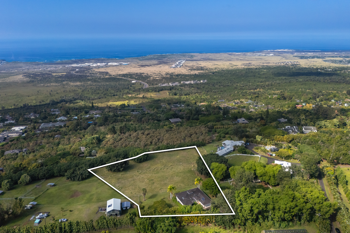 Country living in sunny Kaloko, with expansive coastal views over pasture. Turn off the highway down onto an alluring private lane into another world. 3.011 acres down below Mamalahoa - no HOA , no dues and no CC&Rs. This captivating home lies at the heart of the renowned Silver Oaks Ranch. The great room and two bedrooms all open out onto the full-length lanai. A 3rd bedroom has its own private deck oriented towards the morning sun. Easy access to single level living with vaulted ceilings, skylights and a cupola. There is a lockable enclosed area down below, and ample room for storage. 73-4574 MAMALAHOA HWY — see virtual tour: sites.listvt.com/mls/229896171 . Conveniently located within 15 minutes of Kailua Village and the airport. Off the beaten path, shown by appointment only, please don’t try to drive by. There’s never a dull moment when you have resident, frolicking sheep mowing your land. But when the alpha male looks up at you, you can be sure that he’s thinking to himself: Goats to the left of me, horses to the right, and here I am stuck in the middle with ewes! This information herein, while deemed reliable, may contain inaccuracies and is provided without warranty or guaranty of any kind. Prospective purchasers and their Agents are urged to independently verify all information deemed material or important to their decision to purchase or offer price.