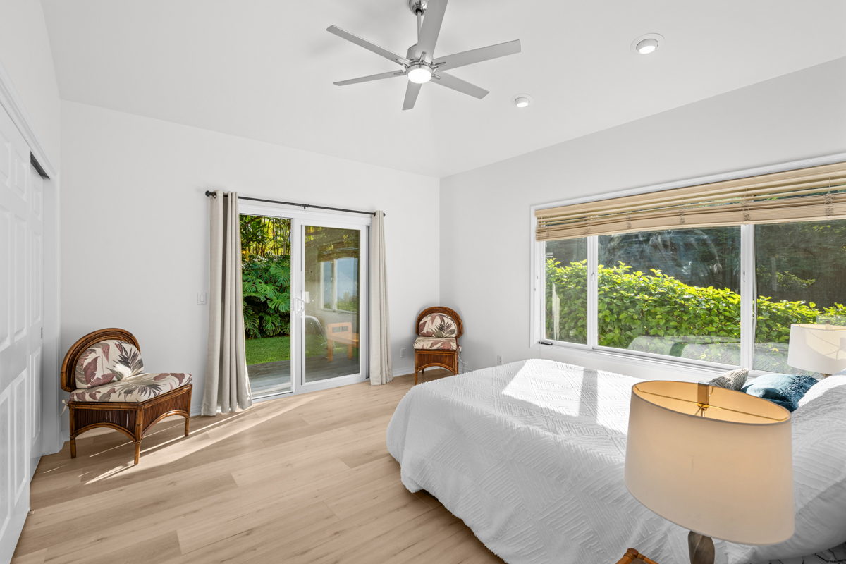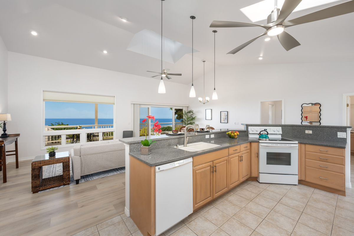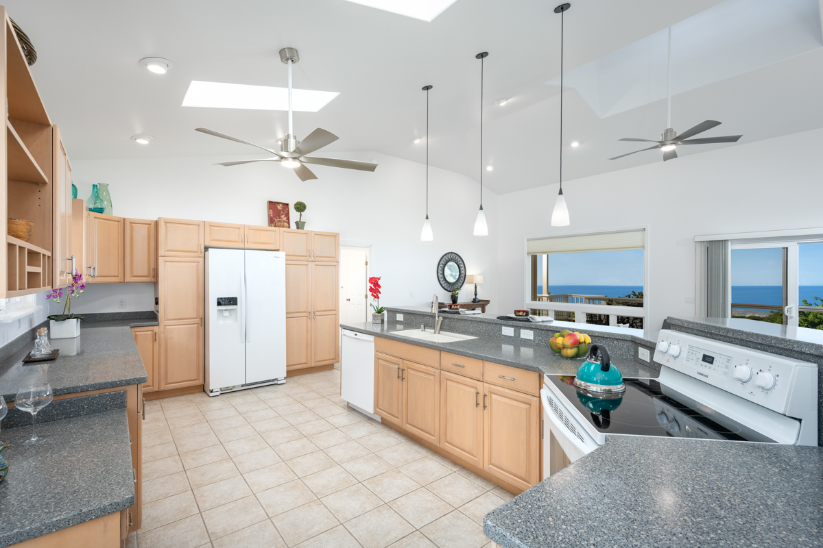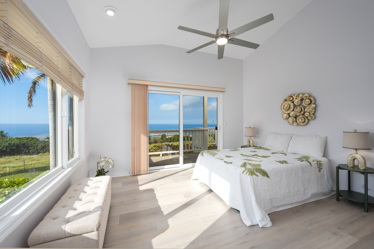 Country living in sunny Kaloko, with expansive coastal views over pasture. Turn off the highway down onto an alluring private lane into another world. 3.011 acres down below Mamalahoa - no HOA , no dues and no CC&Rs. This captivating home lies at the heart of the renowned Silver Oaks Ranch. The great room and two bedrooms all open out onto the full-length lanai. A 3rd bedroom has its own private deck oriented towards the morning sun. Easy access to single level living with vaulted ceilings, skylights and a cupola. There is a lockable enclosed area down below, and ample room for storage. 73-4574 MAMALAHOA HWY — see virtual tour: sites.listvt.com/mls/229896171 . Conveniently located within 15 minutes of Kailua Village and the airport. Off the beaten path, shown by appointment only, please don’t try to drive by. There’s never a dull moment when you have resident, frolicking sheep mowing your land. But when the alpha male looks up at you, you can be sure that he’s thinking to himself: Goats to the left of me, horses to the right, and here I am stuck in the middle with ewes! This information herein, while deemed reliable, may contain inaccuracies and is provided without warranty or guaranty of any kind. Prospective purchasers and their Agents are urged to independently verify all information deemed material or important to their decision to purchase or offer price.
