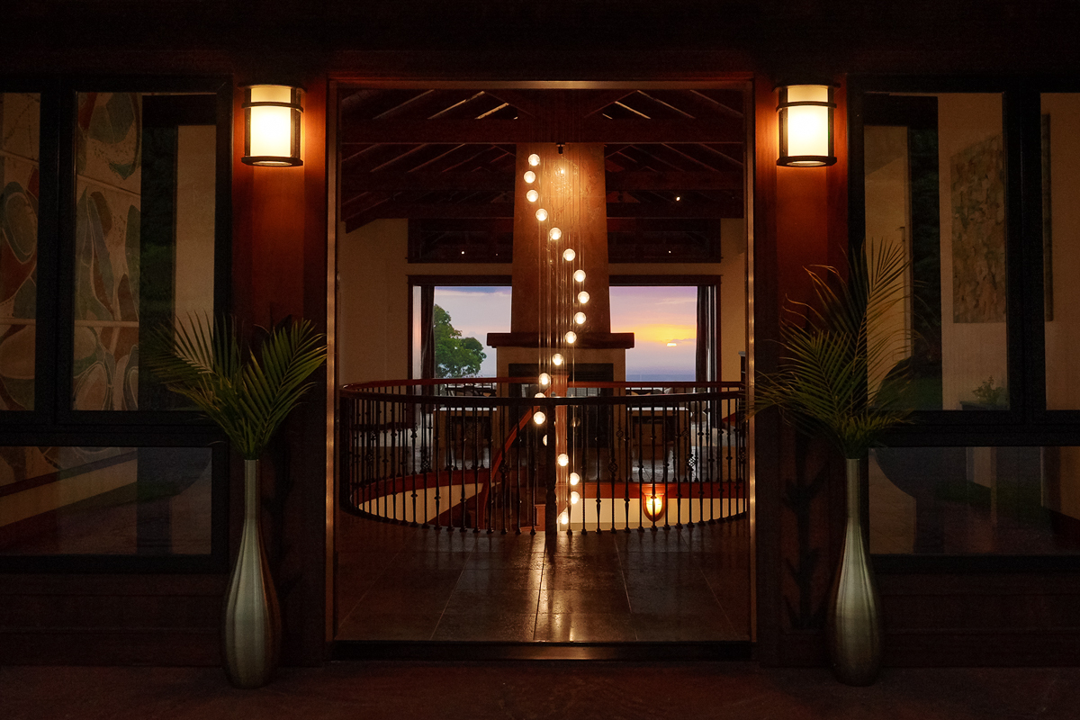 On the main level, retreat to your choice of three guest rooms. These guest suites each with ensuite baths and walk-in closets ensure exceptional comfort for family and visitors. Additional versatility is offered with a loft-style office, and other flexible living spaces. In the heart of the home rests a striking double-sided fireplace. Towering Mahogany pocketing doors open wide to panoramic views on two spacious lanais.