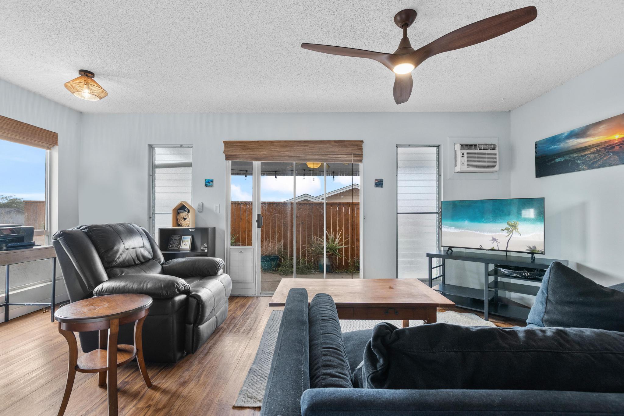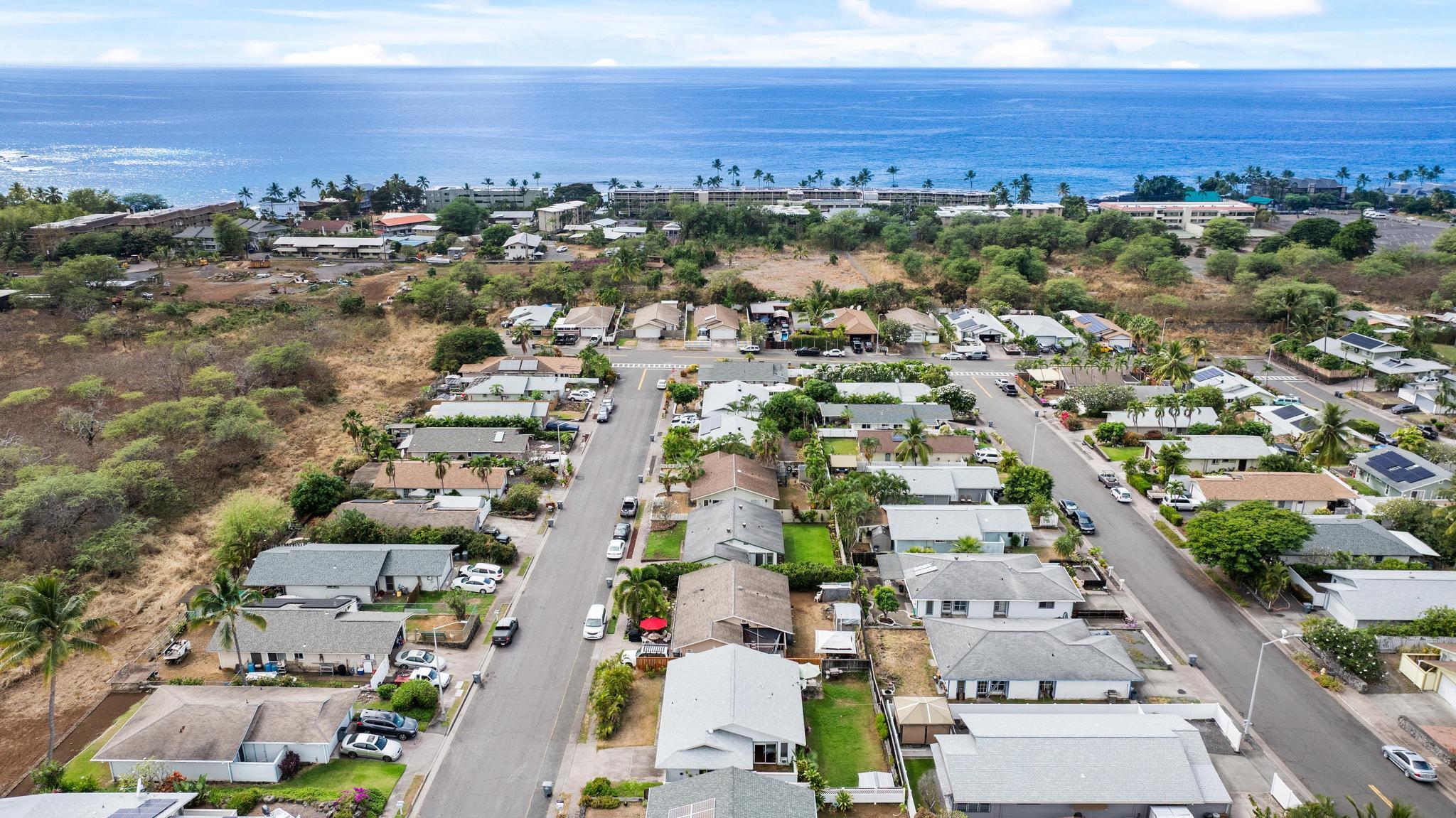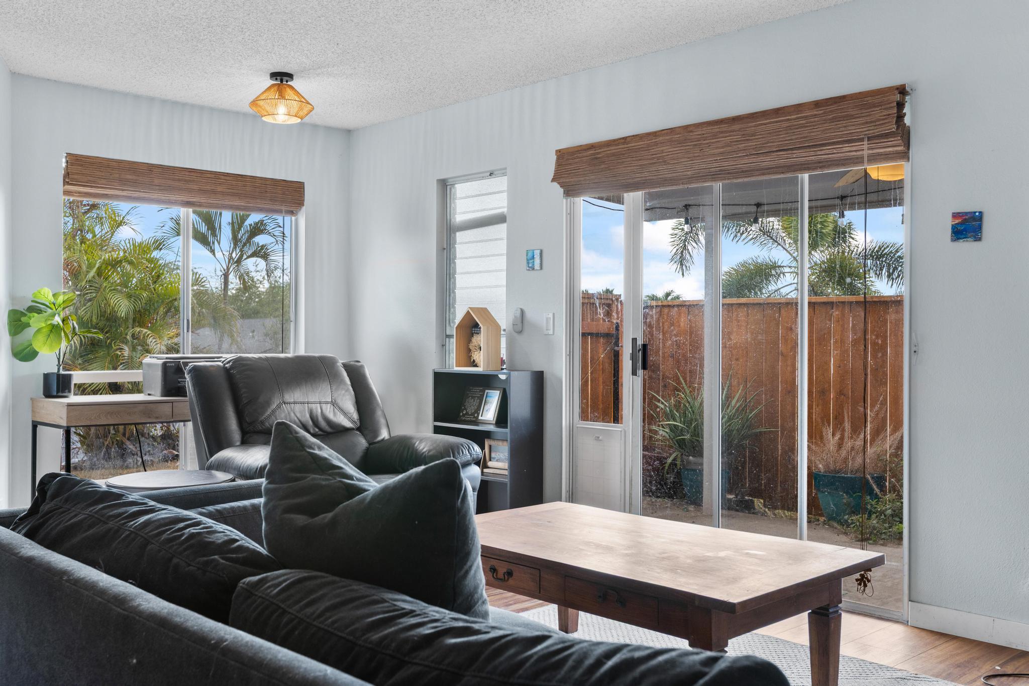 Welcome home to relaxed island living at 76-352 Wana St #53B in the desirable Kamani Trees neighborhood of Kailua-Kona. This thoughtfully updated residence blends modern comfort with classic Kona charm, all just minutes from town, schools, and beautiful beaches. Inside, you’ll find *Koa wood LVP flooring throughout*, fresh interior paint, newer appliances, and a beautifully remodeled kitchen featuring *new cabinetry*, *custom tile backsplash*, *live-edge countertops*, and a *farm-style sink* including a *Tankless pH Plus Reverse Osmosis Water System*–perfect for everyday living and casual entertaining. Both bathrooms have been refreshed with *new tile finishes*, adding a clean and contemporary feel. Enjoy the best of indoor-outdoor living with a *fairly flat, spacious grassy backyard*, ideal for pets, gardening, or play. The yard and lanai area are enclosed with a *newly built wooden fence on one side* and a *rock wall on the other*, creating a private and inviting outdoor space. A *storage shed* adds extra functionality. Take in *ocean and mountain views* that capture the beauty of Kona living. The *enclosed 2-car garage* offers an exceptional amount of *built-in cabinet storage*, *washer* and *dryer* along with recent upgrades including a *new water heater*, and *new bedroom doors and trim*. Located in a sidewalk-lined neighborhood with a very affordable, low maintenance fee that includes *trash removal and common area upkeep*, this move-in-ready home offers comfort, convenience, and island lifestyle in one inviting package. Don’t miss this opportunity to own a beautifully updated home in one of Kailua-Kona’s most welcoming communities.