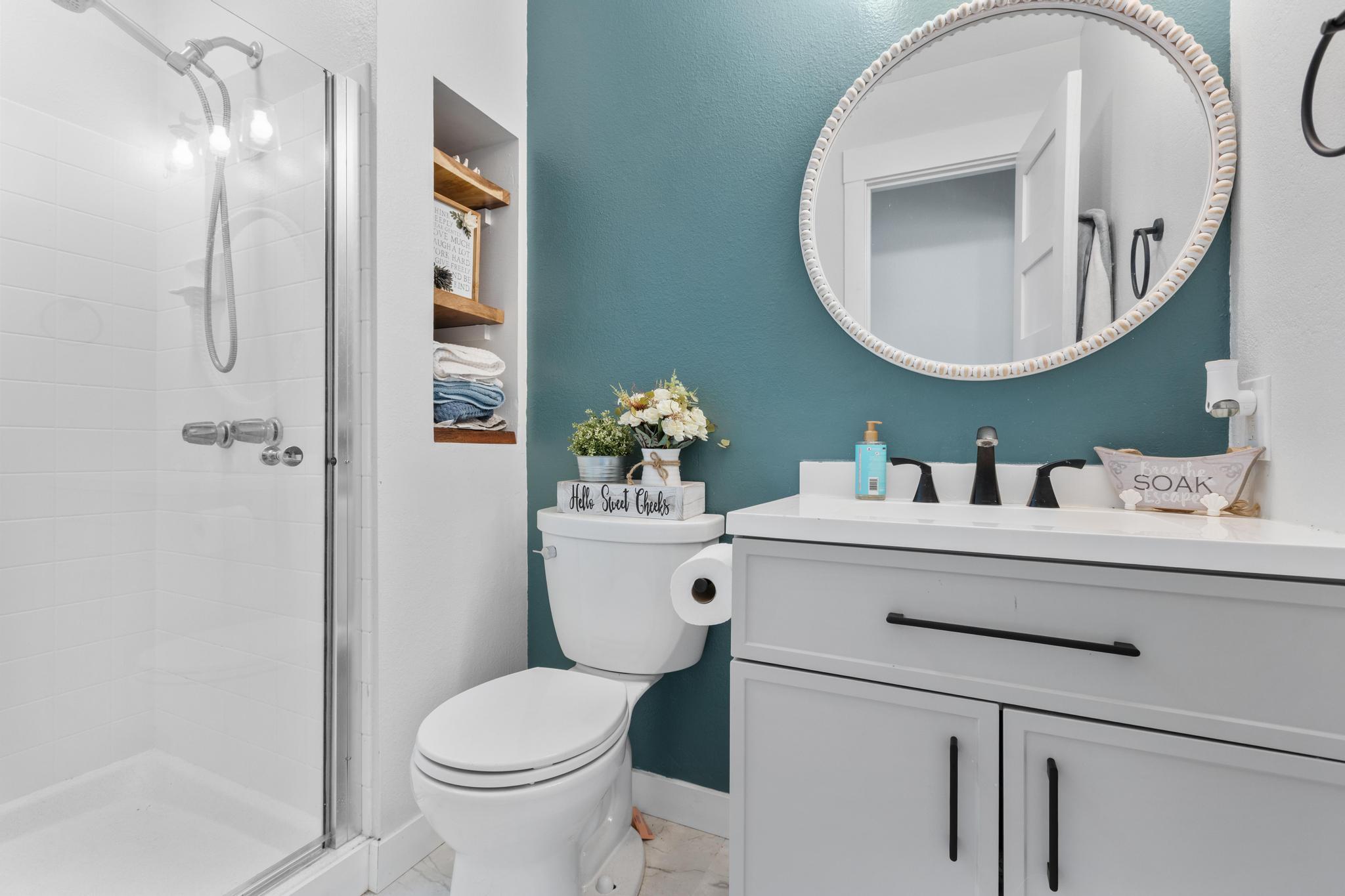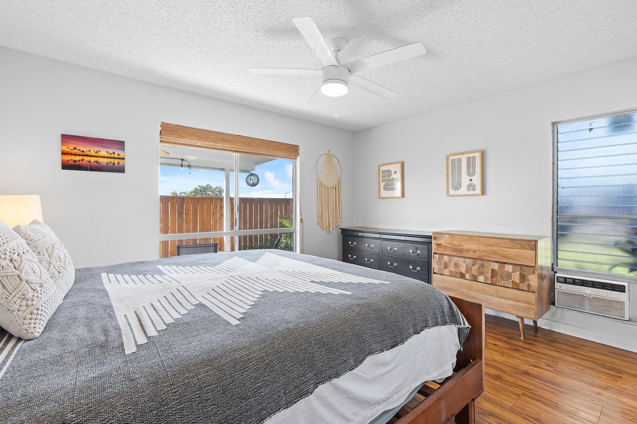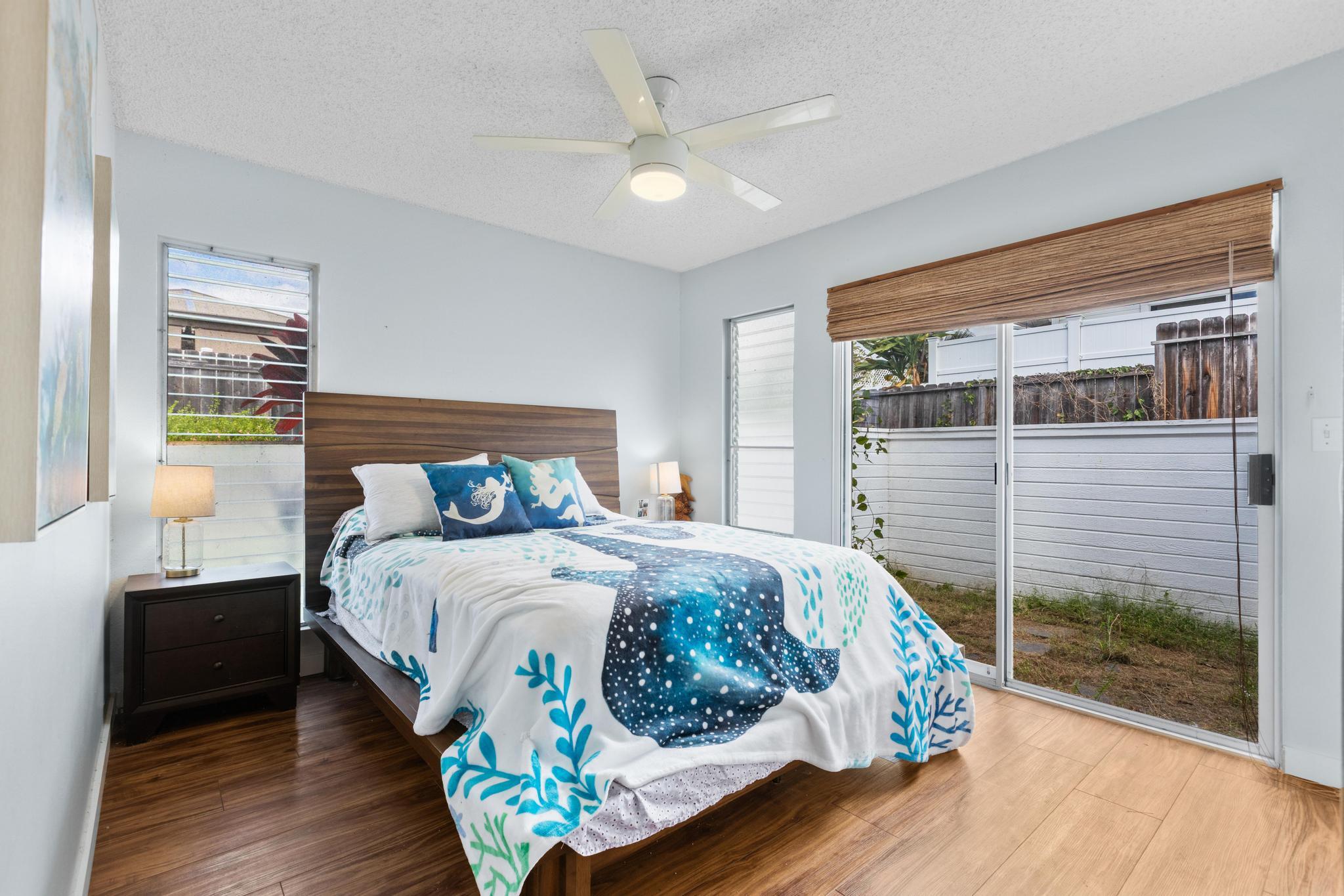 Welcome home to relaxed island living at 76-352 Wana St #53B in the desirable Kamani Trees neighborhood of Kailua-Kona. This thoughtfully updated residence blends modern comfort with classic Kona charm, all just minutes from town, schools, and beautiful beaches. Inside, you’ll find *Koa wood LVP flooring throughout*, fresh interior paint, newer appliances, and a beautifully remodeled kitchen featuring *new cabinetry*, *custom tile backsplash*, *live-edge countertops*, and a *farm-style sink* including a *Tankless pH Plus Reverse Osmosis Water System*–perfect for everyday living and casual entertaining. Both bathrooms have been refreshed with *new tile finishes*, adding a clean and contemporary feel. Enjoy the best of indoor-outdoor living with a *fairly flat, spacious grassy backyard*, ideal for pets, gardening, or play. The yard and lanai area are enclosed with a *newly built wooden fence on one side* and a *rock wall on the other*, creating a private and inviting outdoor space. A *storage shed* adds extra functionality. Take in *ocean and mountain views* that capture the beauty of Kona living. The *enclosed 2-car garage* offers an exceptional amount of *built-in cabinet storage*, *washer* and *dryer* along with recent upgrades including a *new water heater*, and *new bedroom doors and trim*. Located in a sidewalk-lined neighborhood with a very affordable, low maintenance fee that includes *trash removal and common area upkeep*, this move-in-ready home offers comfort, convenience, and island lifestyle in one inviting package. Don’t miss this opportunity to own a beautifully updated home in one of Kailua-Kona’s most welcoming communities.