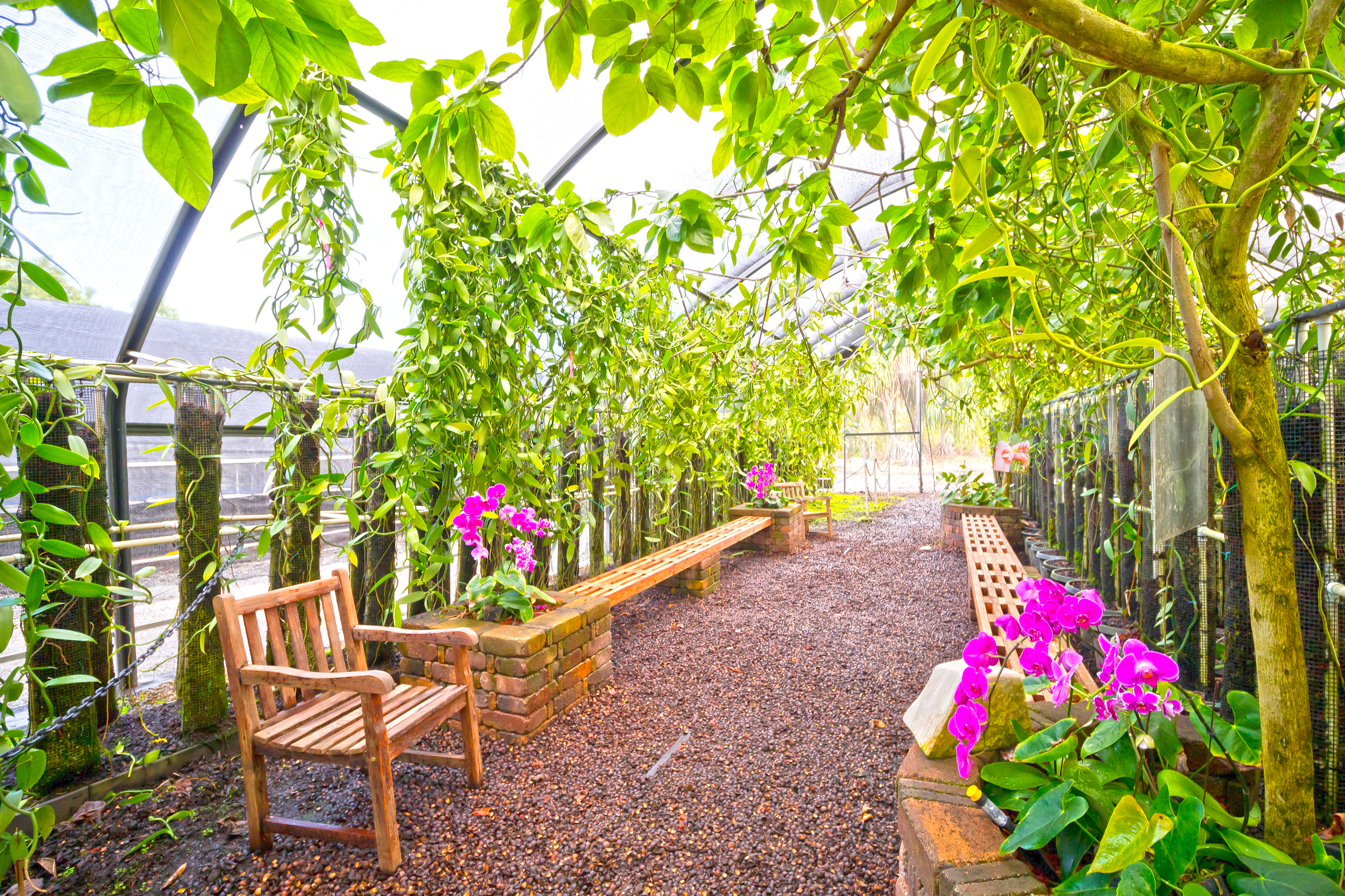 The Vanillerie is an impressive and innovative working vanilla farm that occupies a relatively small portion of the total farm area. Included with the vanilla farm is an adjacent well presented gift shop that sells vanilla products along with other agricultural products produced on the island.