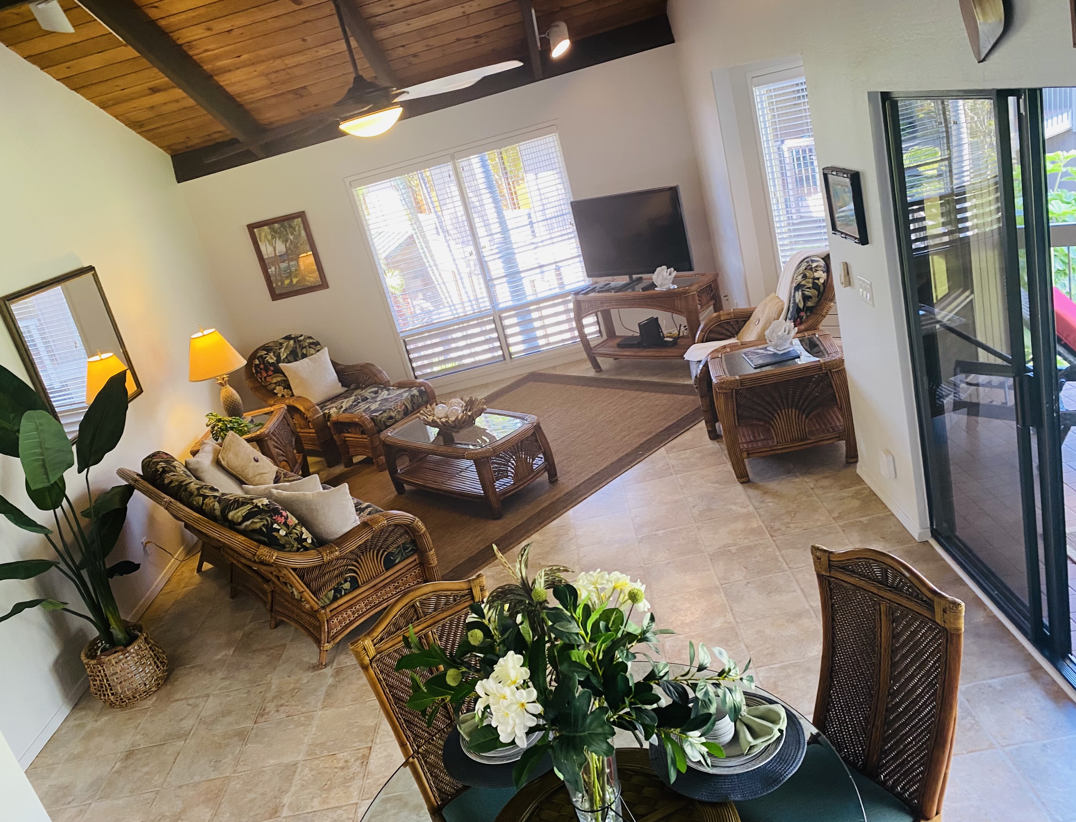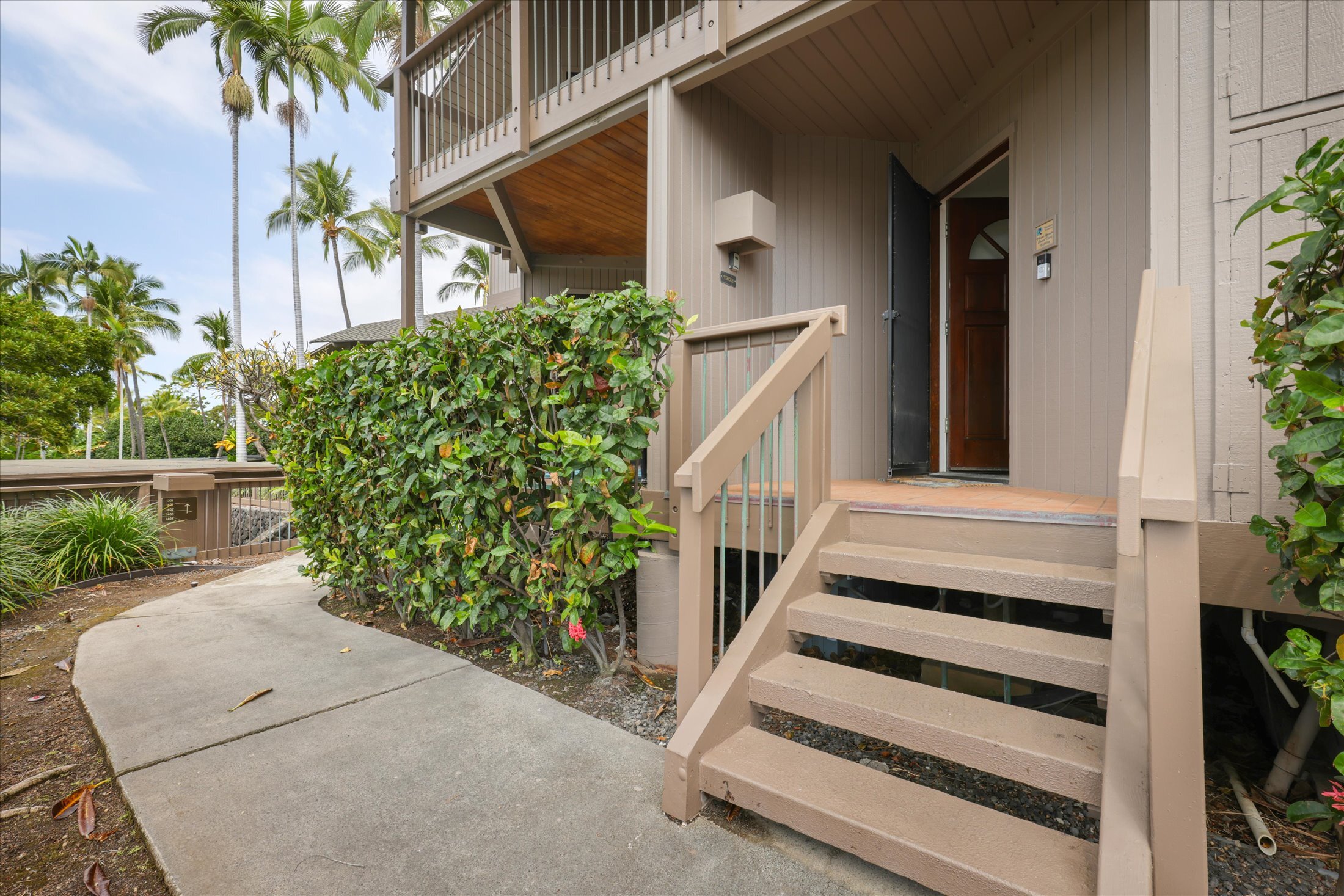 PARDON OUR DUST while we finish Remodeling the Kitchen and Baths! This rare 3 BEDROOM & 3 BATH is Short Term Vacation Rental eligible and turnkey furnished to accommodate your family and guests. KANALOA at KONA is one of Kona's most popular resorts, a gated ocean front community, beautifully designed, heavily landscaped, perfectly groomed. It has all the amenities you expect to find within an upscale property. Spend your day at the Ocean Front Pool or lounge by the Second Pool located between the gorgeous Clubhouse and Tennis Courts. Explore a bit and you will find a reading room, table tennis, grills located throughout the grounds and a trail that skirts the edge of the ocean all the way to a stunning bay. THE MAIN LIVING AREA is one floor up from the entrance. Soaring wood ceilings make the living area feel grand. Wide sliding doors open to a large lanai overlooking the golf course. A wet bar with a small sink and beverage cooler are conveniently located here. Tear yourself away from the view for a minute to appreciate the Koa Kitchen. It has been meticulously maintained so the golden hues of the rare Koa Wood still shine. Appliances have been replaced and upgraded over the years and we think you will love the new Quartz Counter Tops. THE PRIMARY SUITE has King-sized bedding, a huge walk-in closet, double designer vessel sinks in a Koa vanity but best of all, a second lanai with Ocean Views! BEDROOM 2 is currently made up as a King bed, but it can be separated into 2 twins. This Guest Bath has a Koa vanity and a tub/shower combo. TOP LEVEL includes a sitting area with a futon that overlooks the living room, a bedroom with twin beds and another bathroom. SOLD FULLY FURNISHED! With the exception of a staging items, everything stays including linens and kitchen items. Size and room count was taken from Hawaii County Tax Records and may vary from actual.