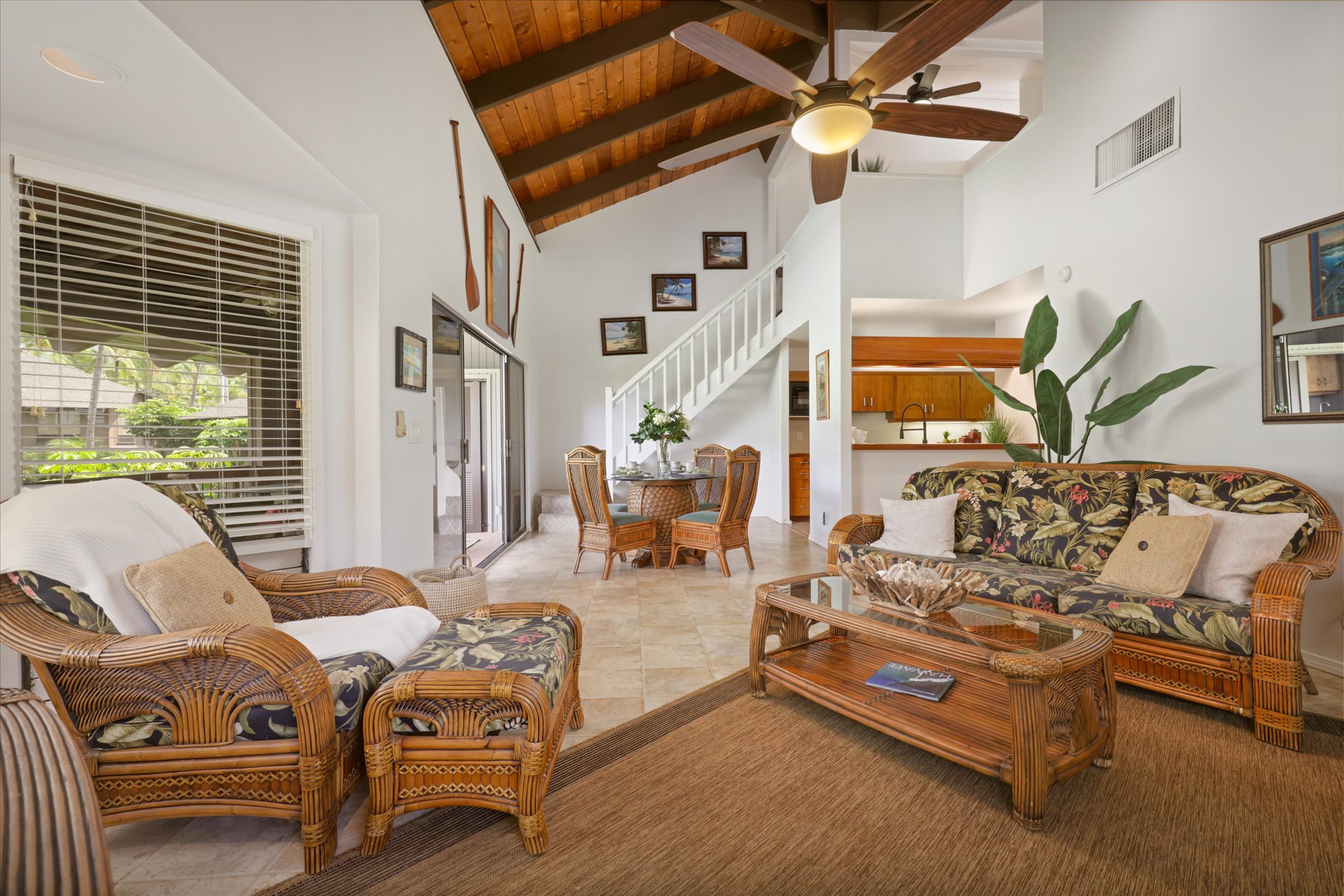 PARDON OUR DUST while we finish Remodeling the Kitchen and Baths! This rare 3 BEDROOM & 3 BATH is Short Term Vacation Rental eligible and turnkey furnished to accommodate your family and guests. KANALOA at KONA is one of Kona's most popular resorts, a gated ocean front community, beautifully designed, heavily landscaped, perfectly groomed. It has all the amenities you expect to find within an upscale property. Spend your day at the Ocean Front Pool or lounge by the Second Pool located between the gorgeous Clubhouse and Tennis Courts. Explore a bit and you will find a reading room, table tennis, grills located throughout the grounds and a trail that skirts the edge of the ocean all the way to a stunning bay. THE MAIN LIVING AREA is one floor up from the entrance. Soaring wood ceilings make the living area feel grand. Wide sliding doors open to a large lanai overlooking the golf course. A wet bar with a small sink and beverage cooler are conveniently located here. Tear yourself away from the view for a minute to appreciate the Koa Kitchen. It has been meticulously maintained so the golden hues of the rare Koa Wood still shine. Appliances have been replaced and upgraded over the years and we think you will love the new Quartz Counter Tops. THE PRIMARY SUITE has King-sized bedding, a huge walk-in closet, double designer vessel sinks in a Koa vanity but best of all, a second lanai with Ocean Views! BEDROOM 2 is currently made up as a King bed, but it can be separated into 2 twins. This Guest Bath has a Koa vanity and a tub/shower combo. TOP LEVEL includes a sitting area with a futon that overlooks the living room, a bedroom with twin beds and another bathroom. SOLD FULLY FURNISHED! With the exception of a staging items, everything stays including linens and kitchen items. Size and room count was taken from Hawaii County Tax Records and may vary from actual.