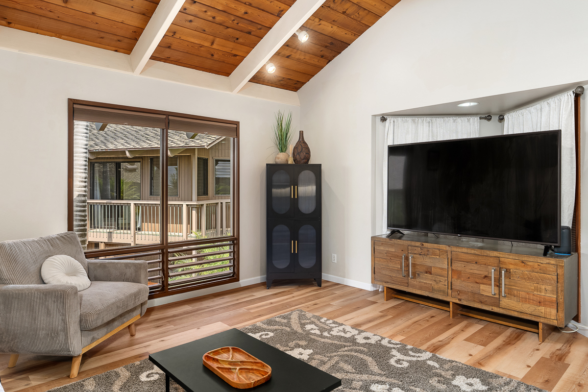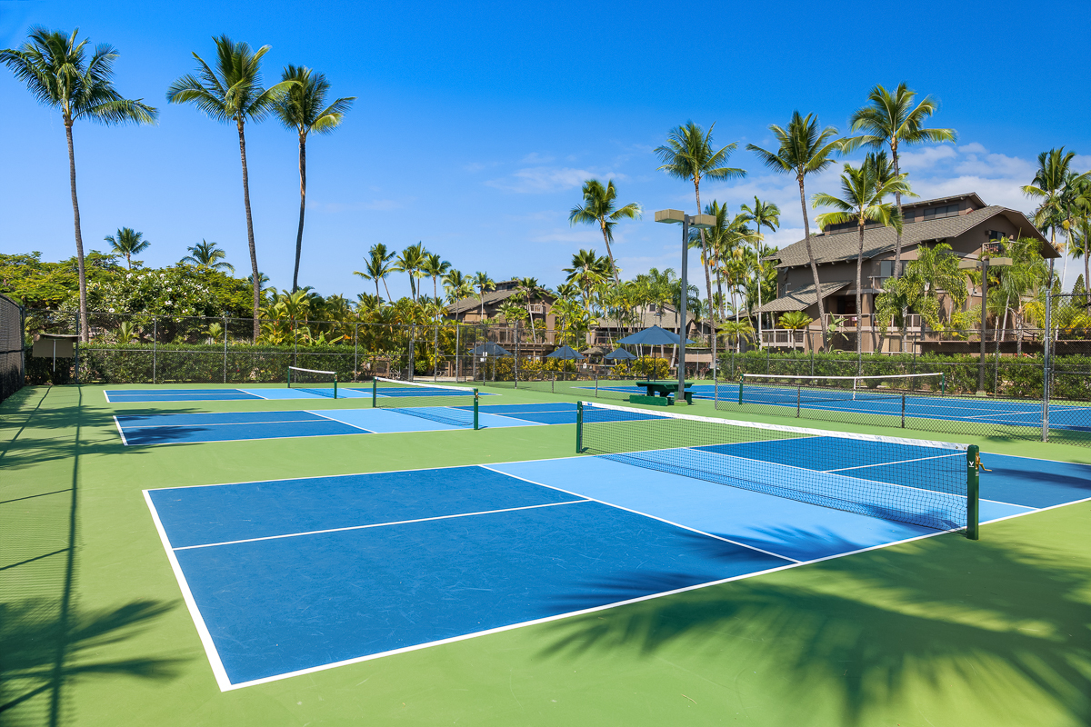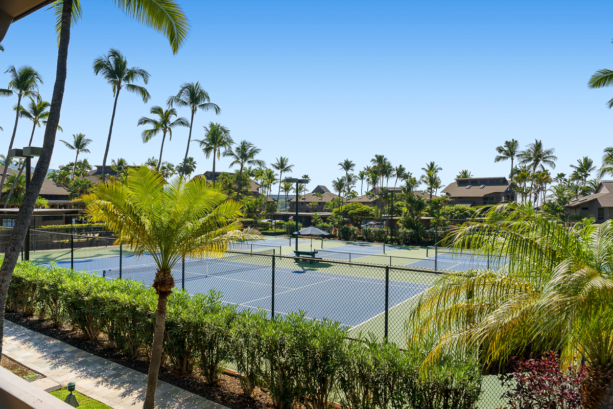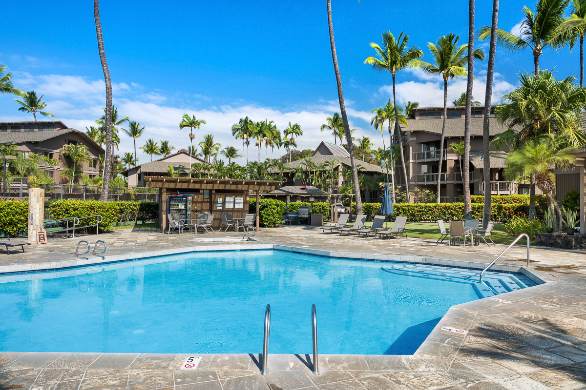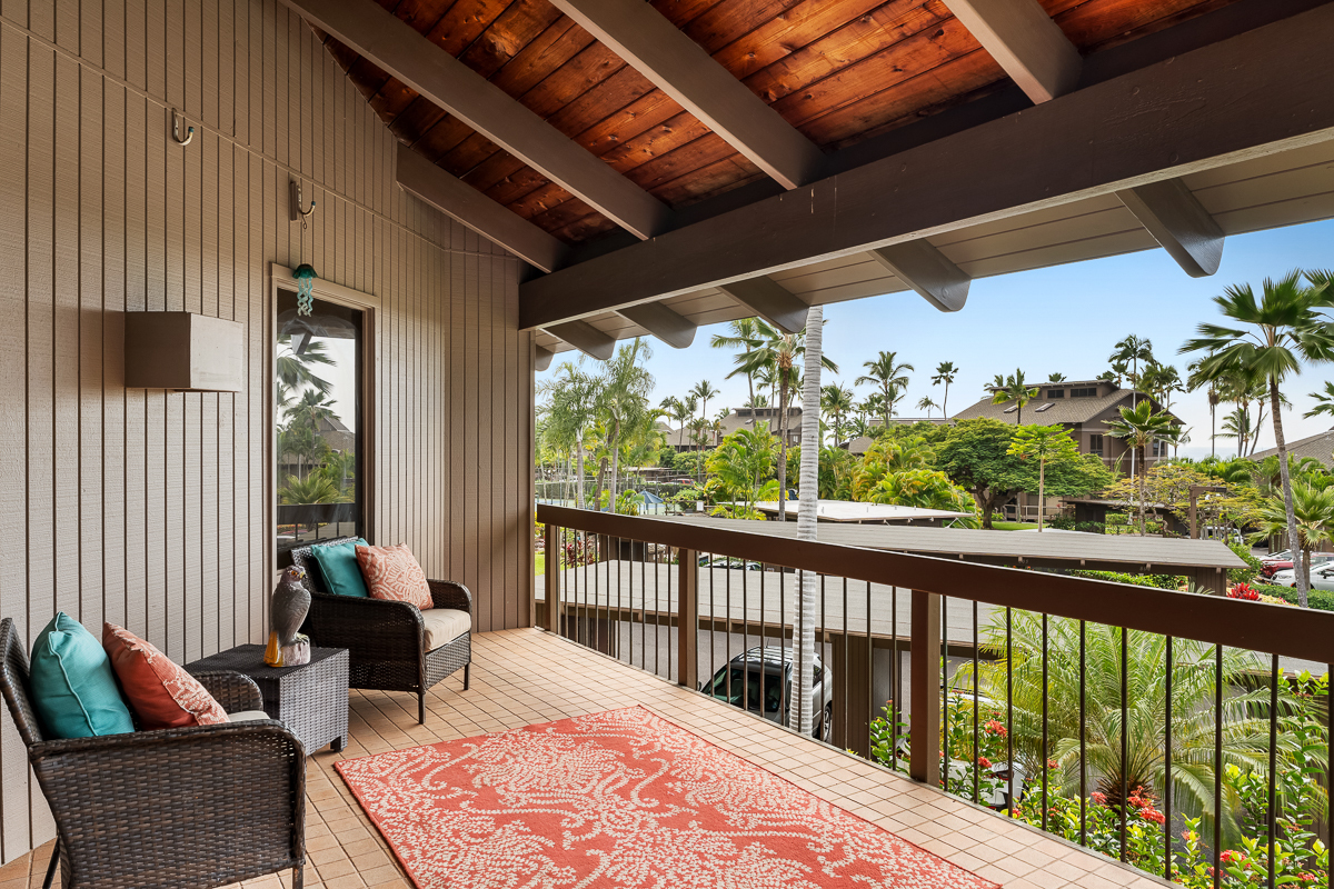 Located within the oceanfront Kanaloa at Kona, this inviting condominium offers a wonderful blend of island comfort, privacy, and flexibility. Set within one of Kona’s most desirable resort-style communities, Kanaloa features three swimming pools and spas, tennis and pickleball courts, and multiple BBQ areas with tables–ideal for gatherings and sunset evenings. The complex is conveniently close to shopping, dining, and the Keauhou area, and allows for vacation rentals, providing excellent versatility for future use. Privately situated along the golf course, this residence has been owner-occupied and lovingly cared for over many years. The interior showcases beautiful Koa cabinetry, warm tropical furnishings, and a thoughtful layout designed for relaxed island living. A covered lanai with a built-in wet bar creates a peaceful space for morning coffee or evening entertaining, framed by lush greenery and serene golf course and mountain views. An additional value-add opportunity exists with the attic space, which offers potential to be built out into usable loft space, subject to HOA approval–ideal for added living area, storage, or flexible use. Significant recent improvements enhance both comfort and peace of mind. Termite tenting was completed in April 2025, followed by new flooring installed throughout the unit in December 2024. New split AC units were installed in December 2024 and fully serviced, cleaned, and inspected in January 2026. Plumbing upgrades were completed in January 2026 based on an HOA-commissioned efficiency study, with all recommended items addressed. Additional updates include a new full-size washer and dryer purchased in December 2024 and a new refrigerator added in December 2025–making this a well-maintained, move-in-ready condo with strong long-term appeal.