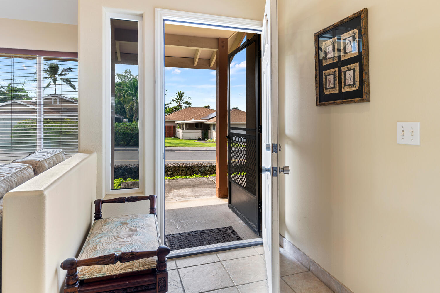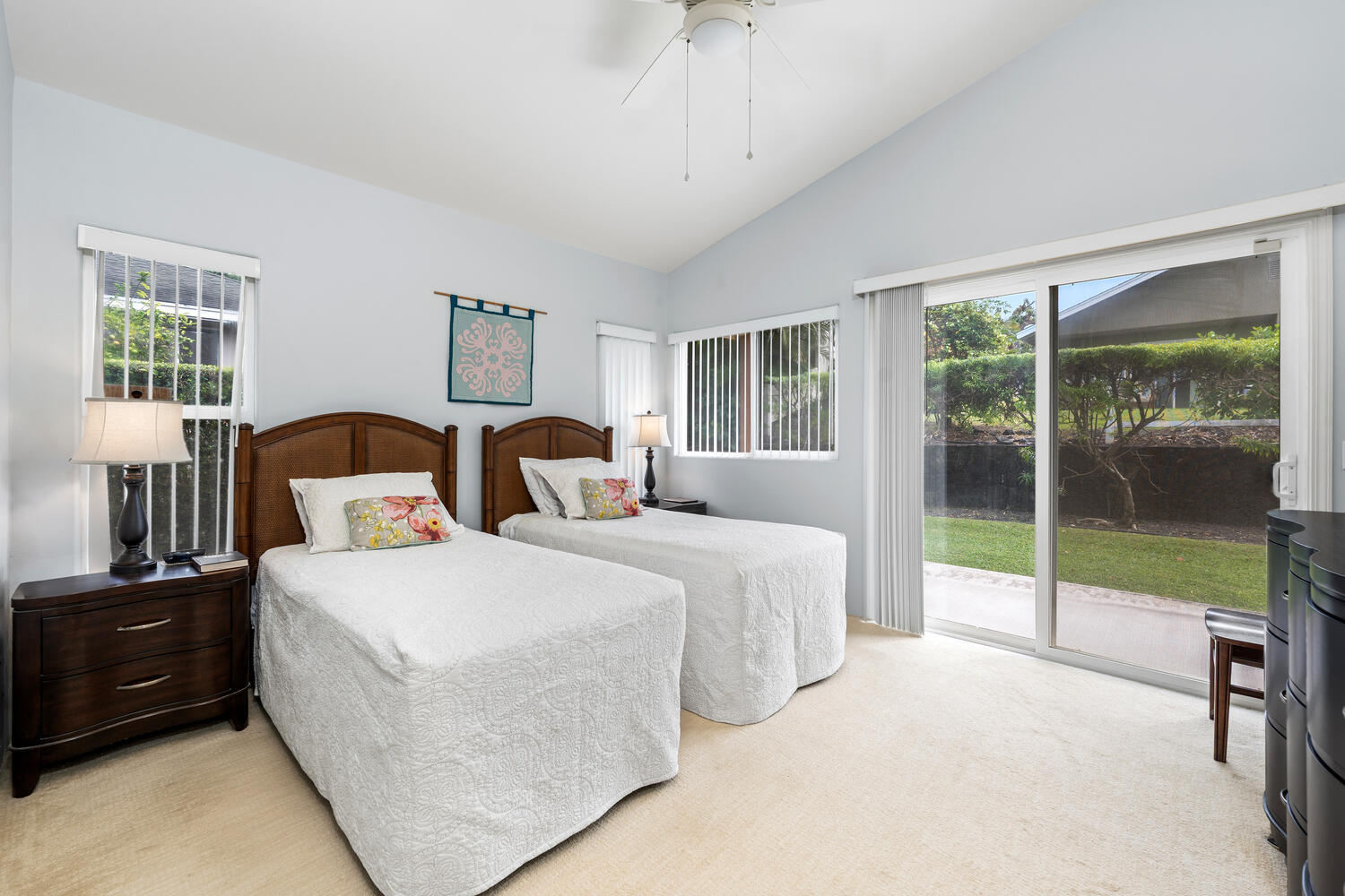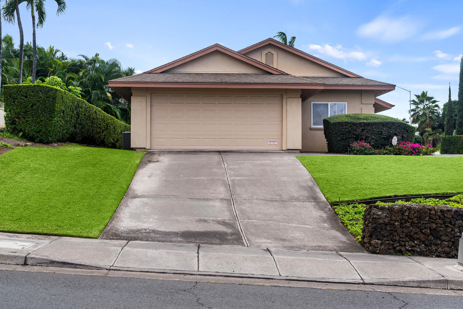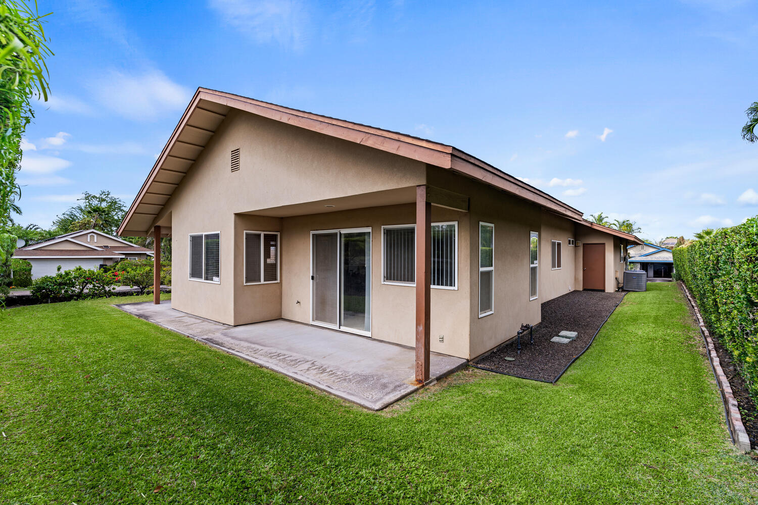 Only blocks from the beach, this single level 3 bedroom, 2 bath home with 2 car garage and beautiful landscaping, central air conditioning and 20 solar panels owned outright by sellers. Home shows beautifully & is in great shape and has had this owner as owner occupants since 2002. The kitchen has a built in dining set and work desk. Located just a couple of blocks from White Sands Beach. Close to the Keauhou Shopping Village and a short drive to town. This home has central air conditioning and solar panels which keep the electric bills low. Sellers may need some extra time to move their belongings and would want a short lease back period. The information contained herein may contain inaccuracies and is provided without warranty or guaranty of any kind. Buyers and Buyer's agent to do their own due diligence.