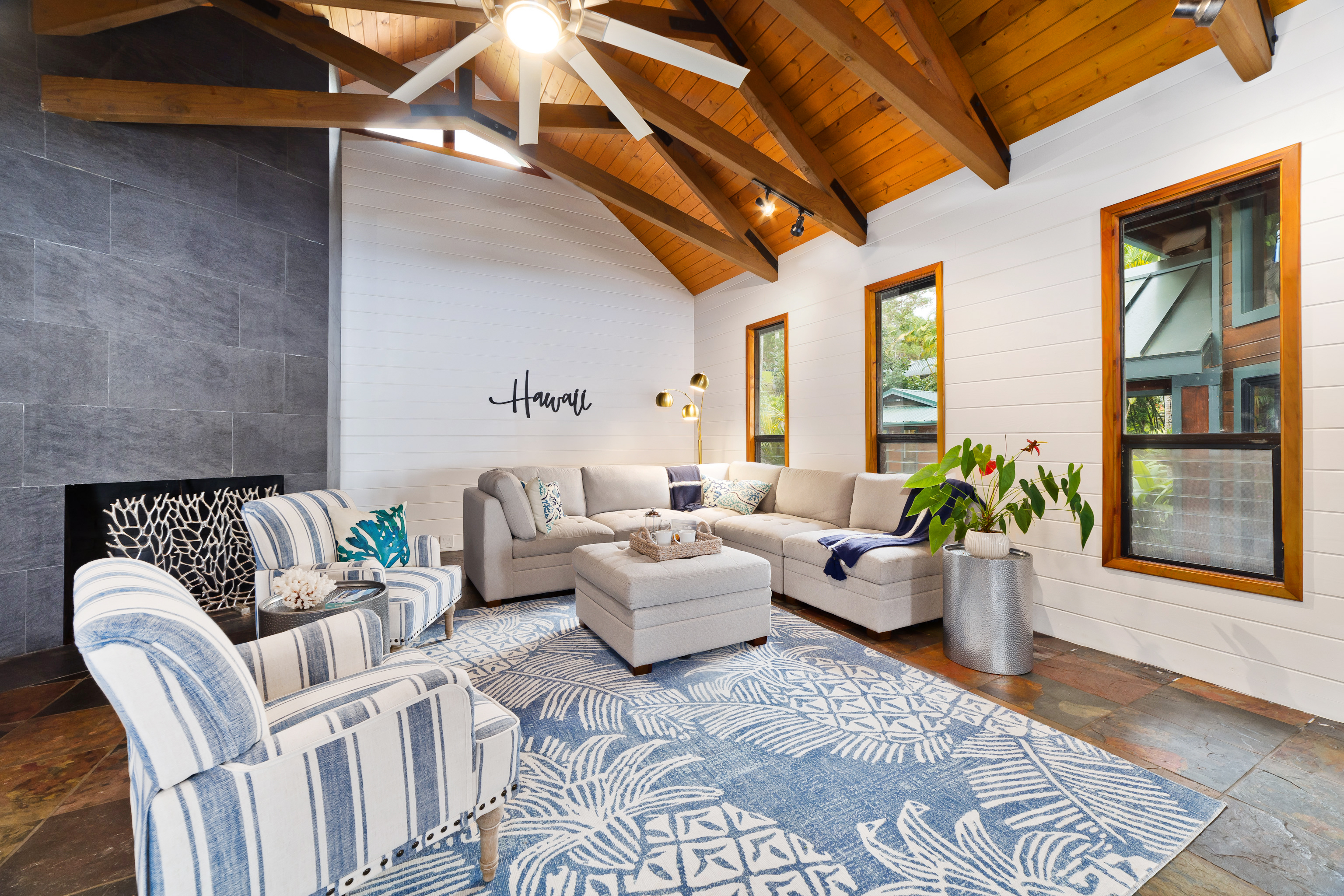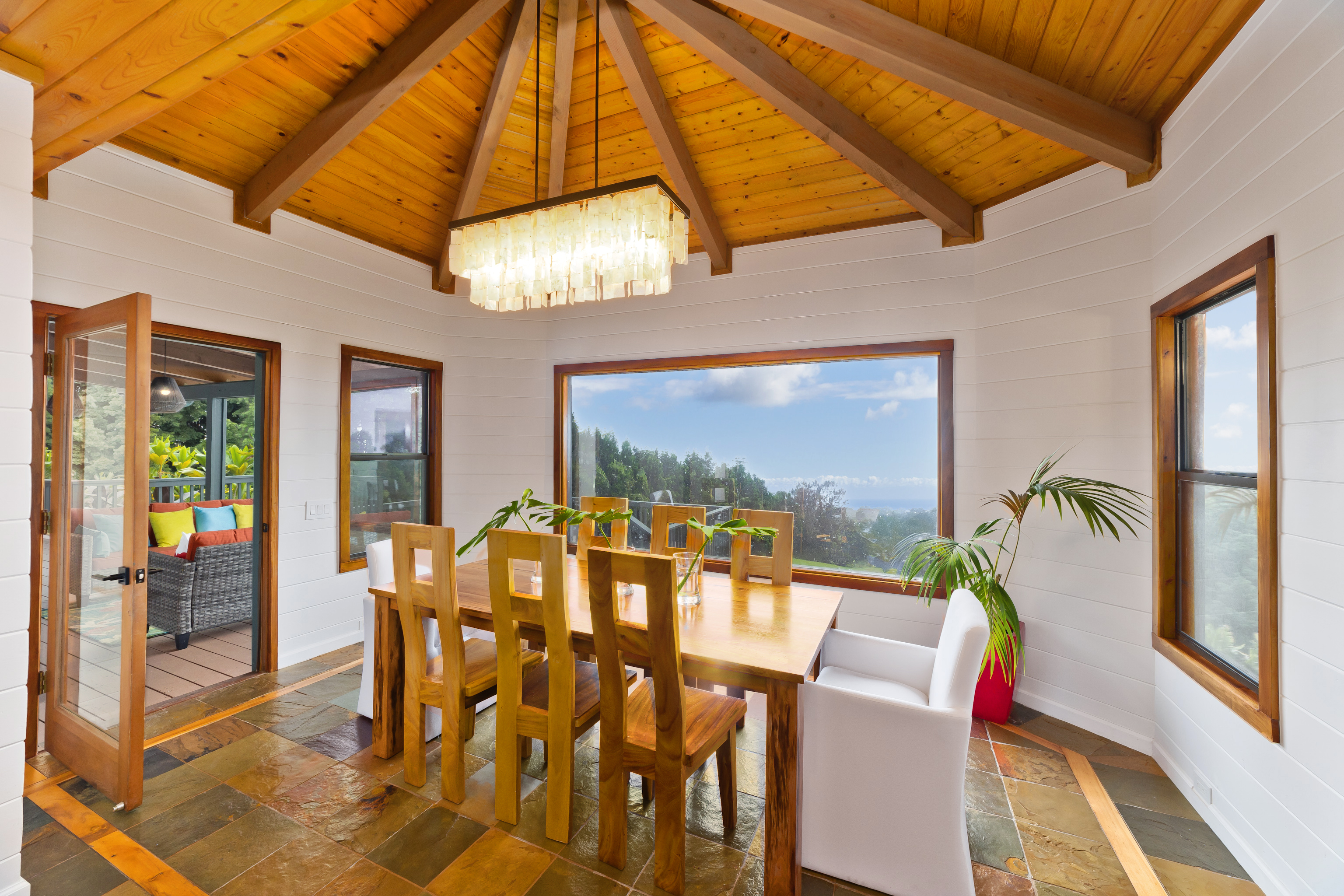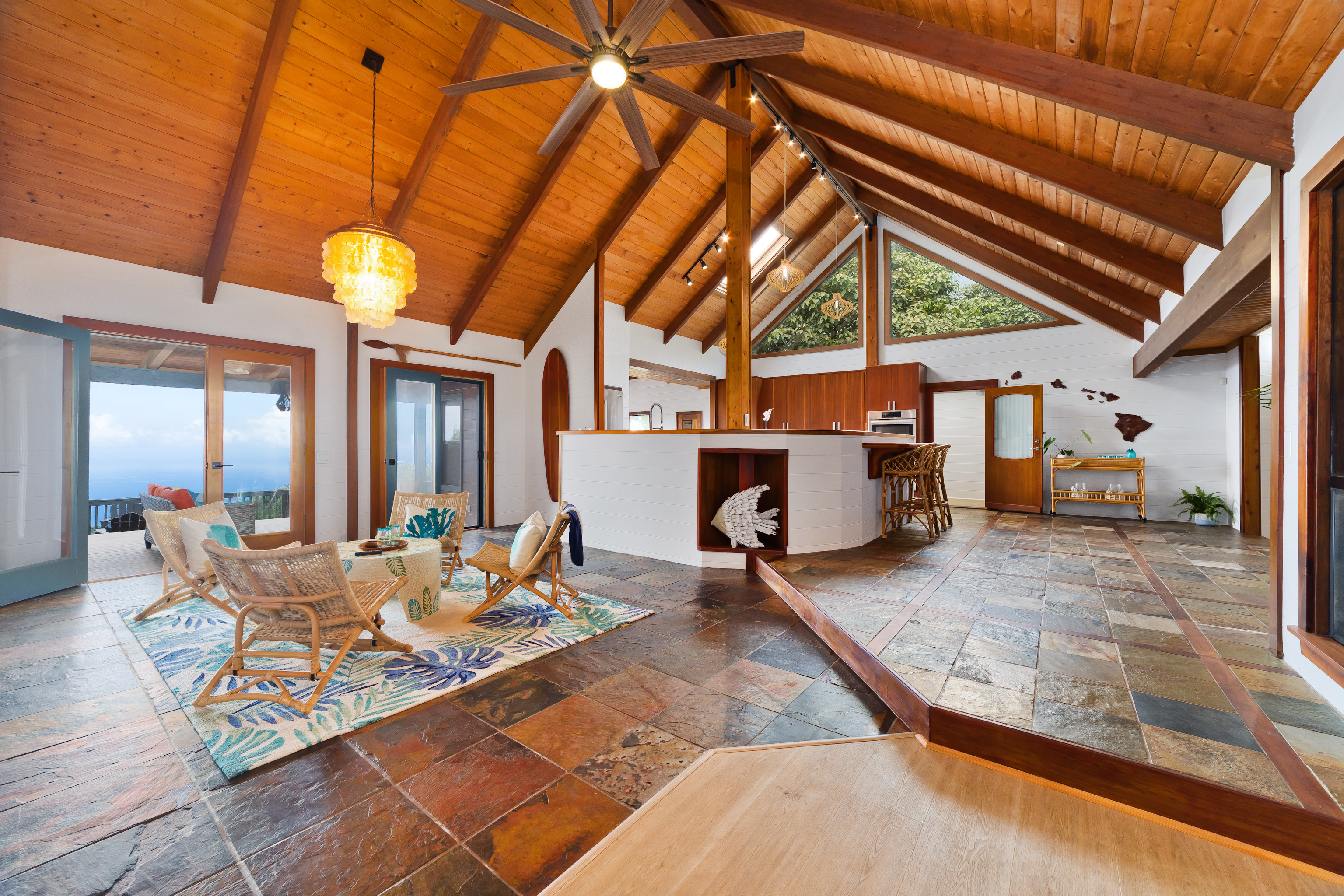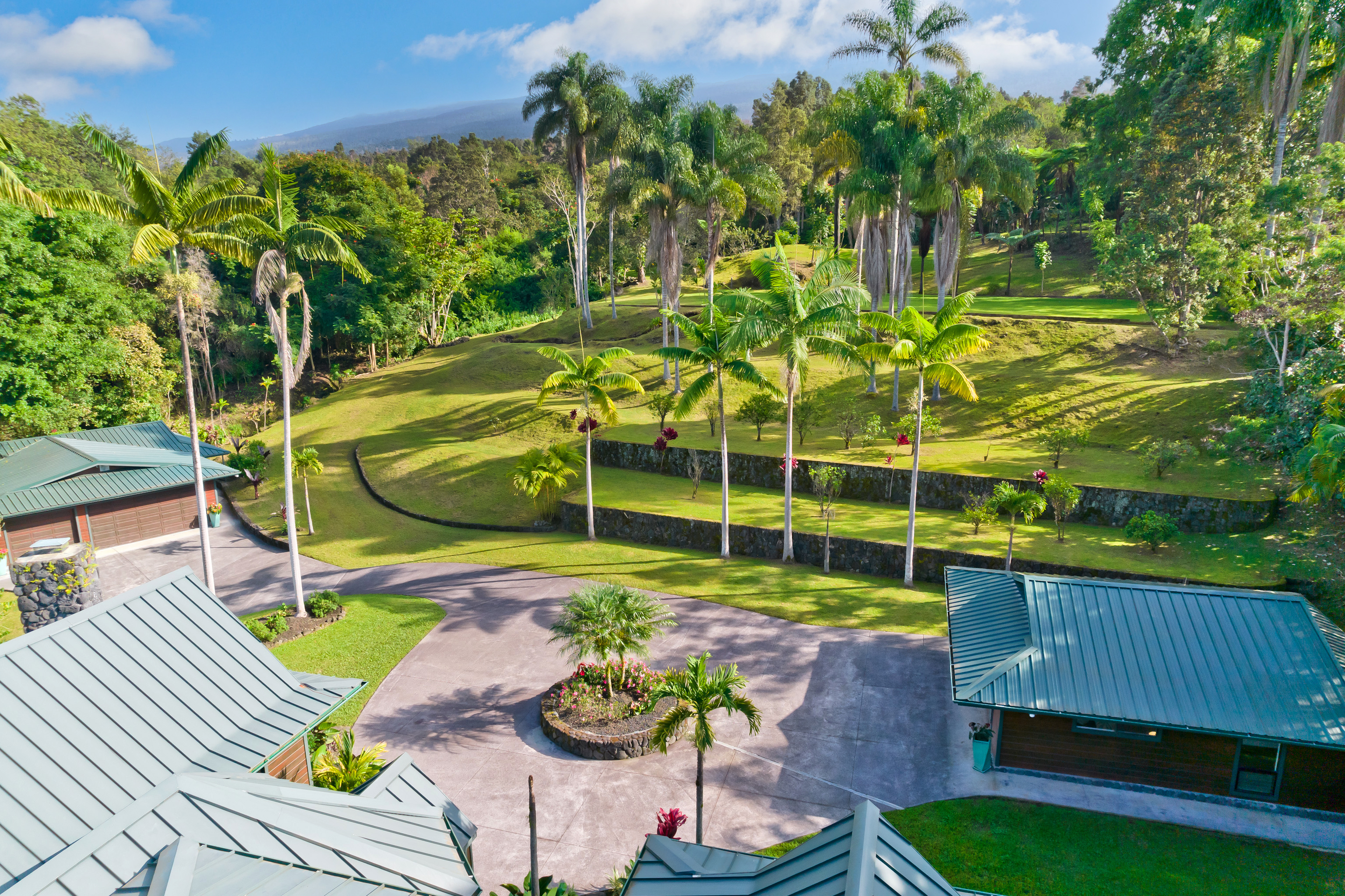 This exceptional estate stands as one of the crown jewels of Kailua Kona–an irreplaceable legacy property offering privacy, artistry, and an island lifestyle. Set on five acres of lush tropical foliage, this 6,107 sq. ft. architectural masterpiece captures commanding ocean and coastline views and showcases timeless Hawaiian craftsmanship reimagined through a multimillion-dollar renovation. Enter through historic wrought iron gates and drive past hand-built rock walls, sweeping staircases, and a private tree tunnel that opens to paradise. The estate includes three distinct structures: a grand main residence, a charming Ohana home, and a guest suite or office/studio within the carriage house. The main home offers over 2,500 sq.ft. of covered and open lanais designed for seamless indoor-outdoor living. Inside, soaring ceilings, embedded rock planters, Koa wood trim, and a falling-rock shower in one of three primary suites honor the home’s original artistry. Every bath and both kitchens have been fully redesigned with mahogany cabinetry, waterfall quartz counters, and commercial-grade stainless appliances. Newly added architectural elements–tribal-carved details and live-edge Monkeypod shelving–enhance the home’s natural beauty. Privately gated grounds feature extensive rockwork, lush tropical landscaping, a volcanic riverbed that flows with the rains of Hualalai, citrus and rainbow eucalyptus, and a large level field ready for coffee or tropical crops. Professionally decorated and offered fully furnished, every detail has been curated–from imported French coffee presses to a hand-carved Thai prayer table. This one-of-a-kind property invites you to create a lasting legacy for generations. County square footage and assessed value are being updated to reflect recent renovations. Information herein may contain inaccuracies and is provided without warranty. Buyers and agents to independently verify all information deemed material.