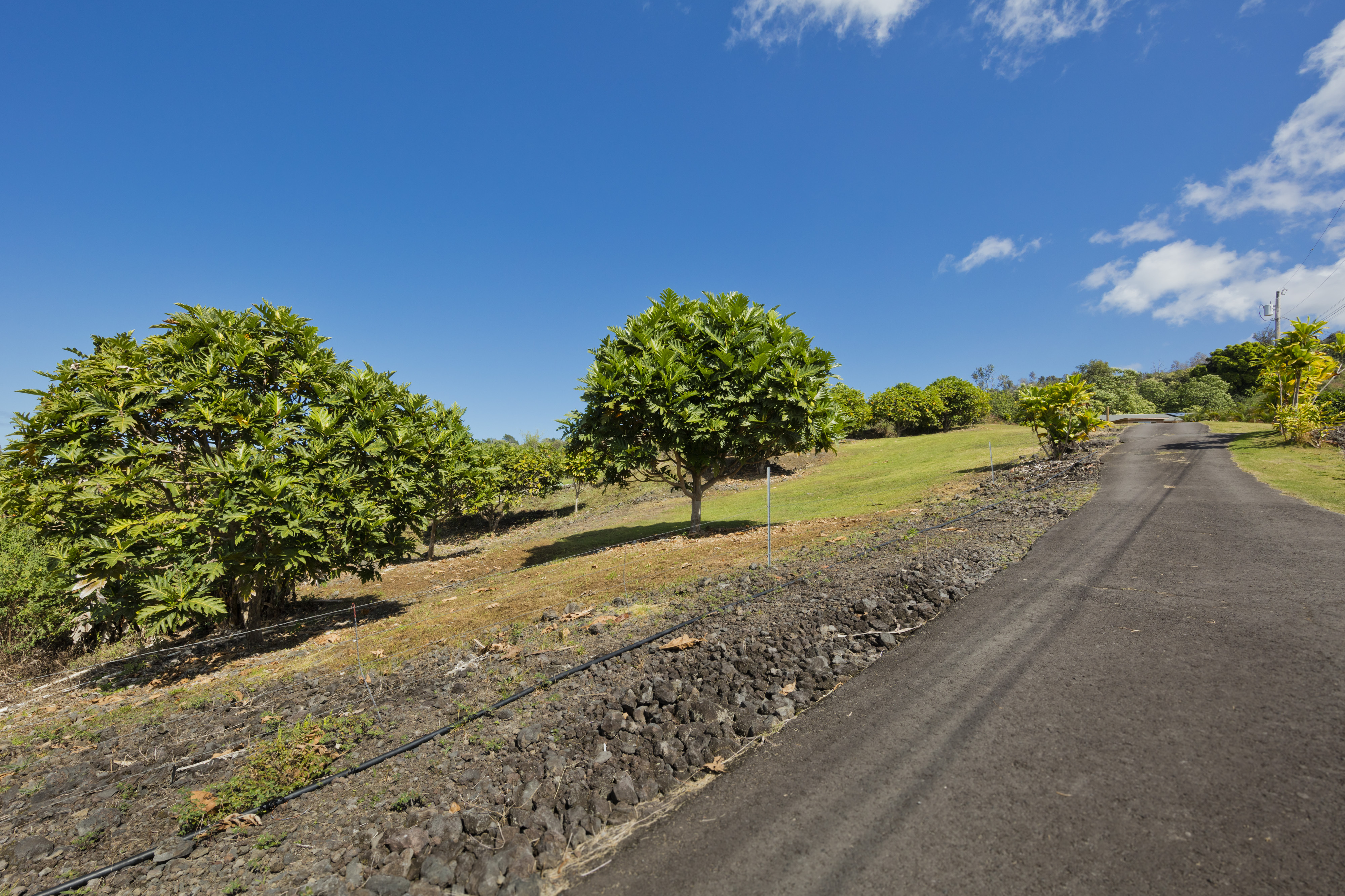The land flourishes with ulu (breadfruit) trees, a fast-growing perennial treasure that outshines other staples with its low-maintenance nature–requiring minimal labor, fertilizer, or pesticides–making it as practical as it is picturesque. Adding to the allure, an historical lookout site graces the property, offering a glimpse into Hawaii’s rich past, while its southern boundary with state land ensures a sense of seclusion and harmony with nature.