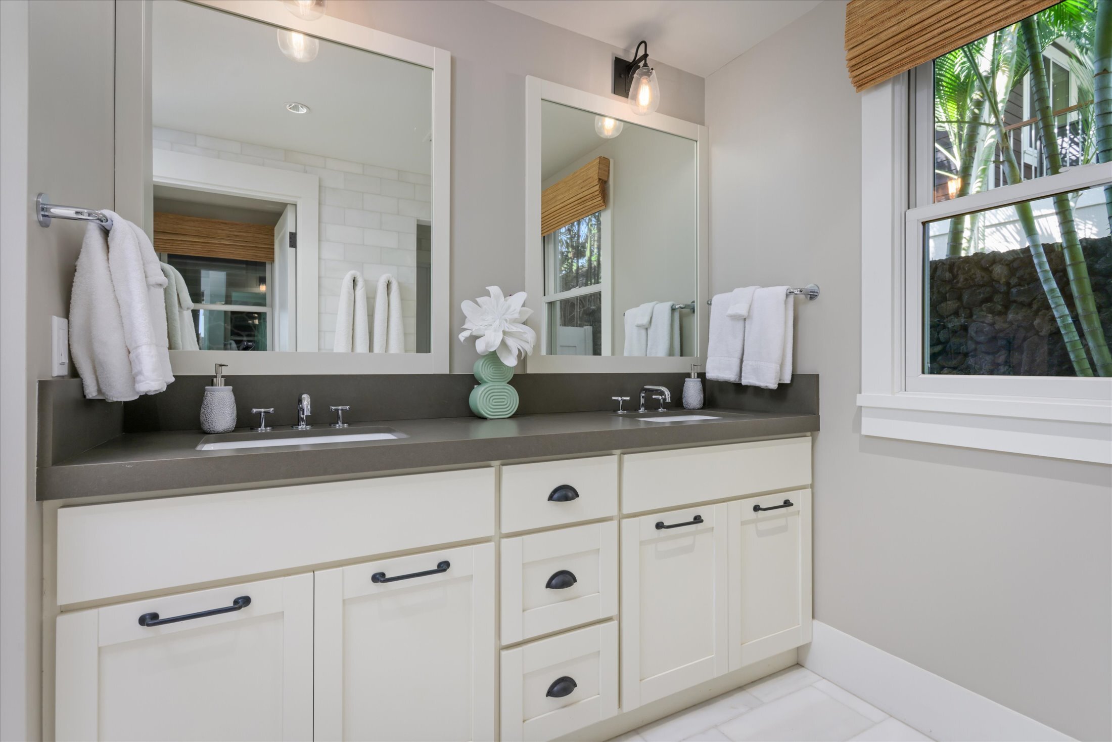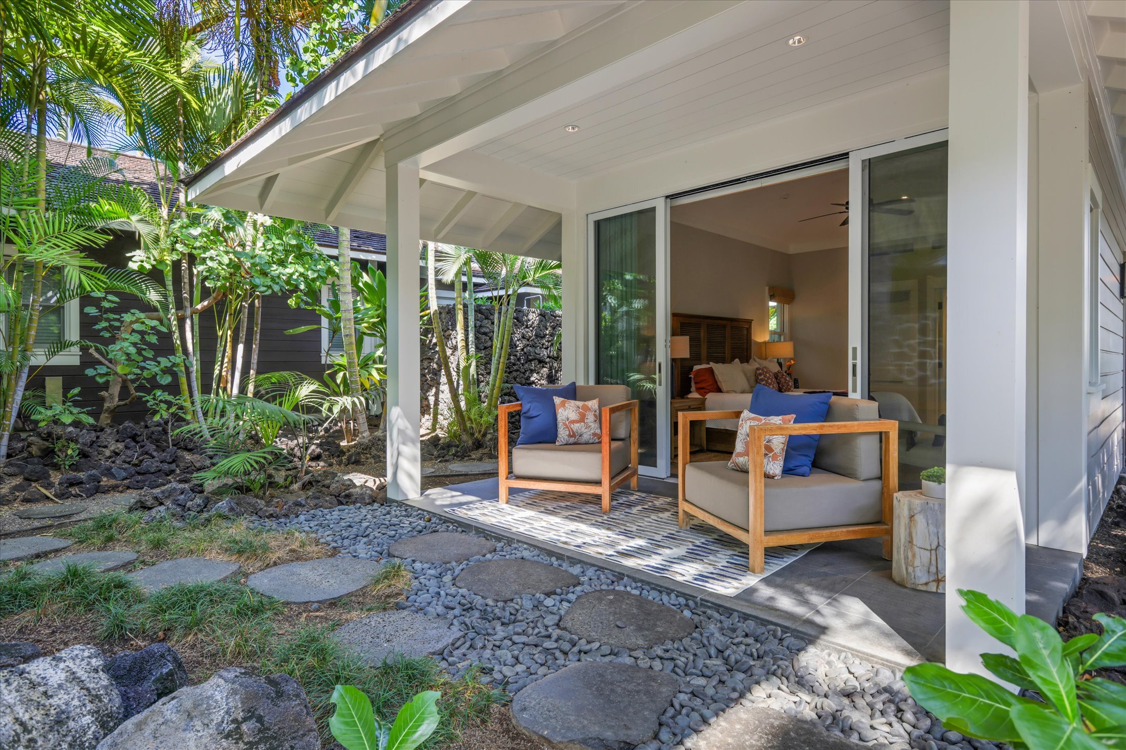 Hale Mai‘a 15 blends the timeless charm of a traditional kama‘aina beach home with the sophistication of modern living. This four-bedroom, four-and-a-half-bath, two-story townhome–thoughtfully designed by visionary architect Warren Sunnland–captures sweeping ocean and sunset views while offering expansive indoor—outdoor living spaces. The upper level features a spacious great room and a chef’s kitchen equipped with Sub-Zero and Wolf appliances, a built-in wine refrigerator, ideal for effortless entertaining. Pocket sliding doors reveal a large lanai with outdoor dining, lounge seating, and a built-in BBQ, creating a seamless extension of the living space. The primary suite on this level provides a tranquil retreat complete with a luxurious ensuite bath and a private outdoor shower garden. Downstairs, a junior primary suite with its own outdoor shower and a third bedroom offer comfort and versatility for family and guests. Pocket doors open to a beautifully landscaped private courtyard featuring an infinity-edge pool and spa, perfect for relaxed afternoons and gatherings. A detached one-bedroom, one-bath ?ohana unit serves as the fourth bedroom, offering exceptional privacy and comfort for visiting friends and extended family. The residence also includes a garage and is surrounded by lush tropical landscaping that enhances the home’s serene ambiance. Owners of real estate in Kohanaiki are invited for membership to the exclusive Club at Kohanaiki, unlocking exceptional amenities and experiences. Kohanaiki is an exclusive private club and residential community along the Kona coast of Hawaii's Big Island, spanning 450 acres with a 1½-mile shoreline. Deeply rooted in Hawaiian culture, it blends ancient history with modern luxury. World-class amenities include a Rees Jones golf course, a 67,000-square-foot clubhouse, resort-style pools, bowling, tennis, pickleball, exclusive adventures and more.