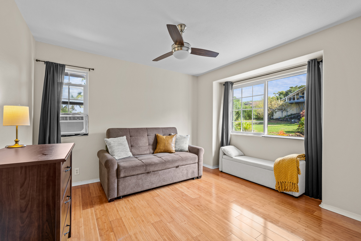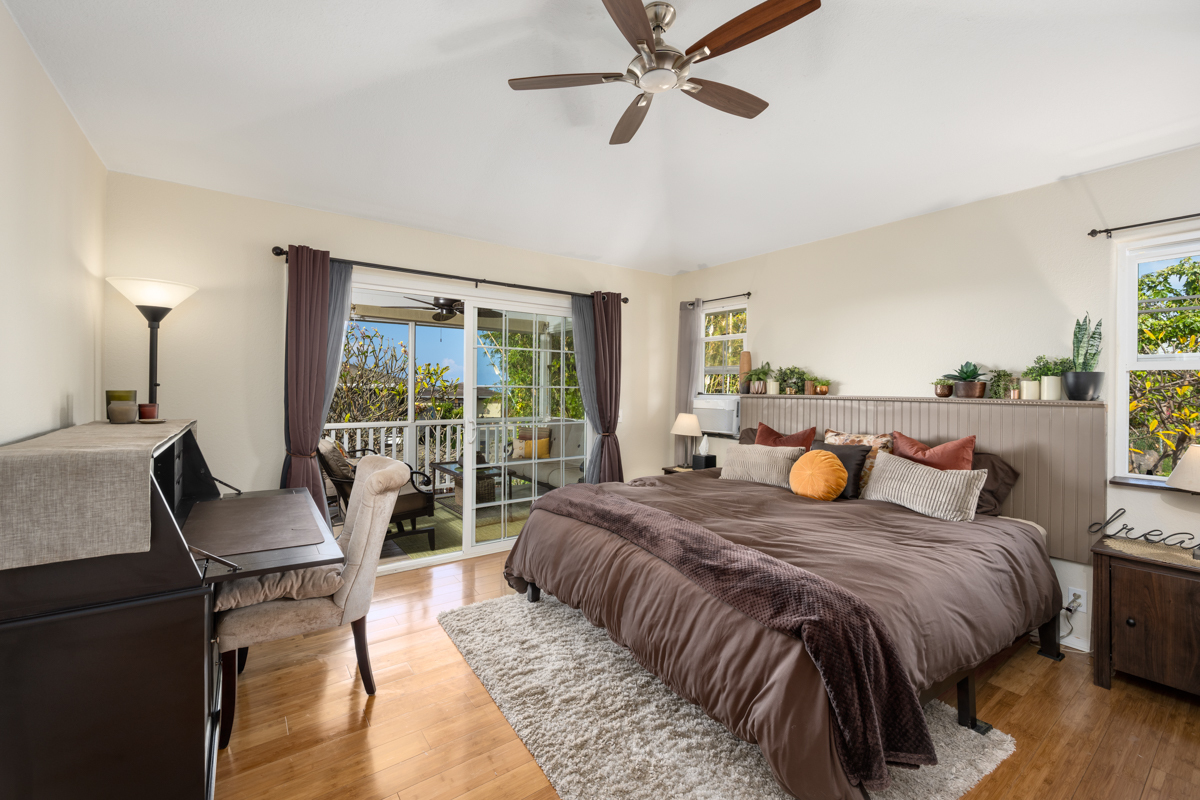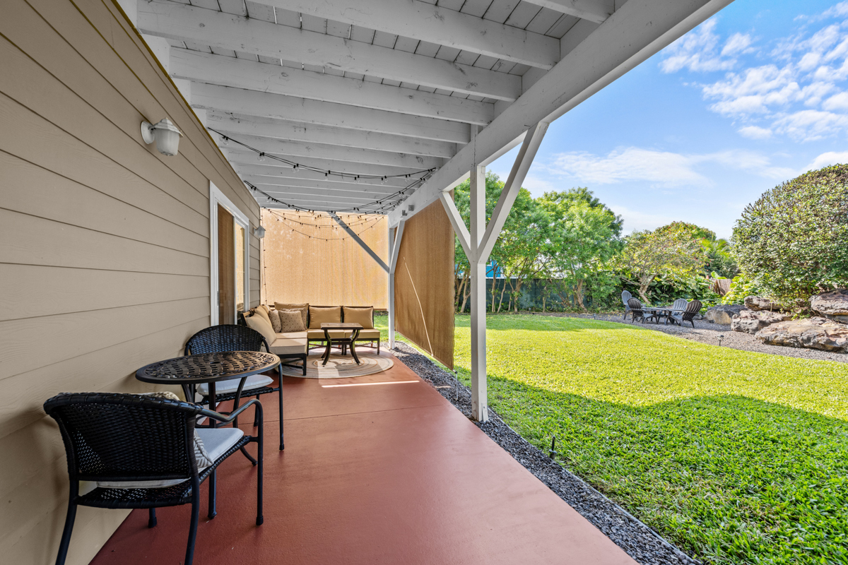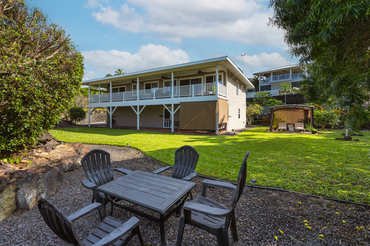The spacious, turnkey furnished residence lies in Komohana Kai, a well-established neighborhood of homes just up the hill from Lyman’s surf break, Magic Sands beach, and near work, shopping and schools. A separate guest area, lanai and oversized garage make this the ideal home for everyday Hawaii living. See video tour here: https://my.matterport.com/show/?m=CbopUKPq9uK&mls=1 The ground floor has a bedroom, bathroom, living area and its own lanai. The space is roomy and well maintained. It can be accessed from inside the house or its own entrance off the backyard. The main living area upstairs feels huge with vaulted ceilings and an abundance of windows and sunshine. The home overlooks lush tropical trees and a little bit of the ocean, too. - Main living upstairs, with a separate guest area downstairs - New solar water heater and panels in 2025 - New roof in 2026 - Upstairs: 2BD/2BA (master suite + second bedroom and renovated baths), office and laundry room - Updated kitchen with lots of wood cabinets for ample storage, and a long, U-shaped quartz counter - Large lanai along the Makai side of the home upstairs - Master suite opens to the lanai and enjoys consistent ocean breezes - Spacious master bedroom, with vaulted ceilings - Beautifully renovated master and guest bath upstairs - Downstairs:1BD/1BA w/ living area and lanai - Downstairs living area has its own access if privacy is needed - Enormous garage with parking for 2 cars, a separate laundry for guests, and ample storage - For pickleball enthusiasts, the driveway has an excellent area laid out for your own personal/private play. - Flat, grassy back yard, great for kids, pets, or a pool maybe - Mature trees make the back yard feel lush and private - Home inspection and termite reports have already been prepared This Komohana-Kai home is beautifully maintained and ready for you. It’s time to embrace Hawaii living!