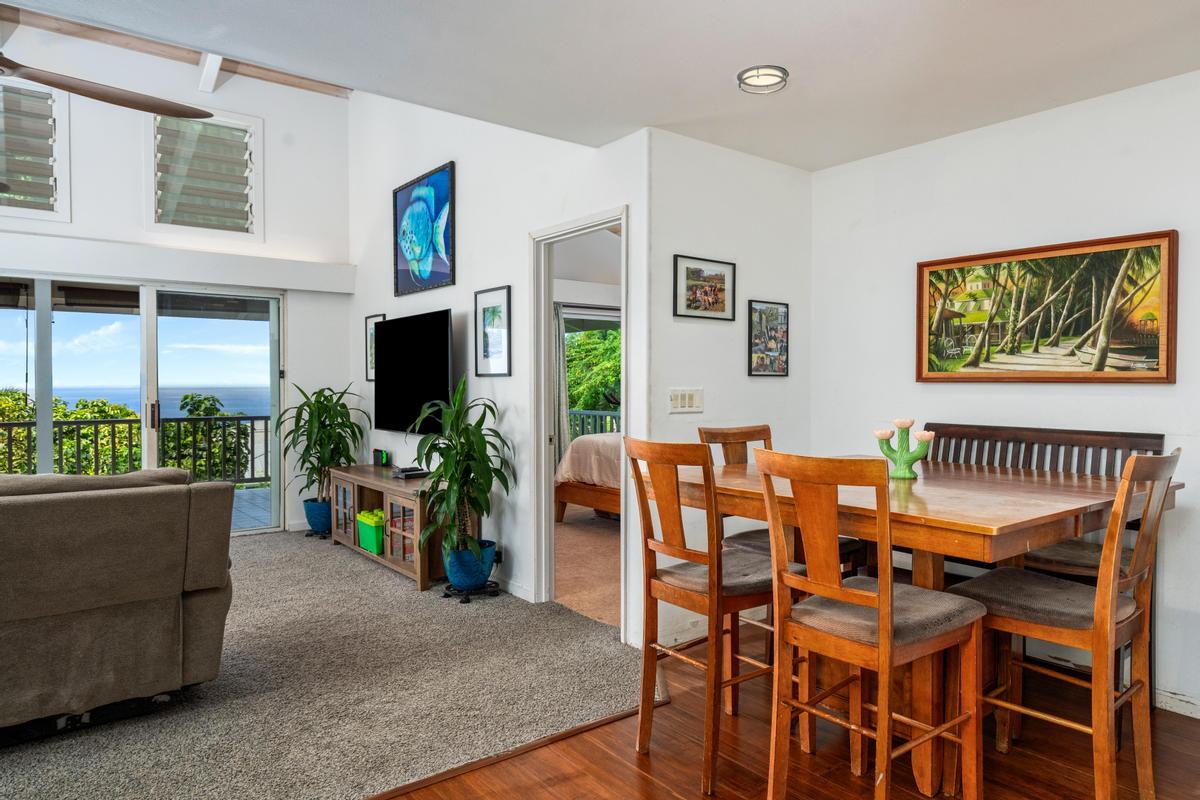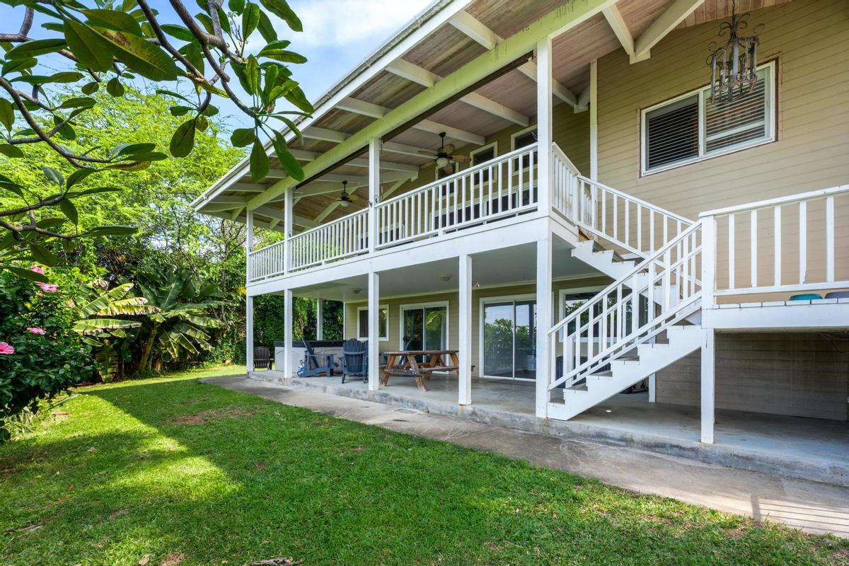 Downstairs (2 bed/1 bath): Separate entrance, full kitchen (stove not included), washer/dryer, and lanai with hot tub and ocean views.