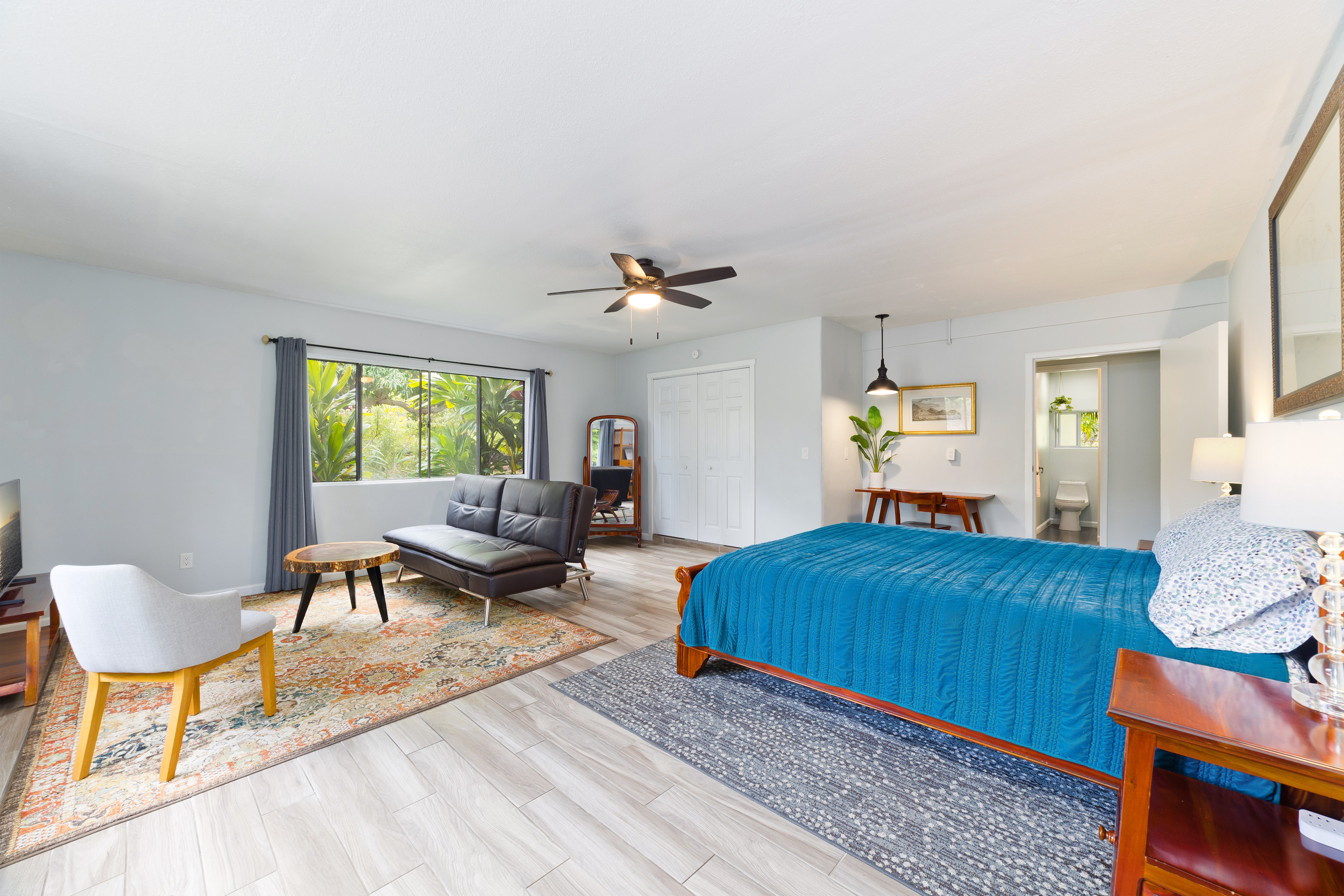 Set on the largest lot in the neighborhood, this private park-like estate offers two well cared-for homes with separate living areas, guest quarters, and lush tropical landscaping. With over 1.49 acres of manicured grounds, ocean vistas, and mature fruit trees, this property is a true Kona retreat.