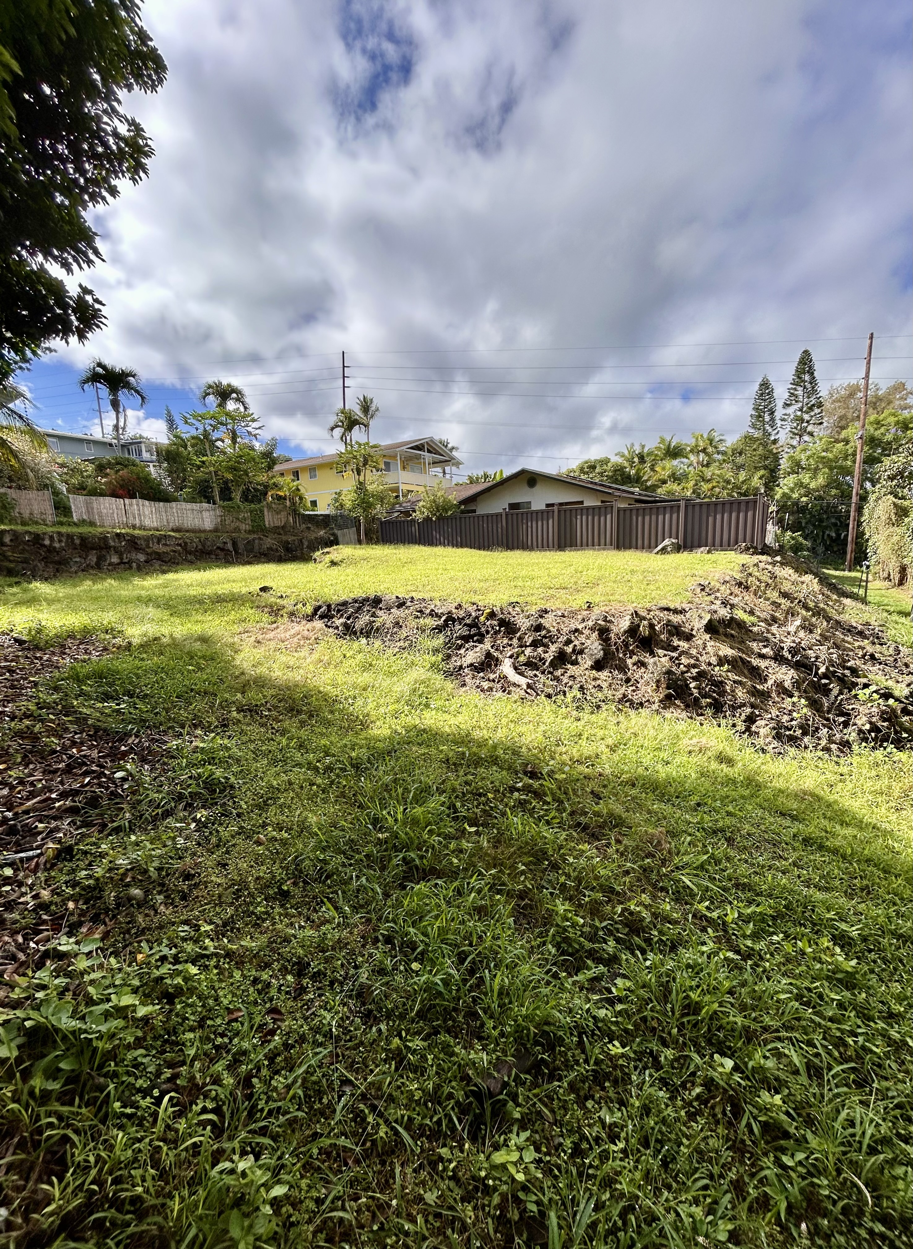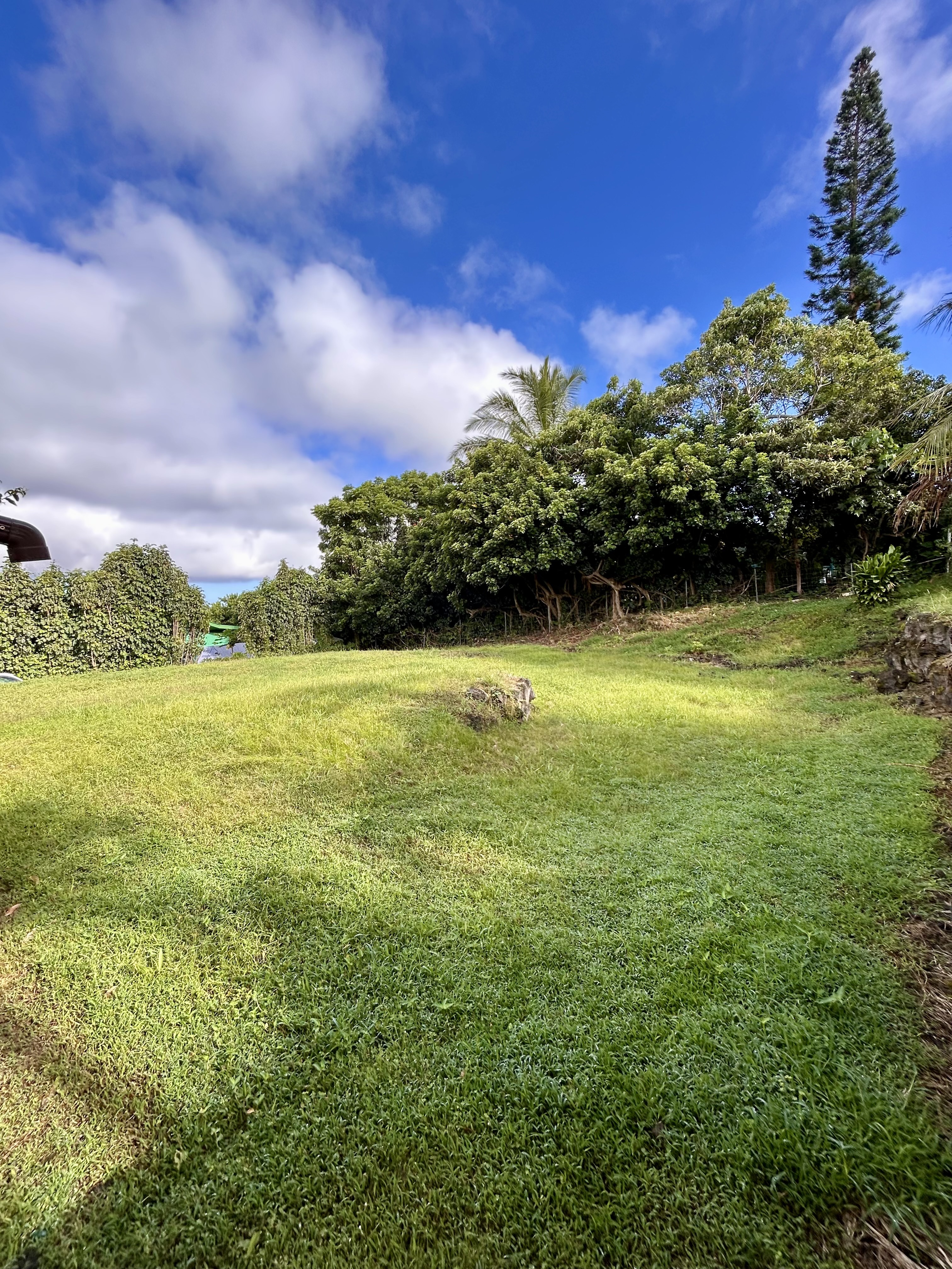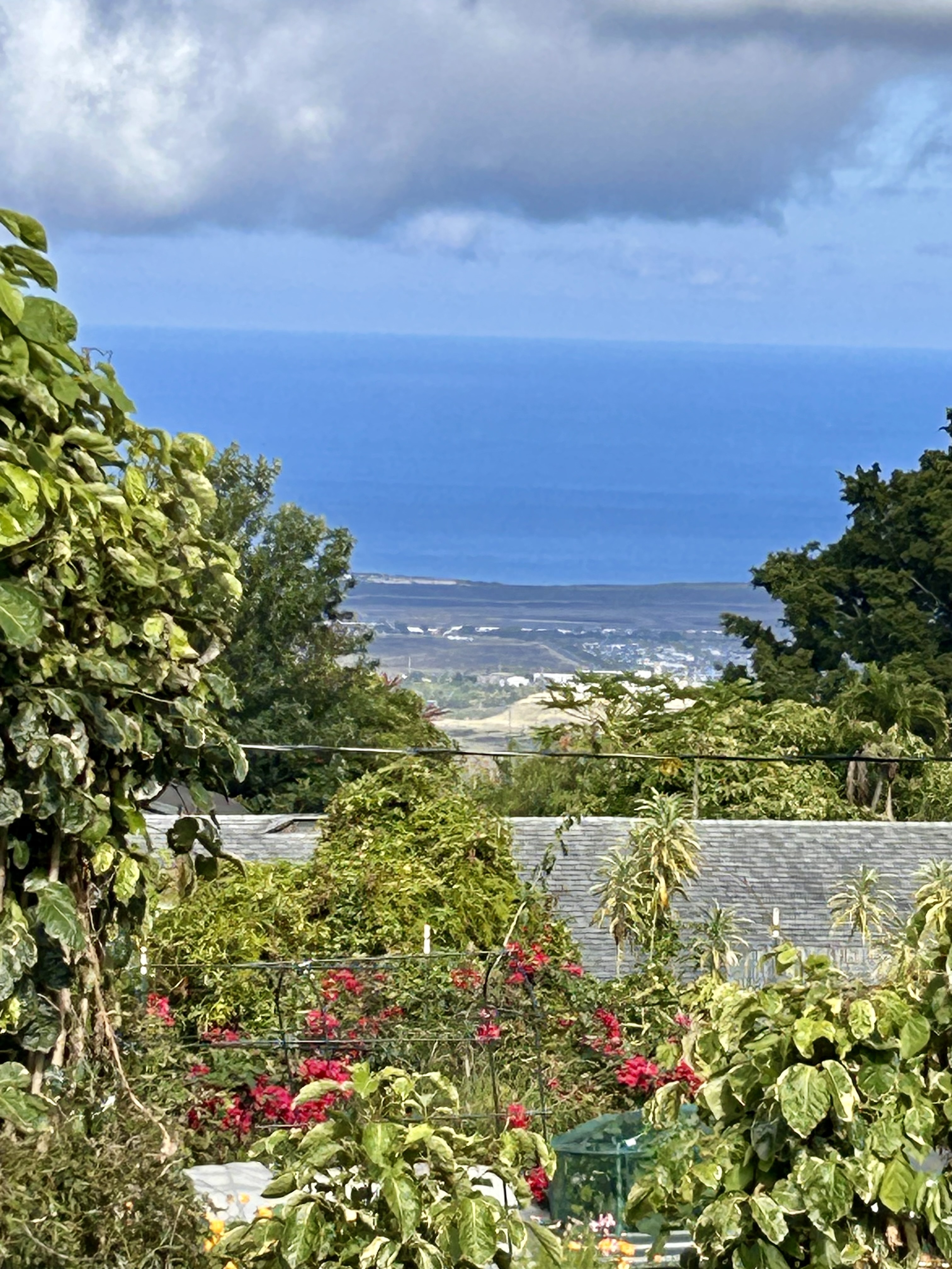 Located at a cool ~1540 ft. elevation above the airport, this clean 3/2 single level, hillside home has ocean views and cool breezes. This 17,000+ sq. ft. lot features plenty of extra space in both the front and back yards with yet another separate grassy area, with a covered lanai, perfect for kids or animals. The large front yard can easily accommodate 10+ cars and the extra large backyard can be accessed via a lower driveway or through the existing gate system and can be used for gardens, extra parking, or even to build another structure. Pineapples, figs, papayas, lilikoi, mint, ginger, bananas, dragon fruit, and avocados are on property.