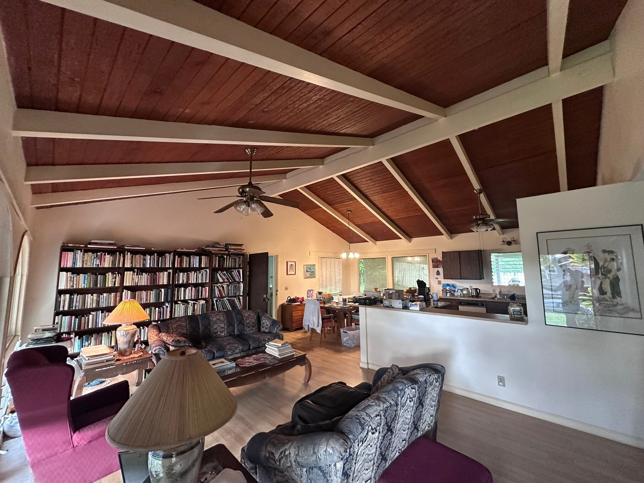 A GEM, BEAUTIFUL SUNSETS and a peek a boo OCEAN VIEW from the living room and BEUTIFULLY LANDSCAPED lot with a LARGE MANICURED GRASS lawn. TWO UNITS, a LARGE studio with KITCHENETTE and PRIVATE entrance. OPEN BEAM CEILING in living room and a large kitchen.