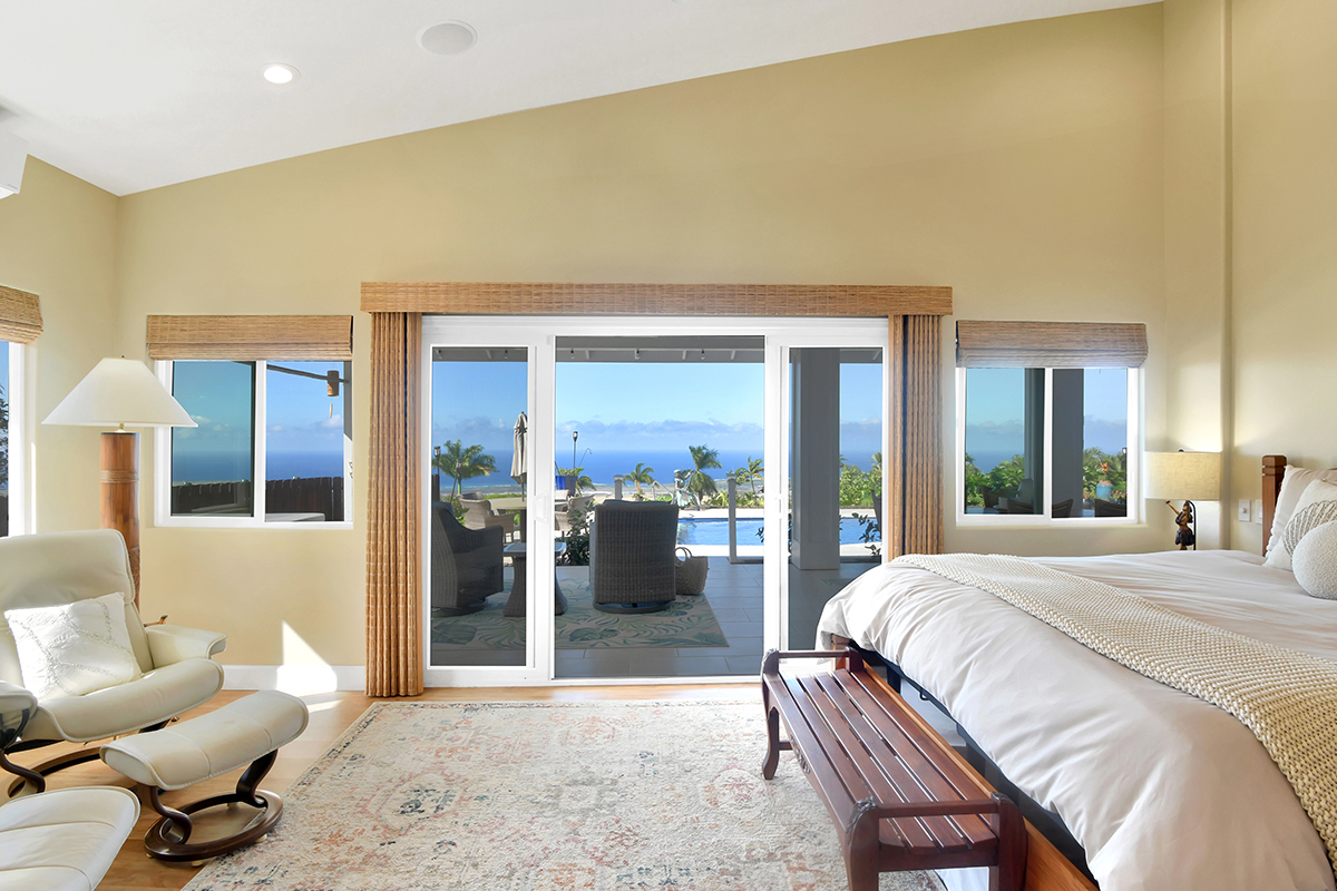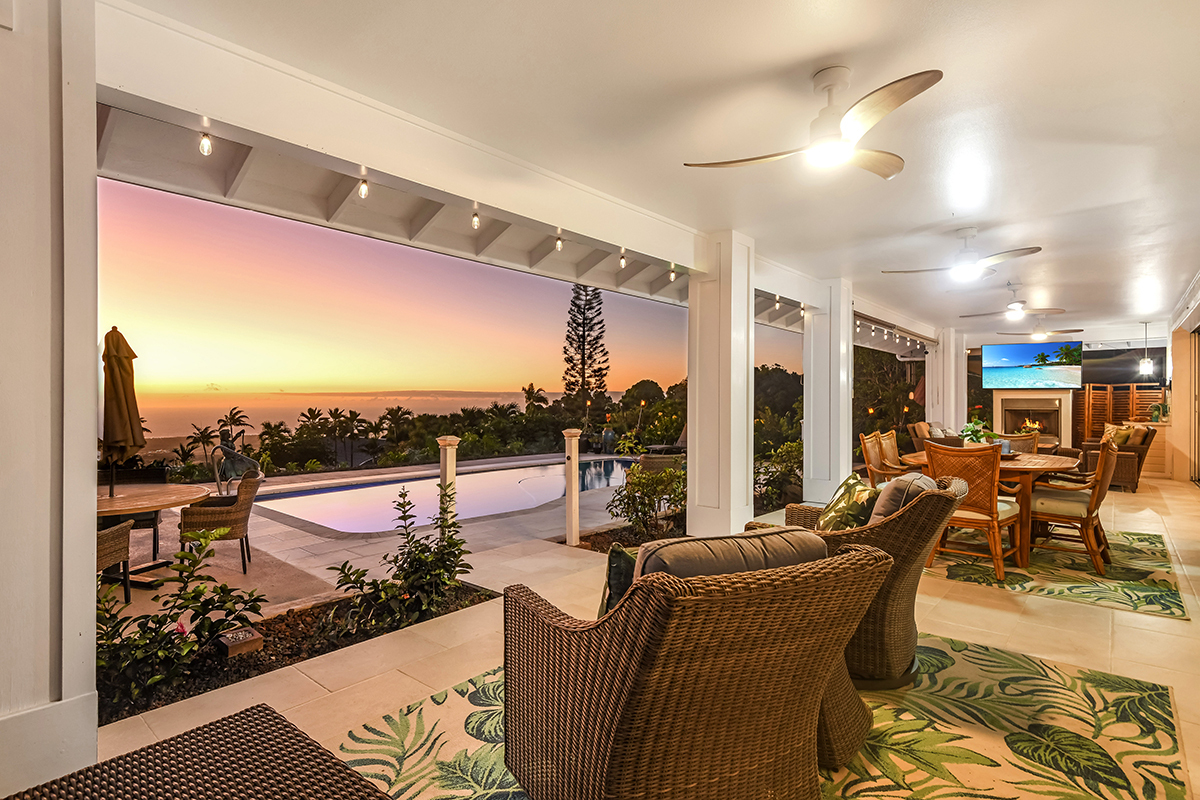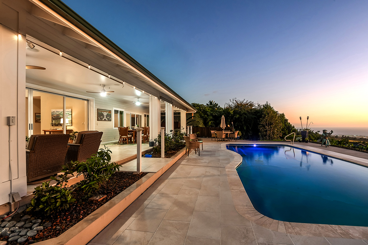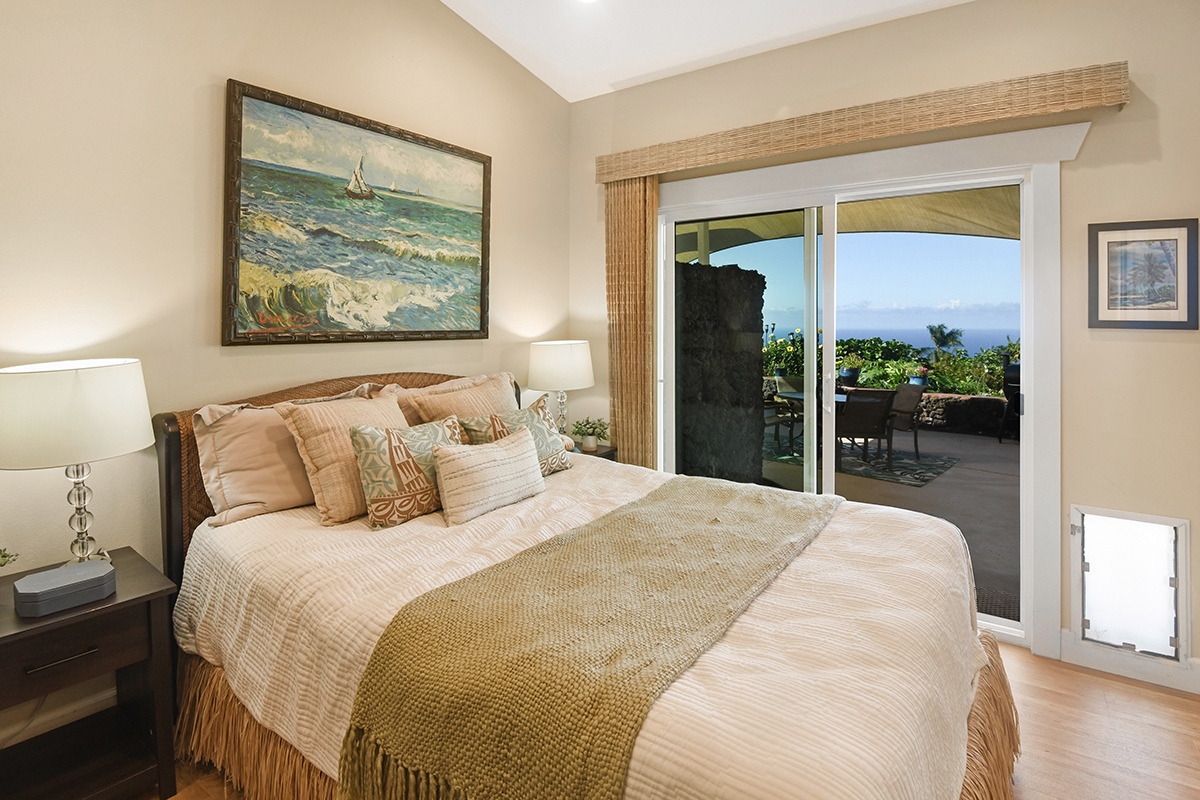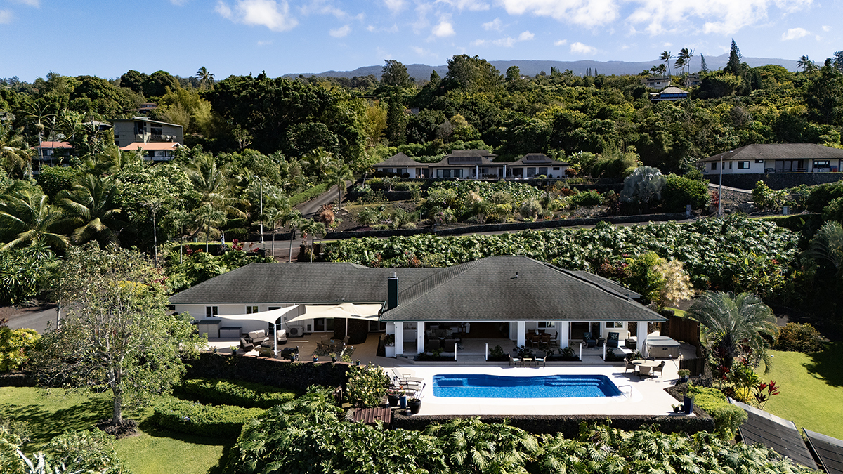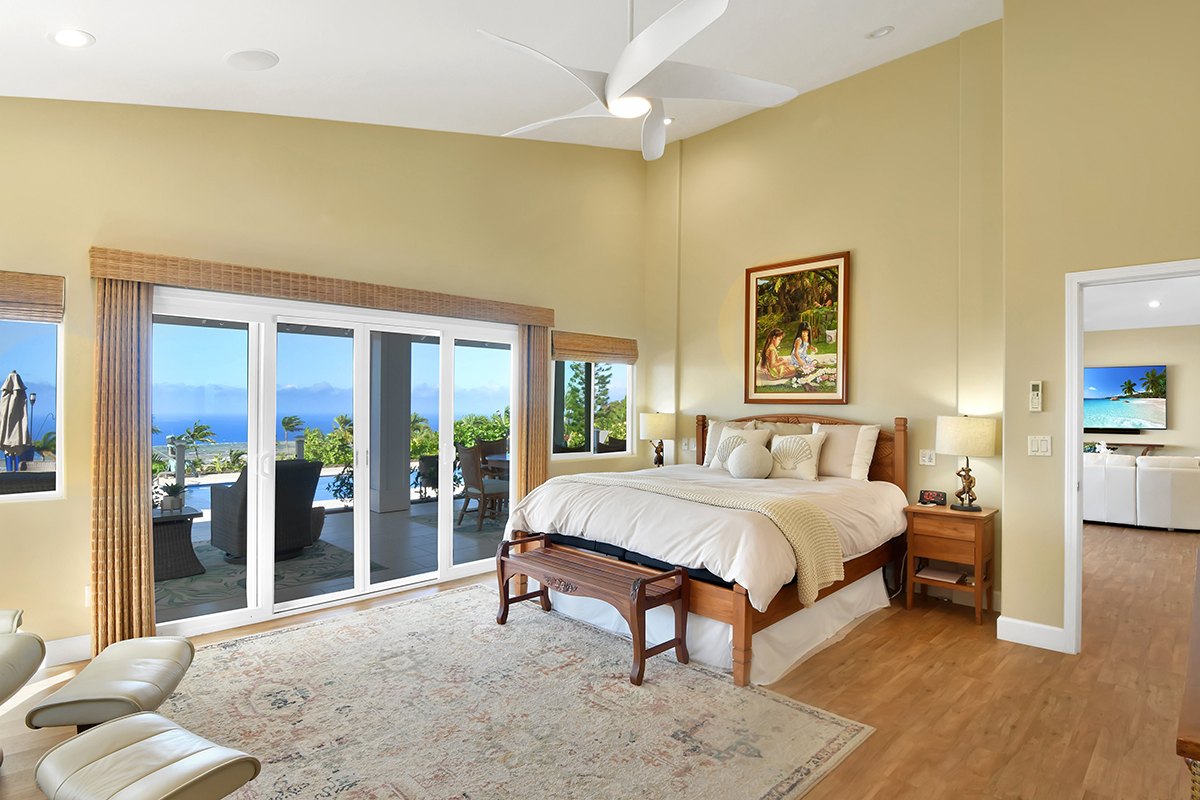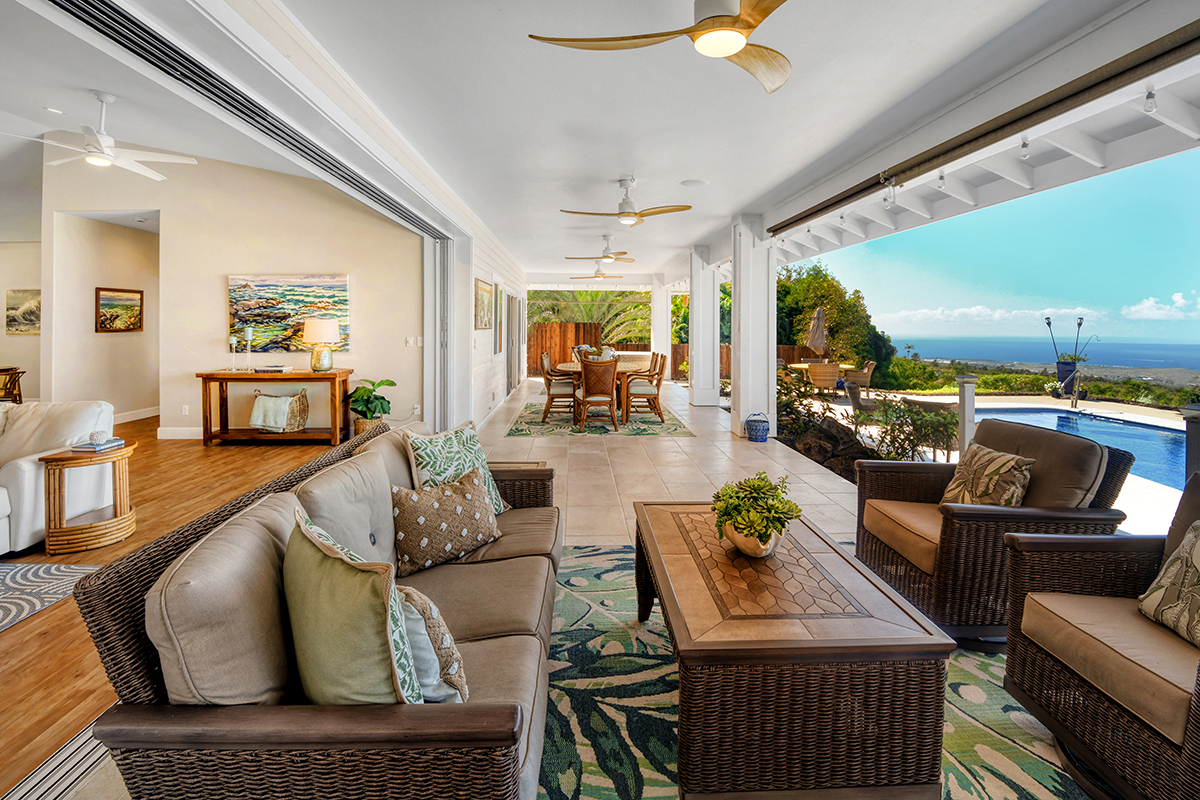 Private Paradise in Kona Heavens: 2023 Renovation with Unrivaled Views and Resort Style Features Welcome to a masterpiece of modern luxury and tropical serenity. Located in one of Kona’s most desirable neighborhoods, Kona Heavens, this home is close to everyday necessities and world class beaches. Situated at the end of a quiet street on a lush one acre lot, the property is fully fenced for privacy. It features two gated entries and a pedestrian gate. Entirely renovated in 2023, this stunning 3 bedroom, 2.5 bath residence is being sold fully furnished. The heart of the home is an expansive open concept great room with a split floor plan. A 20-ft screened retractable pocket door creates a seamless transition to the massive 50-ft covered lanai. You’ll find “views to die for" from the lanai, great room and every bedroom. The chef’s kitchen is a showstopper, featuring: A massive 128-inch quartz island Premium Café smart appliances & custom cabinetry A walk-in pantry with a wine fridge, coffee bar & extra refrigerator Enjoy a backyard resort as you step outside to a private paradise. The mature landscaping is an edible garden with mango, avocado, papaya, banana, orange and tangerine trees. Relax with a large solar heated pool and above ground spa. Entertain with the outdoor living space, featuring a fireplace, wet bar, TV, multiple seating areas, a fire pit and a large teak outdoor dining table under the covered lanai. Luxury Suites and Smart Features: The primary suite offers a true spa experience with a private outdoor shower, a large soaking tub, double sinks and a spacious walk-in closet. Two large guest bedrooms feature direct lanai access, share a full bath and a second outdoor shower. This home is as smart as it is beautiful, featuring 35 owned solar panels with 3 backup batteries, split system a/c in the great room and bedrooms. A 3-car garage and a large laundry room provide plenty of storage and convenience.