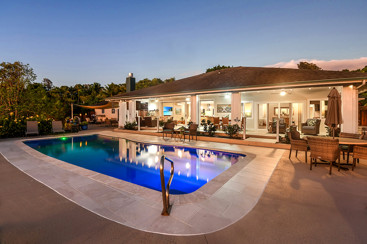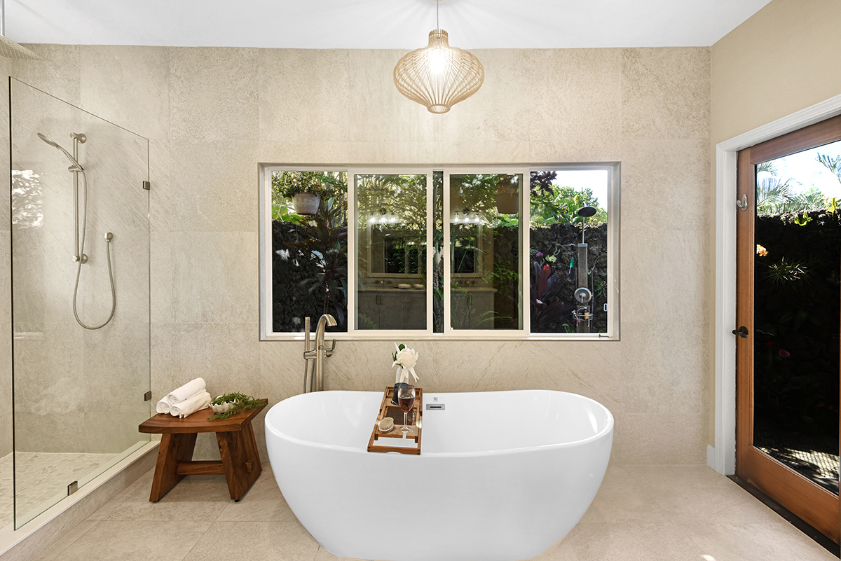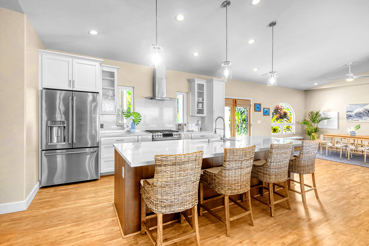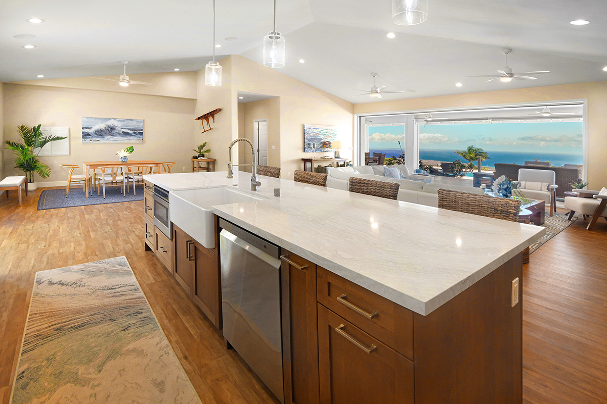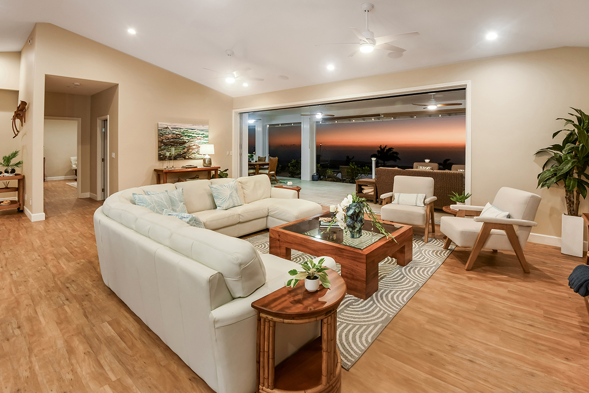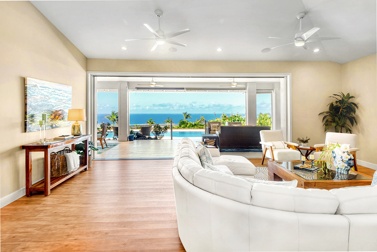 Private Paradise in Kona Heavens: 2023 Renovation with Unrivaled Views and Resort Style Features Welcome to a masterpiece of modern luxury and tropical serenity. Located in one of Kona’s most desirable neighborhoods, Kona Heavens, this home is close to everyday necessities and world class beaches. Situated at the end of a quiet street on a lush one acre lot, the property is fully fenced for privacy. It features two gated entries and a pedestrian gate. Entirely renovated in 2023, this stunning 3 bedroom, 2.5 bath residence is being sold fully furnished. The heart of the home is an expansive open concept great room with a split floor plan. A 20-ft screened retractable pocket door creates a seamless transition to the massive 50-ft covered lanai. You’ll find “views to die for" from the lanai, great room and every bedroom. The chef’s kitchen is a showstopper, featuring: A massive 128-inch quartz island Premium Café smart appliances & custom cabinetry A walk-in pantry with a wine fridge, coffee bar & extra refrigerator Enjoy a backyard resort as you step outside to a private paradise. The mature landscaping is an edible garden with mango, avocado, papaya, banana, orange and tangerine trees. Relax with a large solar heated pool and above ground spa. Entertain with the outdoor living space, featuring a fireplace, wet bar, TV, multiple seating areas, a fire pit and a large teak outdoor dining table under the covered lanai. Luxury Suites and Smart Features: The primary suite offers a true spa experience with a private outdoor shower, a large soaking tub, double sinks and a spacious walk-in closet. Two large guest bedrooms feature direct lanai access, share a full bath and a second outdoor shower. This home is as smart as it is beautiful, featuring 35 owned solar panels with 3 backup batteries, split system a/c in the great room and bedrooms. A 3-car garage and a large laundry room provide plenty of storage and convenience.