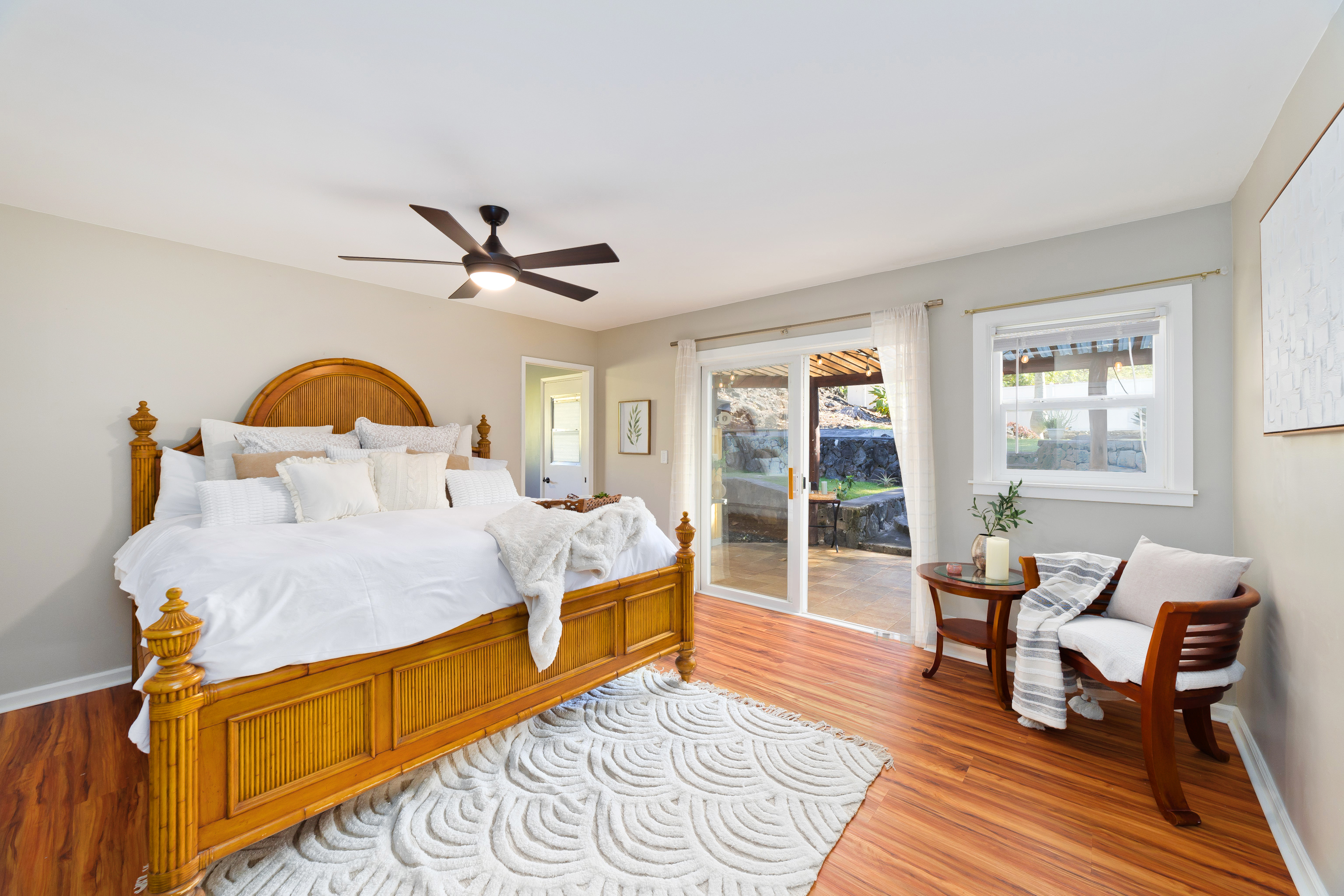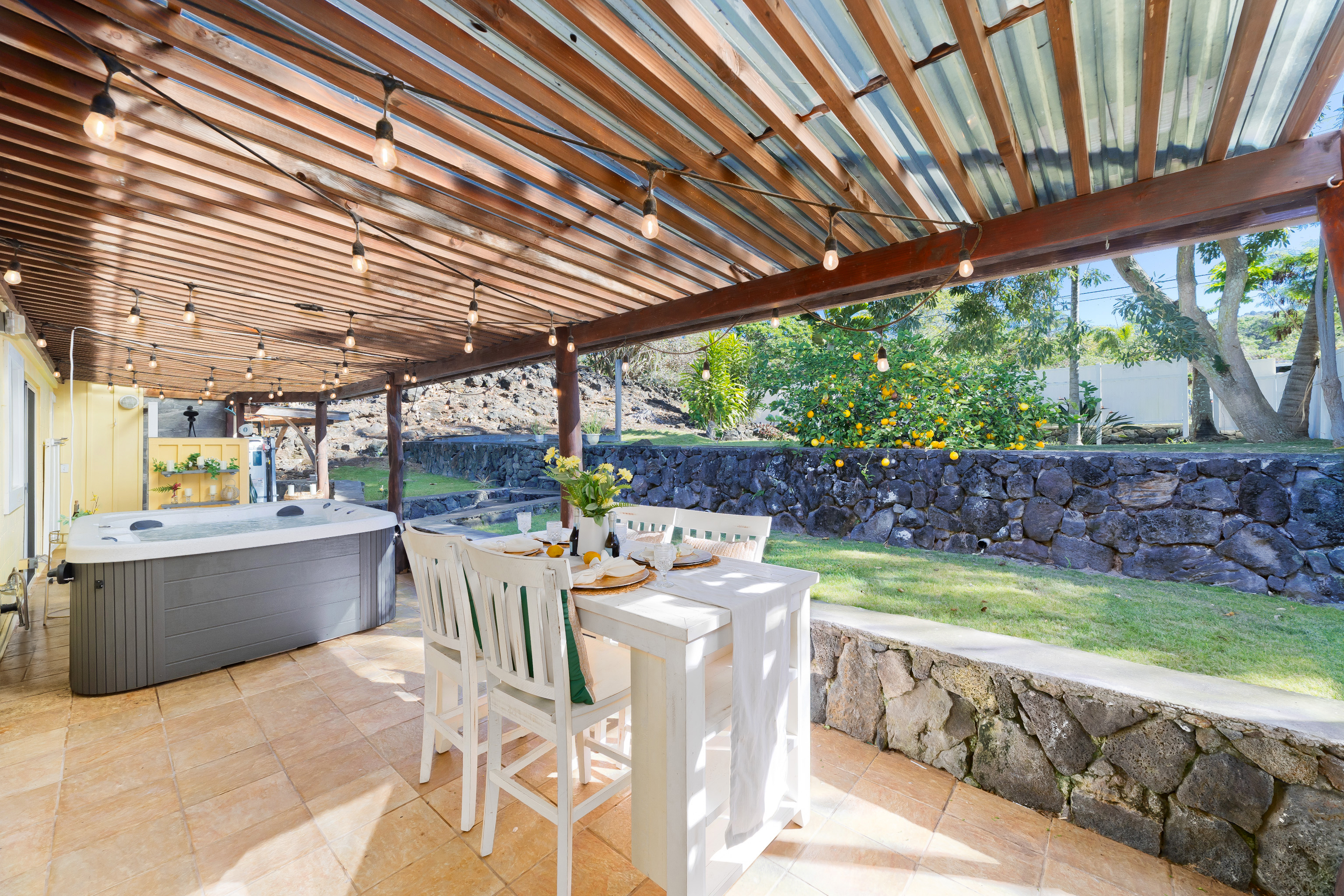 Well-built, charming, and bright 3-bedroom, 2-bath home with an open-concept layout and great natural light throughout. The backyard looks out toward Hualalai Mountain and includes an outdoor shower, hot tub, and an additional access gate for convenience. A separate office space with doors that open to a front patio creates a flexible area for working from home, hobbies, or guests. The landscaped yard sits on a quiet cul-de-sac while still being just minutes to town, or take the back road up to Holualoa for coffee, galleries, and cooler air. A comfortable and fun home in a great Kona location!