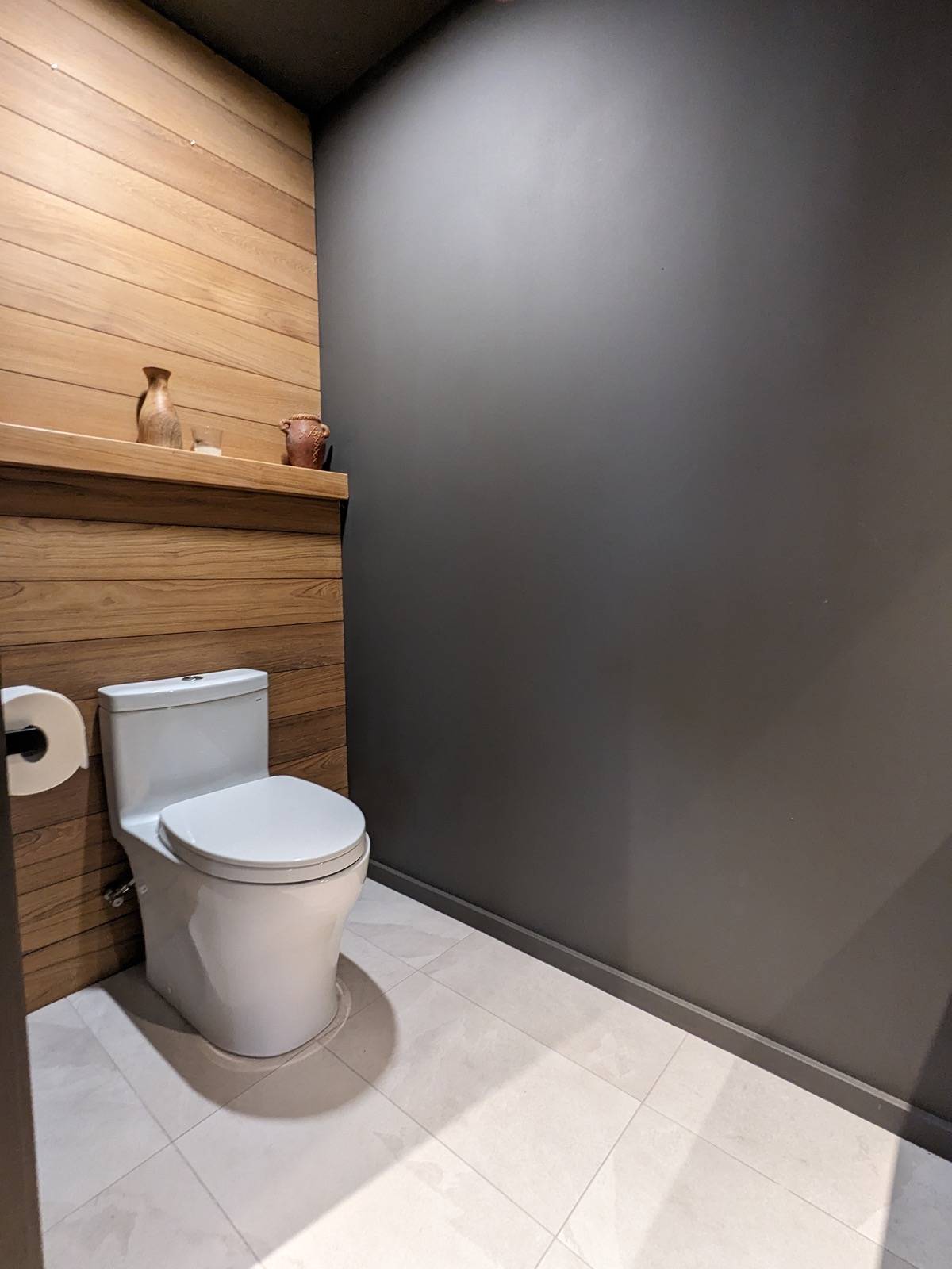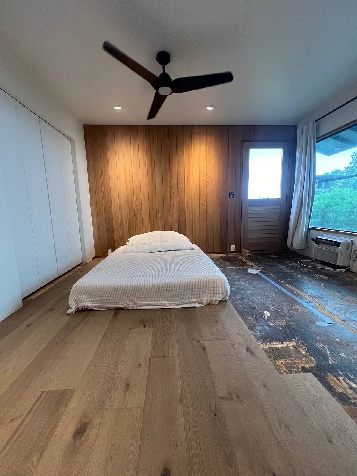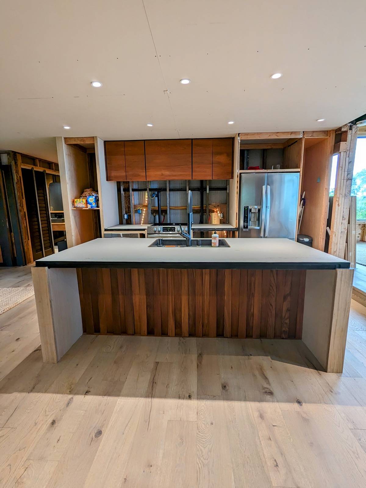 This modern home has many warm touches of wood throughout. The custom kitchen cabinets are made from 1/4 sawn white oak and teak. Teak accents are found in the kitchen, bedroom and bathrooms. Floors are European white oak 8" wide plank. There are top-end Toto toilets in both bathrooms.