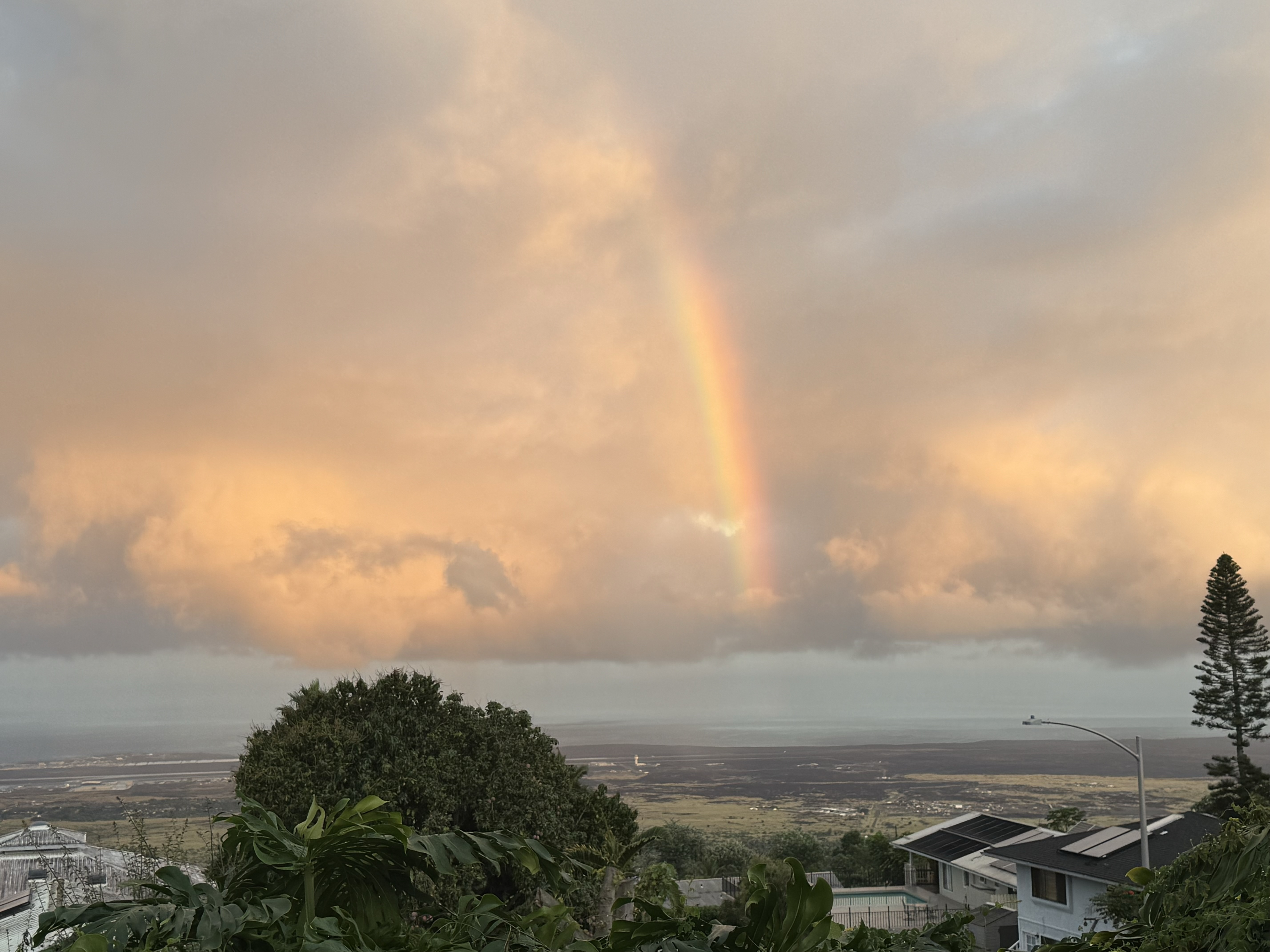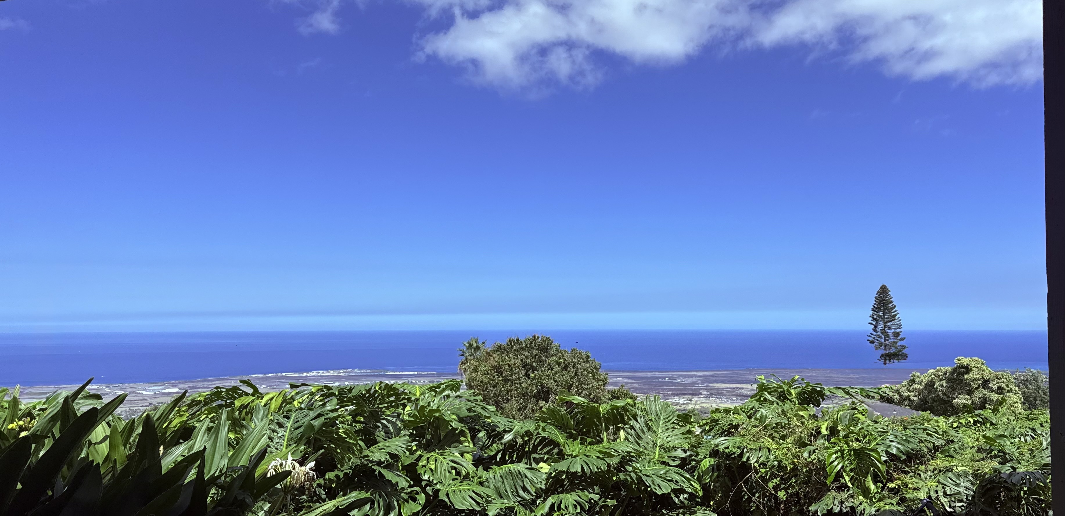 A beautiful ocean and sunset view. Home is being sold as. Master bedroom has a private lanai and there are fruit trees and an avocado tree.