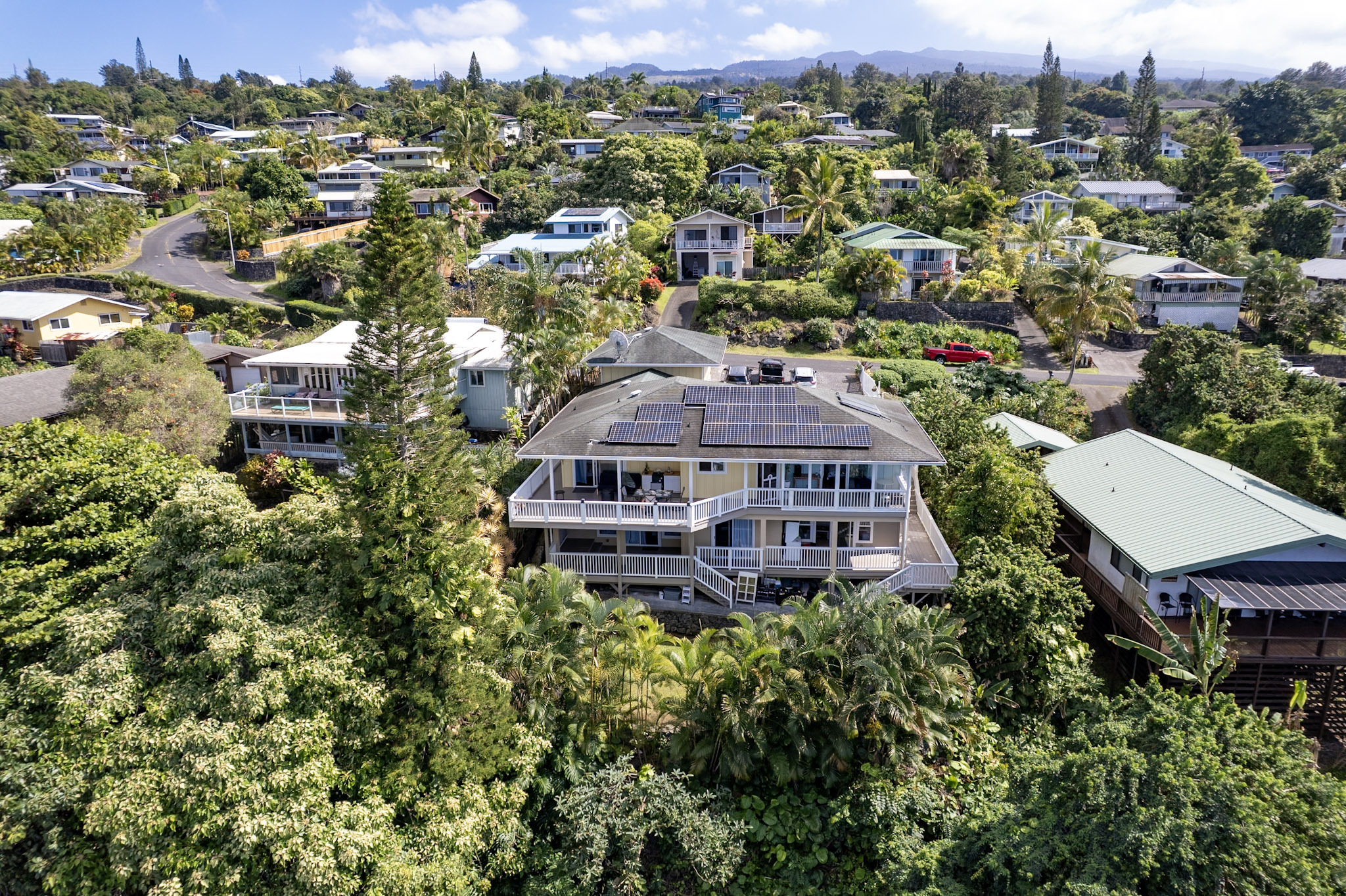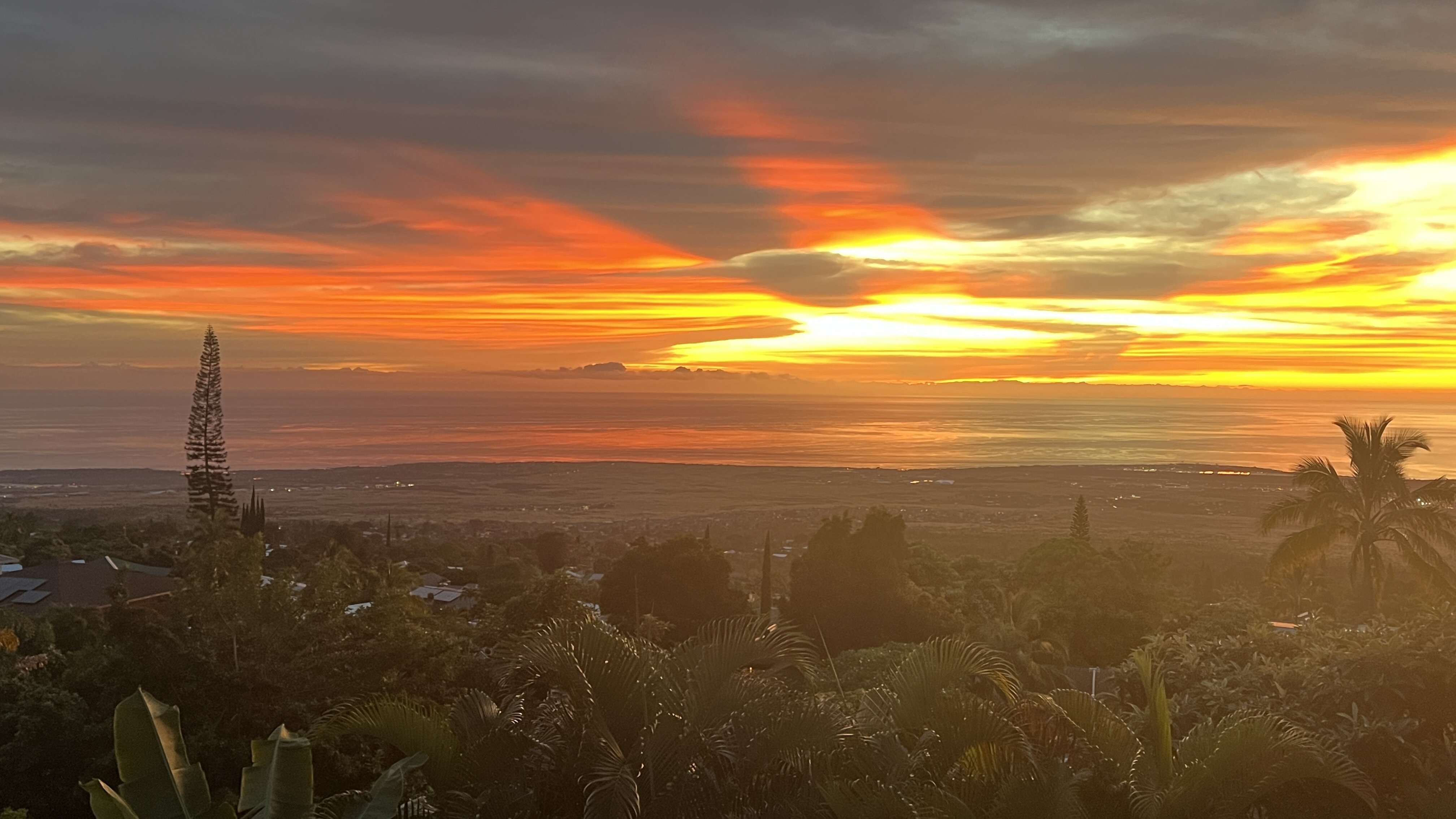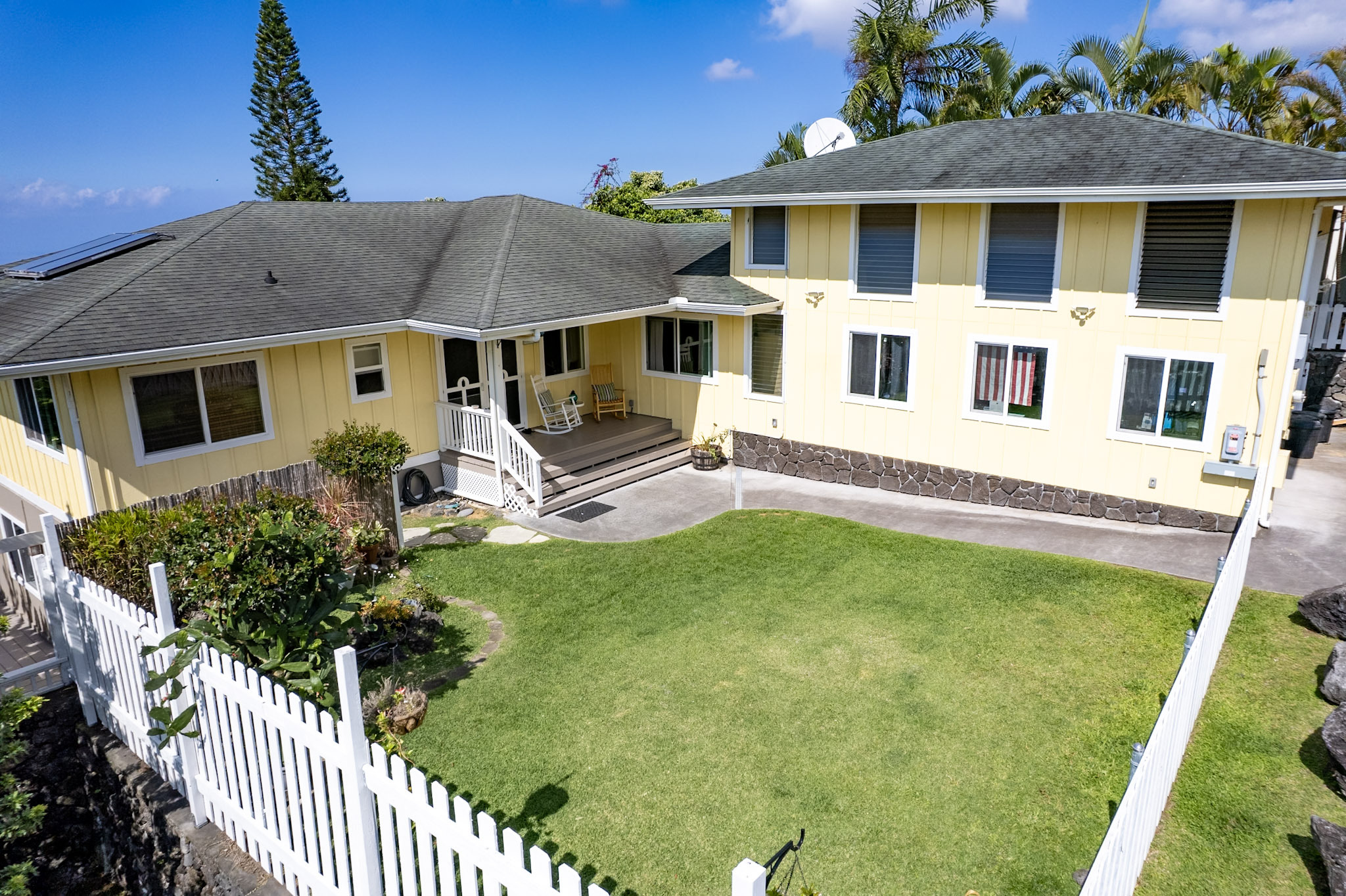 Welcome to the Kona Highlands in Kailua Kona featuring expansive ocean views! This unique property is a dream come true for a family looking to enjoy the beauty and convenience of living in paradise. With cooler temperatures at 1,100-foot elevation, the home is located just 10 minutes from the airport, and close to the beaches, shopping and Kona downtown. Unobstructed views of the Kona coastline. Main Level - 3 bedrooms, 2 bathrooms - Open and renovated kitchen and dining room concept - Fully Remodeled kitchen with beautiful butcher block countertops - Sunken living room — perfect for entertaining guests or relaxing with family - Main floor has solid 3/4” refinished hardwood floors throughout - Spacious lanai to take in the stunning Kona sunsets overlooking the ocean - Laundry area conveniently located in the large garage - Fenced front yard great for pets Lower Level - 1 bed / 1 bath unit - Studio / 1 bath unit - Accessed from the lower lanai, each suite has its own entrance - Additional washer/dryer on the lanai - Perfect for a multi-generational family, or for a potential income source - The lower lanai also has views and a seating area perfect for gatherings or barbecues - Flat lower yard perfect for a garden or pets. Additional Highlights - Huge oversized 600 sqft garage with 15-foot ceiling and 12 x 16-foot roll-up garage door — perfect for cars, boats, gym, or workshop/business - Off-street parking for 6 cars, a rarity for this area. - 22 leased solar photovoltaic panels & solar water heater