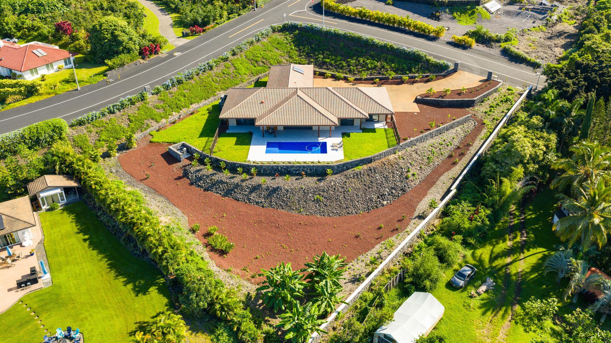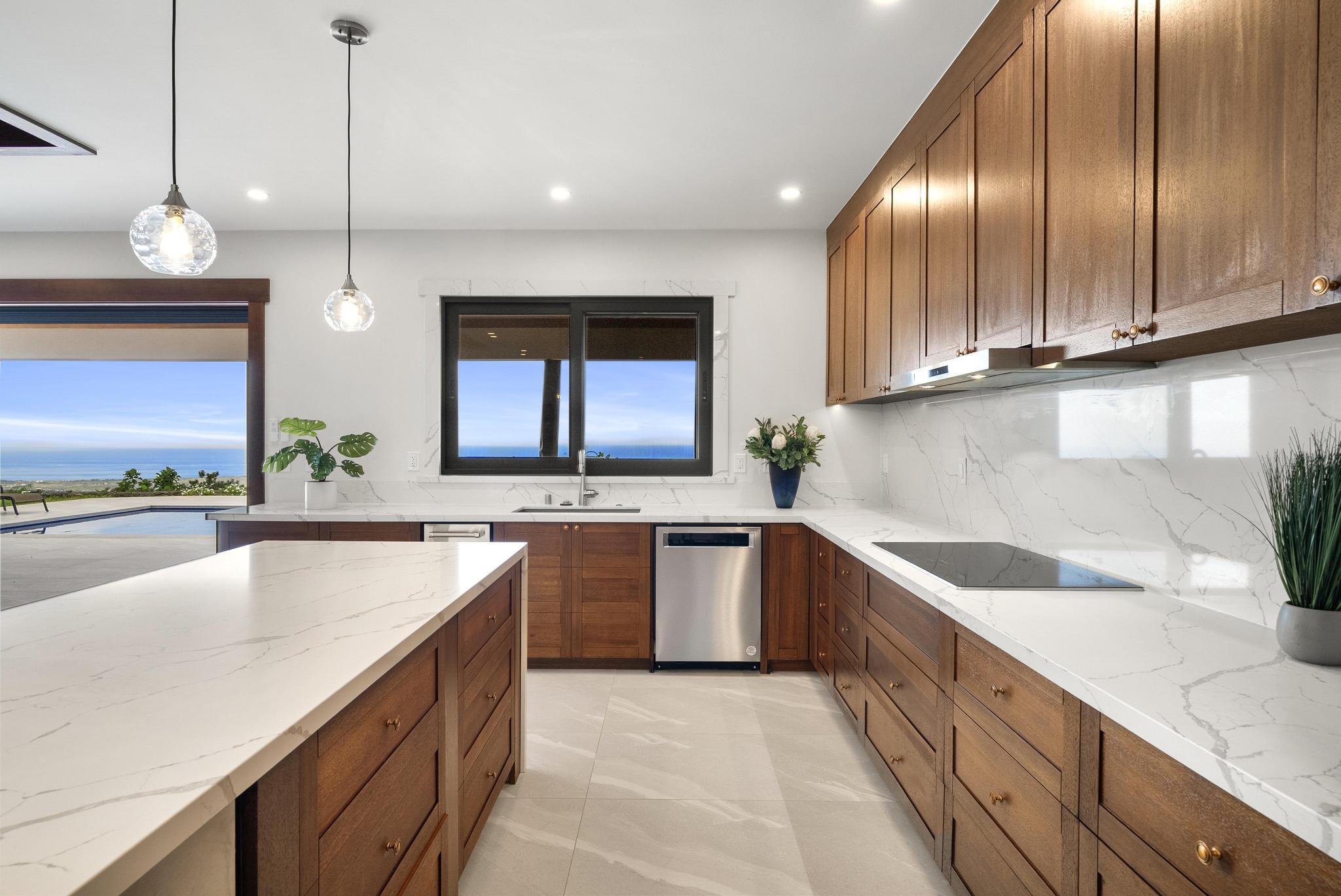 Welcome to this stunning brand-new custom estate, gracefully positioned at the end of a quiet cul-de-sac in the prestigious gated community of Kona Hills. Thoughtfully designed and artfully built, this residence captures the essence of refined island living–where modern sophistication meets natural Hawaiian beauty.