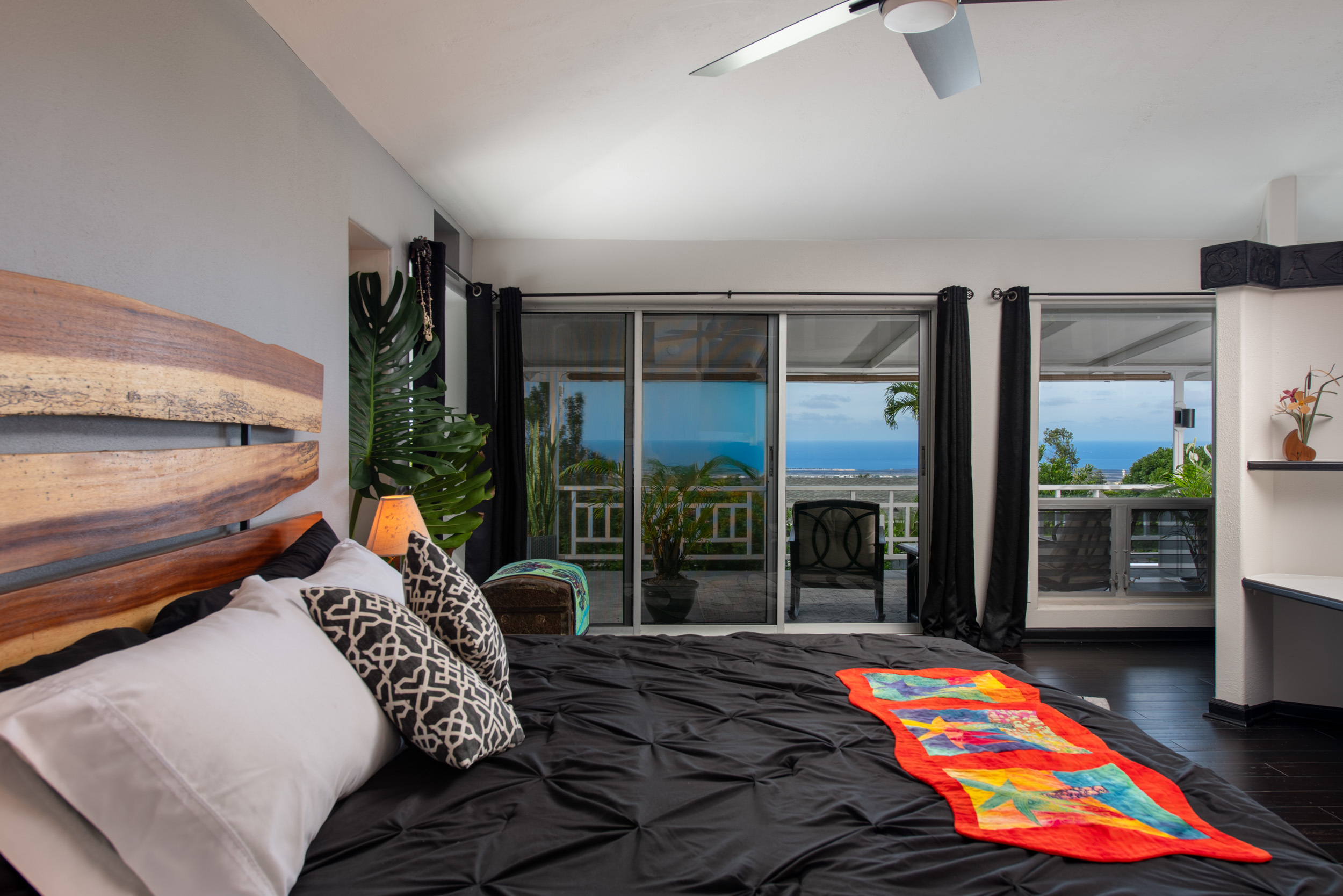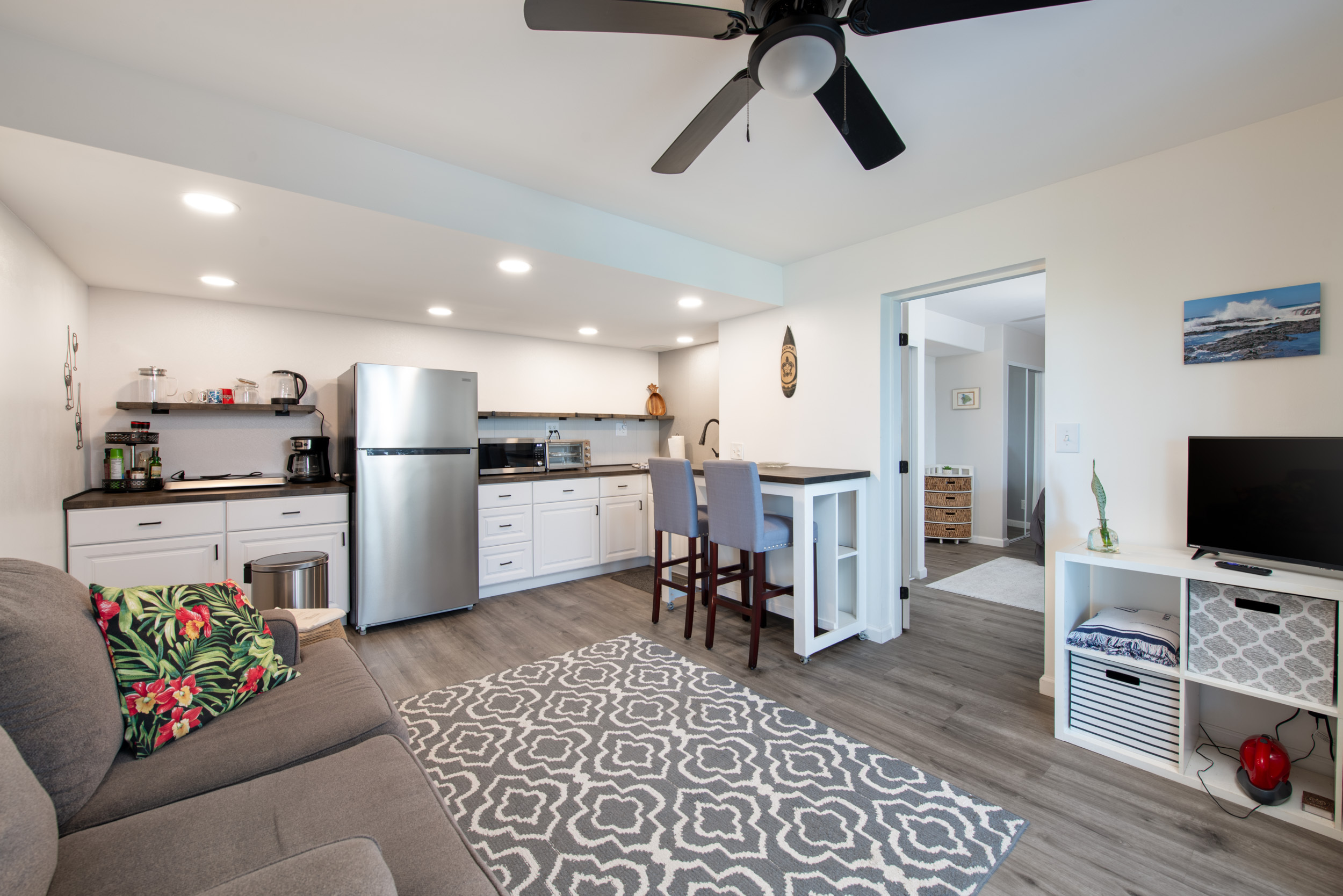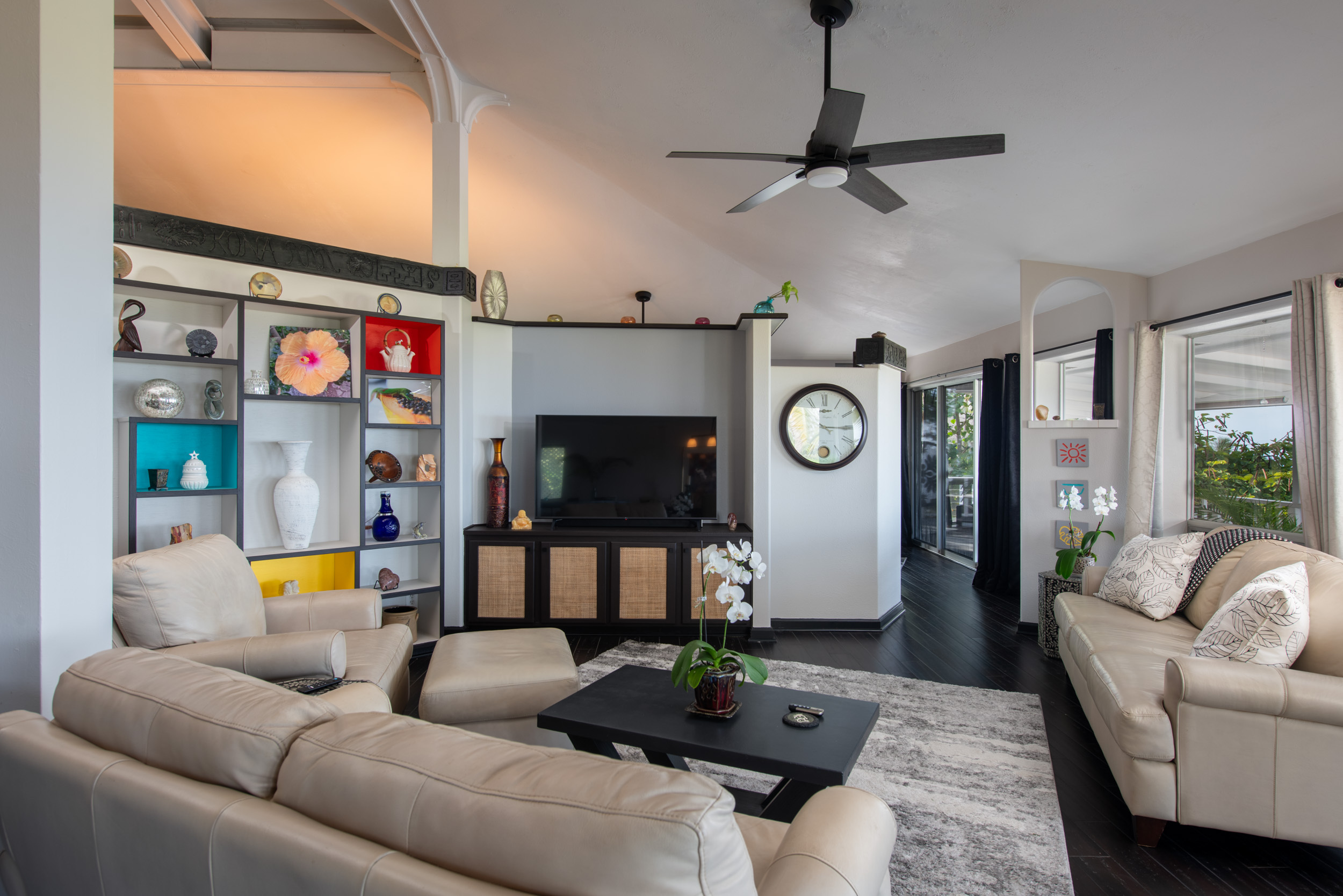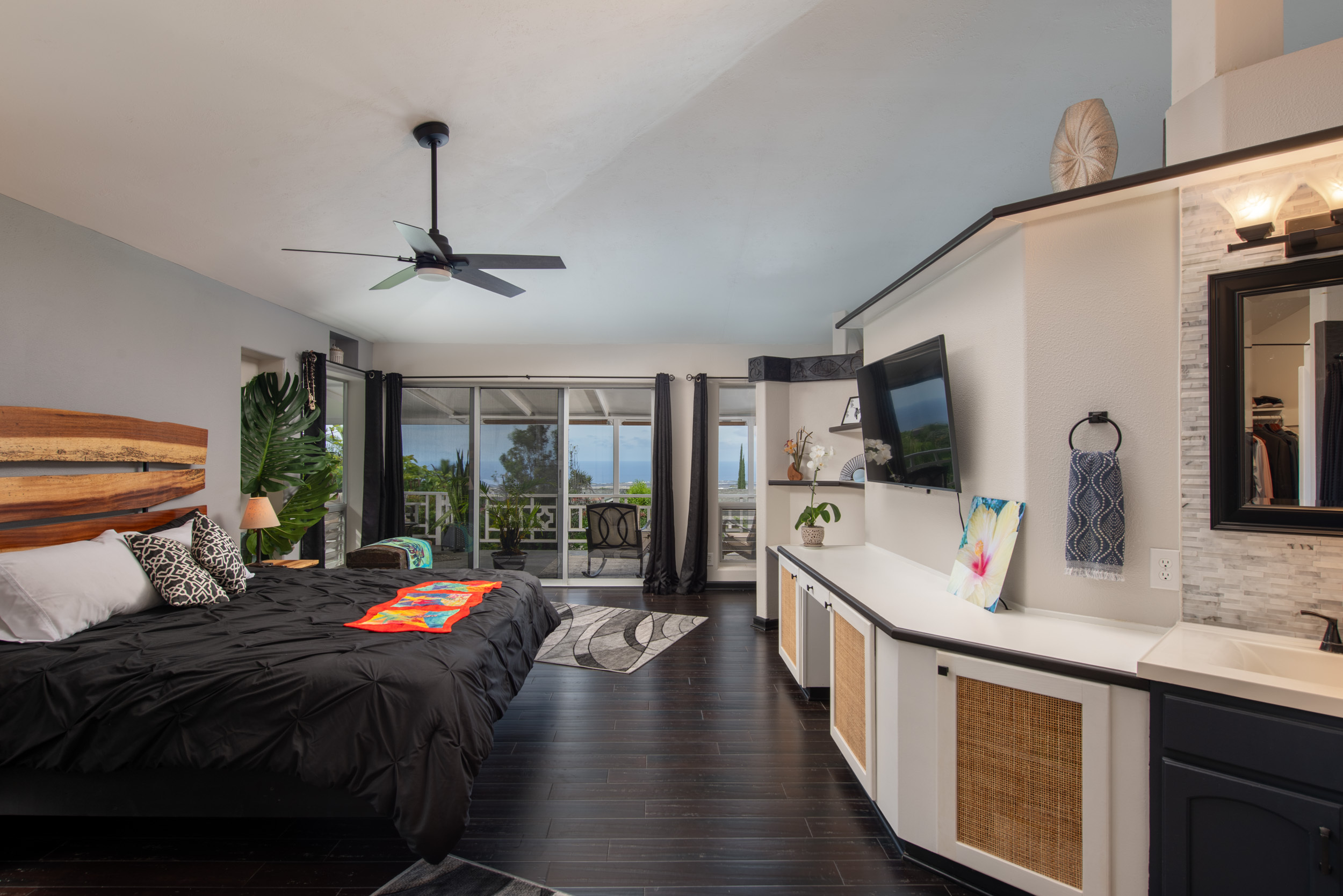 Get out your checklist. Spectacular coastline views? Yes. A spacious, unique floor plan? Absolutely. A separate, private guest space with income potential? Check. And that’s just the beginning. This home captures the essence of Hawai?i living, with an emphasis on indoor-outdoor flow and everyday comfort. Expansive covered lanais on both the upper and lower levels invite you to relax, entertain, and enjoy cooling trade winds and ocean views year-round. A distinctive central cupola was thoughtfully designed to enhance natural airflow throughout the main living areas. The kitchen sits at the heart of the home, offering ample space for cooking, gathering, and entertaining. The main level upstairs features three bedrooms and two full baths, providing a functional and comfortable layout for daily living. Downstairs, a separate guest room/ohana offers its own private entrance and parking. This space includes one bedroom, a full bath, and a kitchenette, ideal for extended guests, multi-generational living, or potential rental income. Construction is a standout feature of this property. The steel-framed structure and a new roof installed in June 2023 contribute to strong inspection appeal. The home has been well maintained by the current owners, and a pre-listing inspection has already been completed, offering added peace of mind. The property is ideally located near major shopping, dining, schools, beaches, and Kona International Airport, blending privacy with everyday convenience. Step outside and explore your own tropical retreat, complete with mature fruit trees including mango, starfruit, papaya, banana, and more. Lush tropical landscaping and a variety of flowering plants create a vibrant garden setting. An outdoor workshop area provides space for hobbies and projects while still enjoying the island lifestyle. Furnishings are negotiable, making this an easy, move-in-ready opportunity.