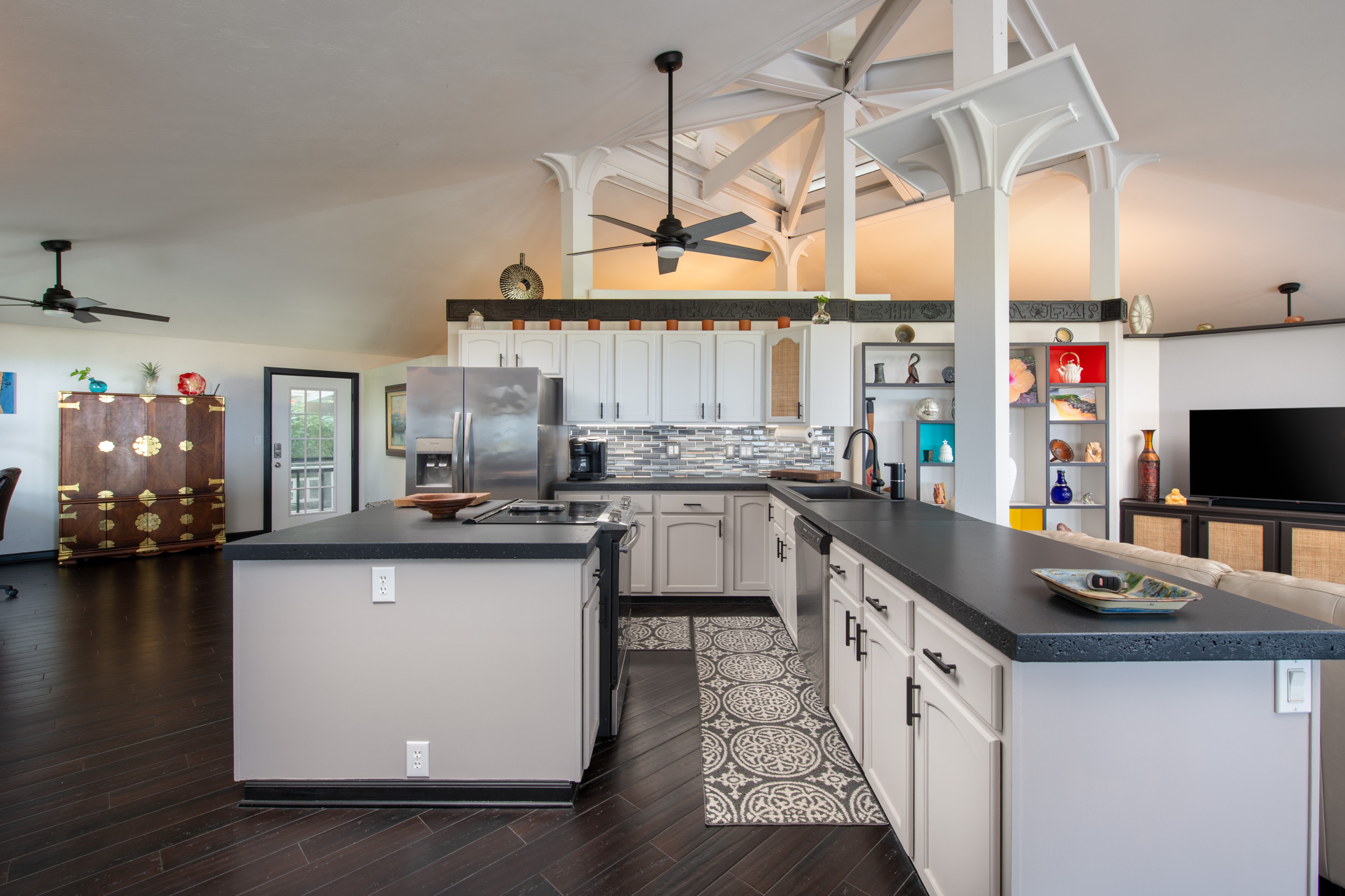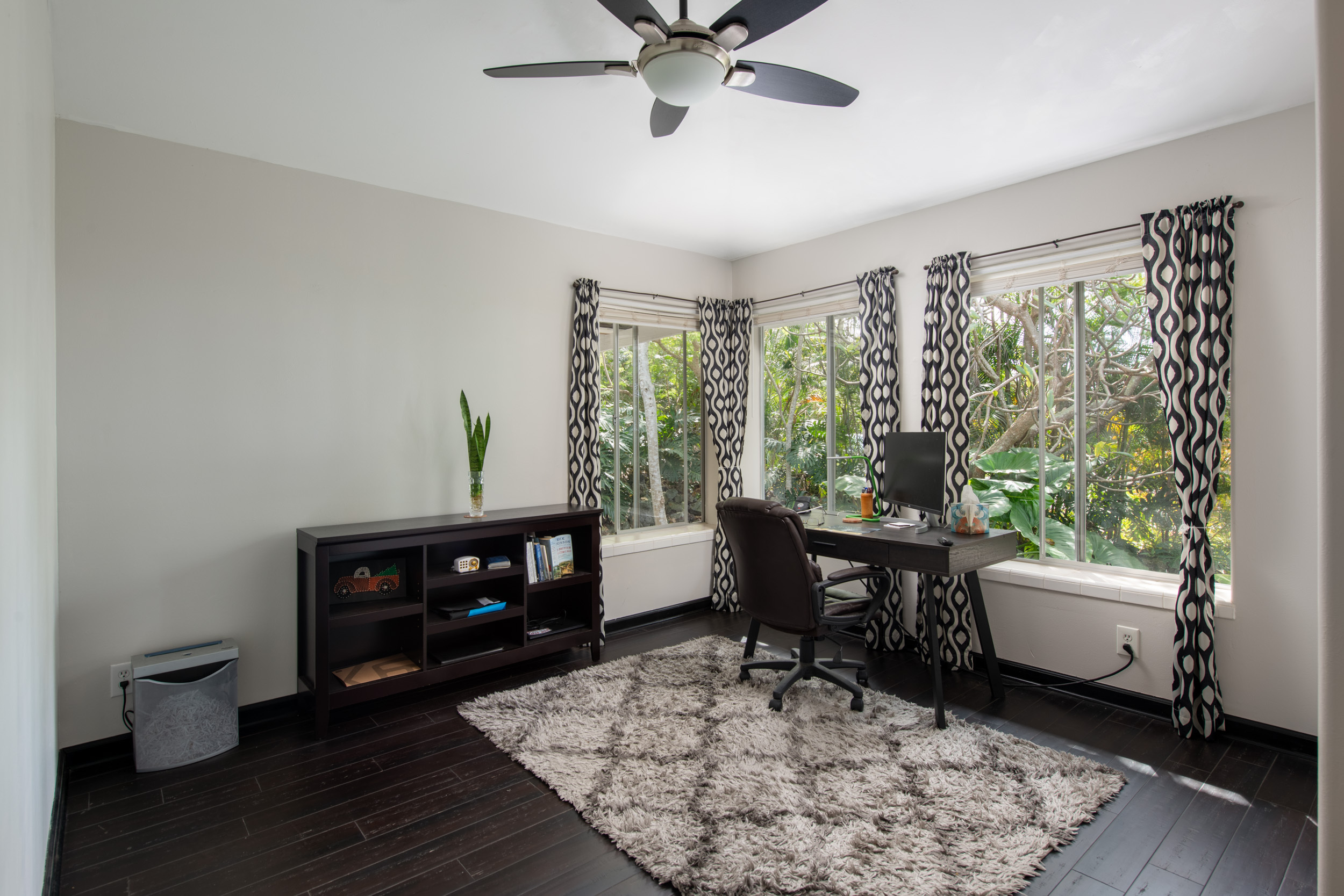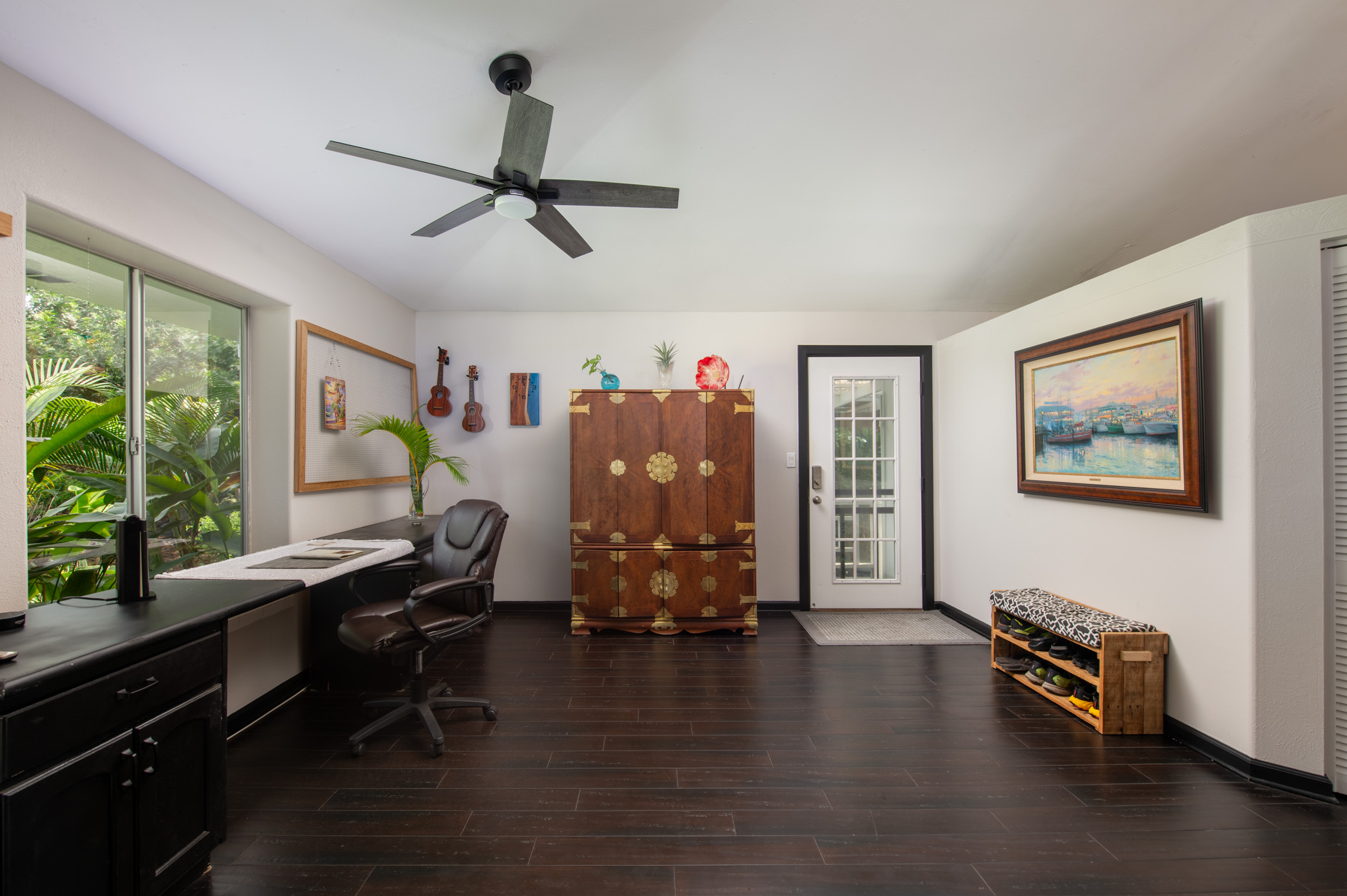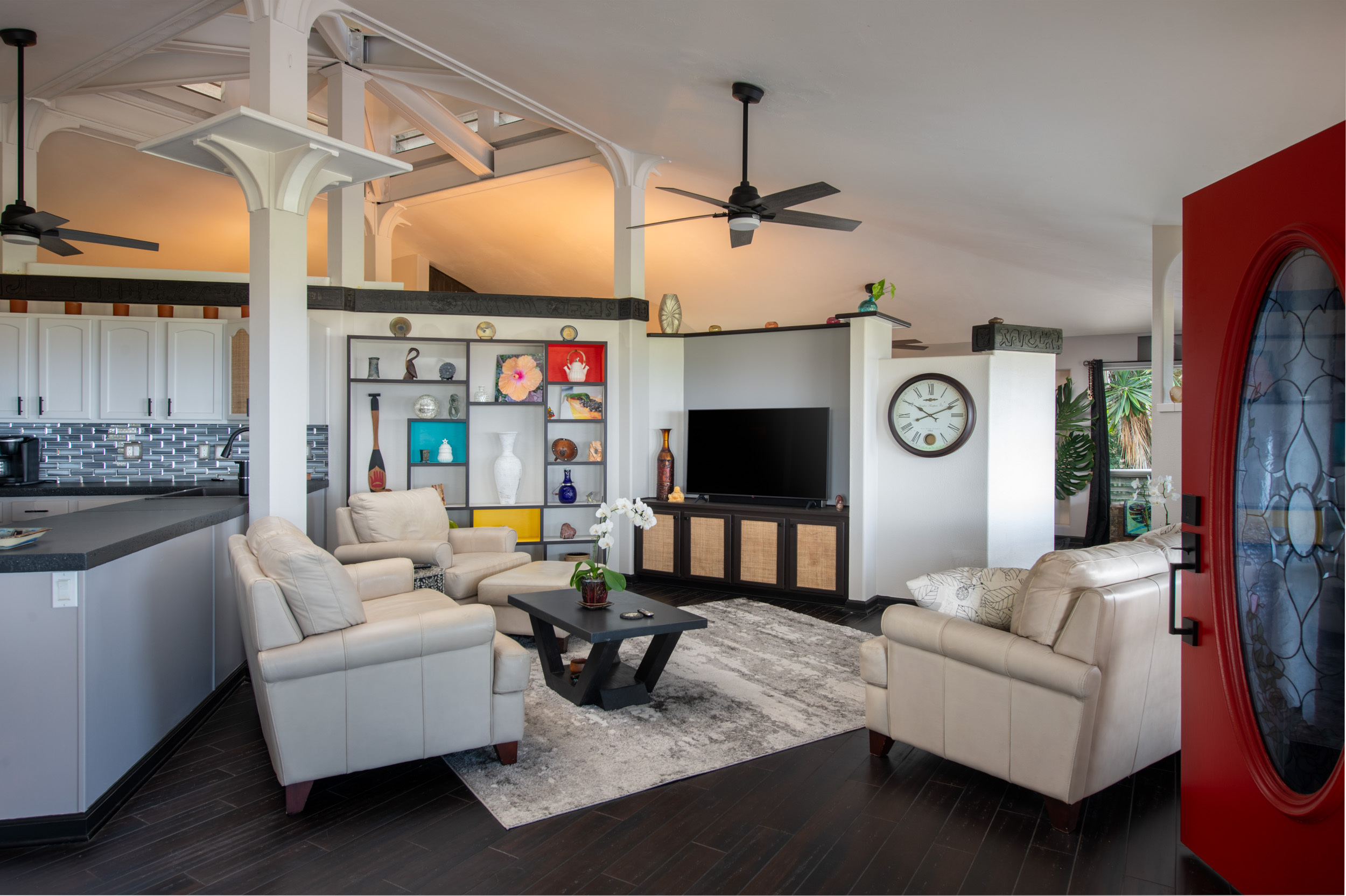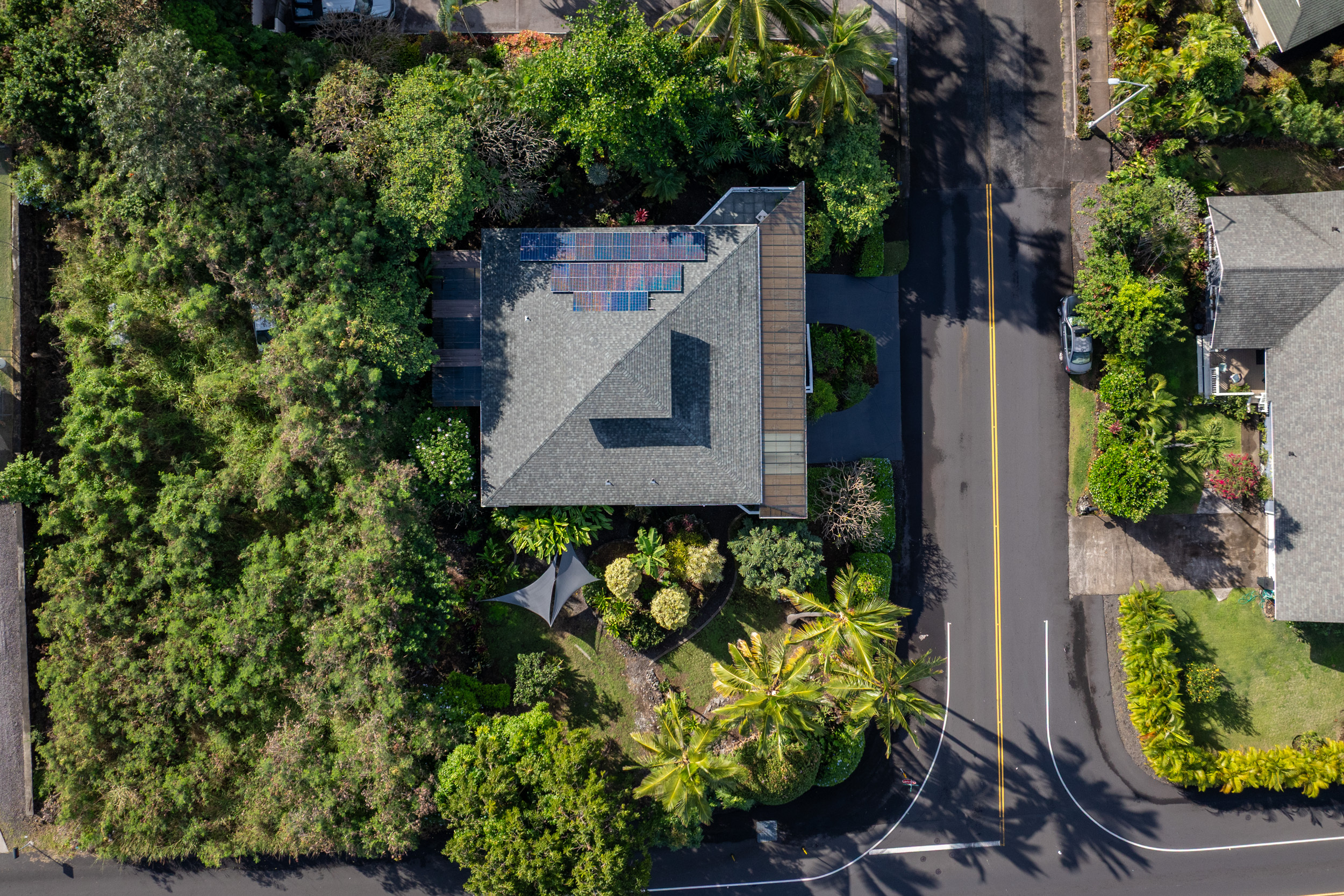Get out your checklist. Spectacular coastline views? Yes. A spacious, unique floor plan? Absolutely. A separate, private guest space with income potential? Check. And that’s just the beginning. This home captures the essence of Hawai?i living, with an emphasis on indoor-outdoor flow and everyday comfort. Expansive covered lanais on both the upper and lower levels invite you to relax, entertain, and enjoy cooling trade winds and ocean views year-round. A distinctive central cupola was thoughtfully designed to enhance natural airflow throughout the main living areas. The kitchen sits at the heart of the home, offering ample space for cooking, gathering, and entertaining. The main level upstairs features three bedrooms and two full baths, providing a functional and comfortable layout for daily living. Downstairs, a separate guest room/ohana offers its own private entrance and parking. This space includes one bedroom, a full bath, and a kitchenette, ideal for extended guests, multi-generational living, or potential rental income. Construction is a standout feature of this property. The steel-framed structure and a new roof installed in June 2023 contribute to strong inspection appeal. The home has been well maintained by the current owners, and a pre-listing inspection has already been completed, offering added peace of mind. The property is ideally located near major shopping, dining, schools, beaches, and Kona International Airport, blending privacy with everyday convenience. Step outside and explore your own tropical retreat, complete with mature fruit trees including mango, starfruit, papaya, banana, and more. Lush tropical landscaping and a variety of flowering plants create a vibrant garden setting. An outdoor workshop area provides space for hobbies and projects while still enjoying the island lifestyle. Furnishings are negotiable, making this an easy, move-in-ready opportunity.