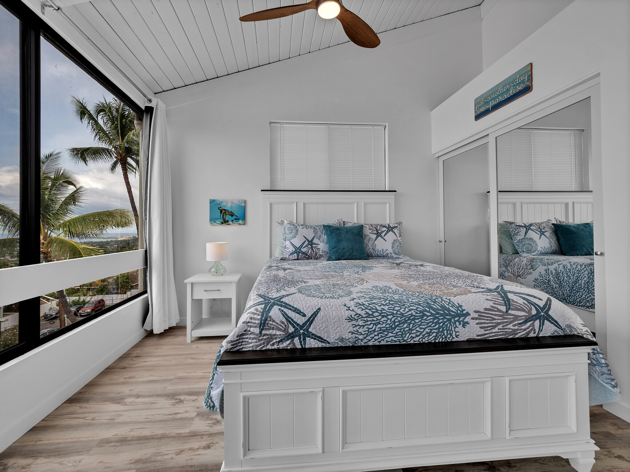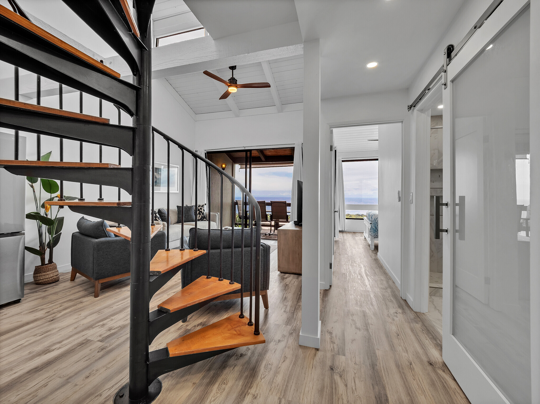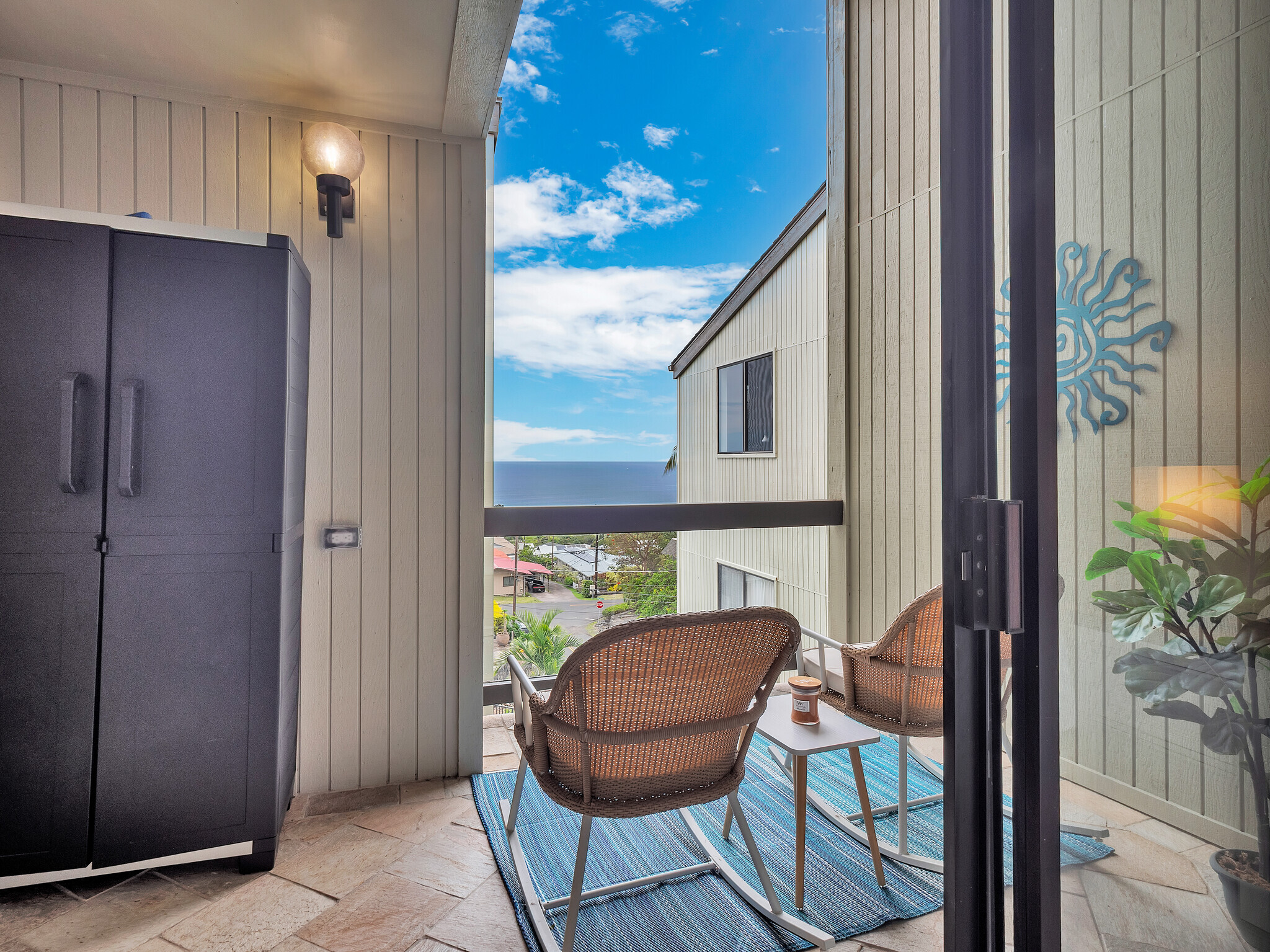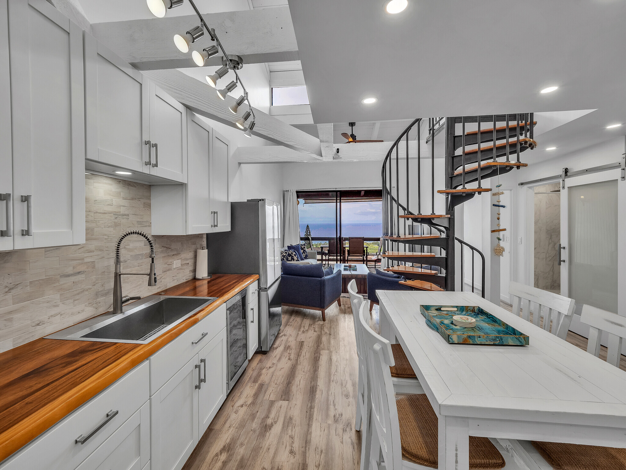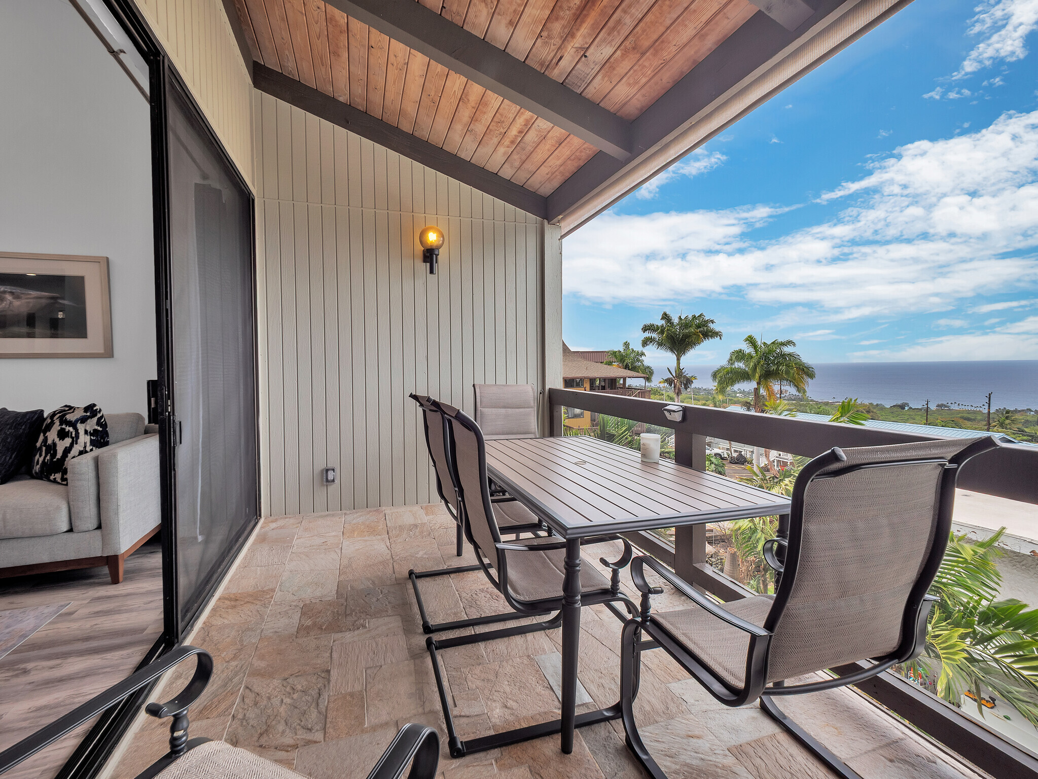 Enjoy spectacular ocean views from this beautifully renovated, Fully Furnished turnkey contemporary 3 bedroom, 3 bath upper floor condominium in the Maluhia Kai complex, featuring two private lanais and a pool. The main level offers two bedrooms and two bathrooms, along with a sleek, modern design and a spiral staircase leading to the third bedroom and bathroom above. With close proximity to town and all that Kailua-Kona has to offer, this unit also includes two deeded parking stalls. An exceptional opportunity for those seeking a stylish, move in ready home and spacious feel with stunning ocean views. Check out the video link: https://player.vimeo.com/video/1179057074