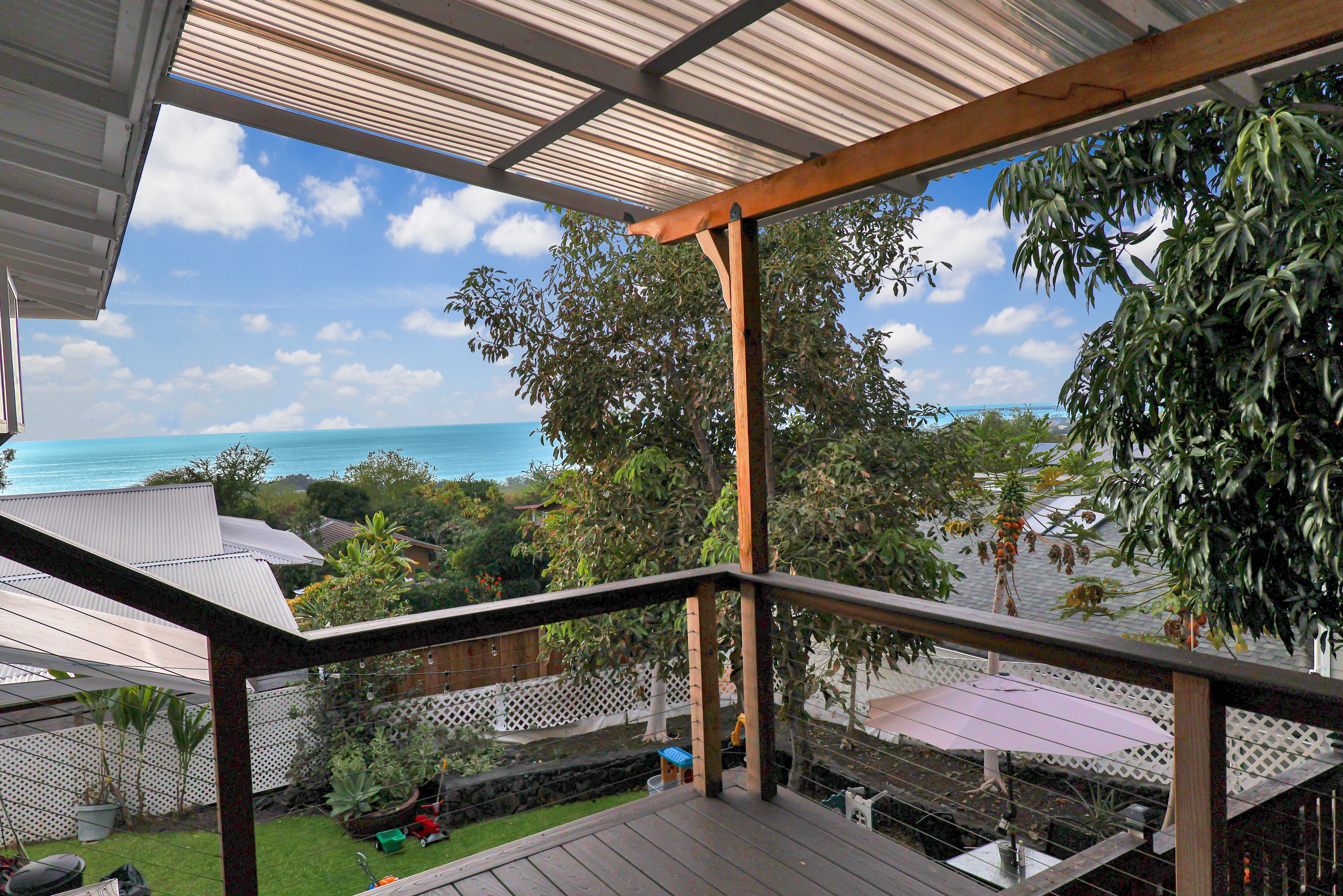 Exceptional home in a centrally located Kailua Kona neighborhood with incredible ocean views. This property offers impressive flexibility with three separate living areas, each featuring its own private entrance, full kitchen, bathroom, and in-unit washer and dryer. This is an ideal setup for generating multiple income streams, creating a hosted short-term rental, or living on-site while offsetting expenses with rental revenue. A 39 panel PV system with grandfathered net metering keeps electric costs low, and an EV charging station adds valuable convenience for occupants.