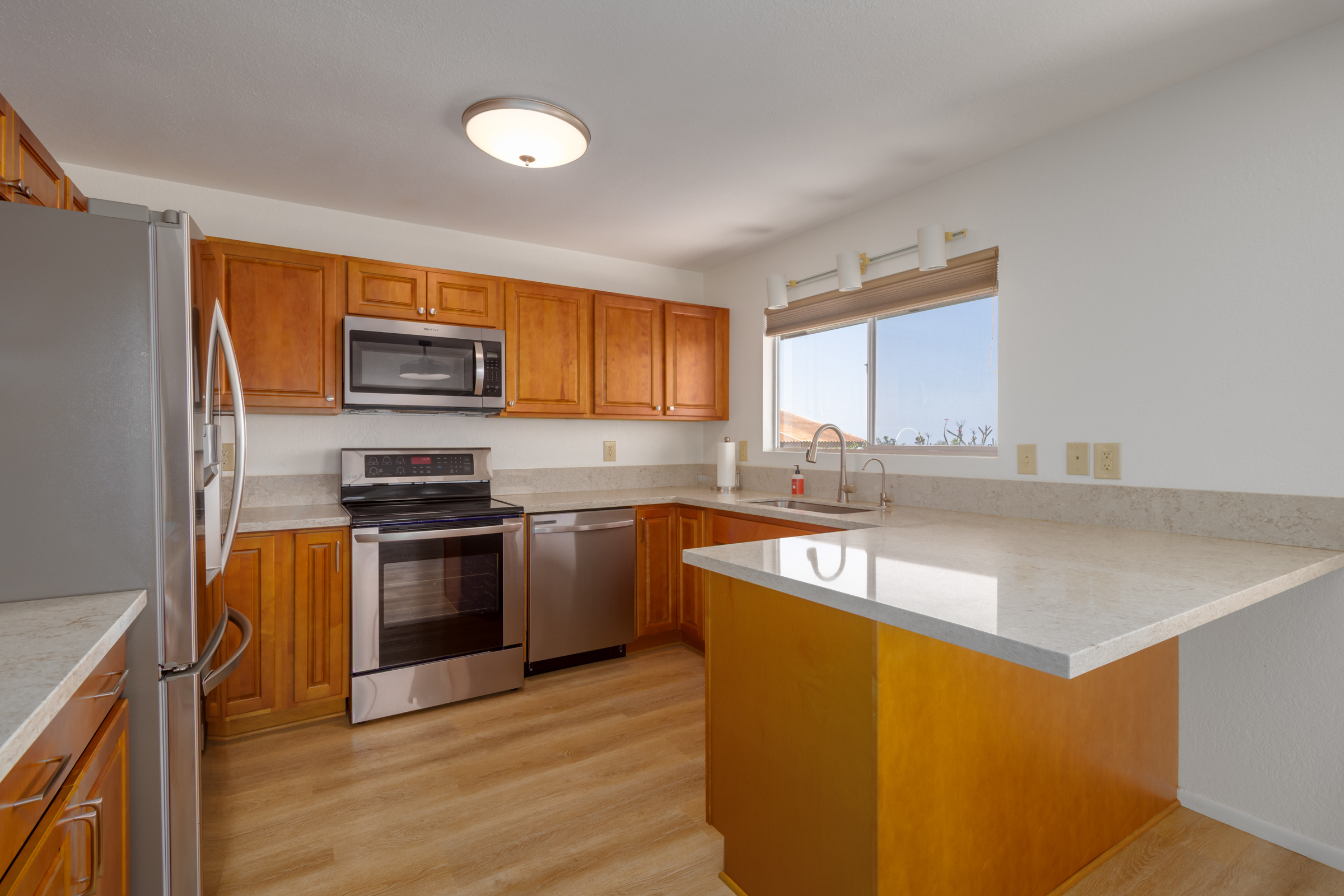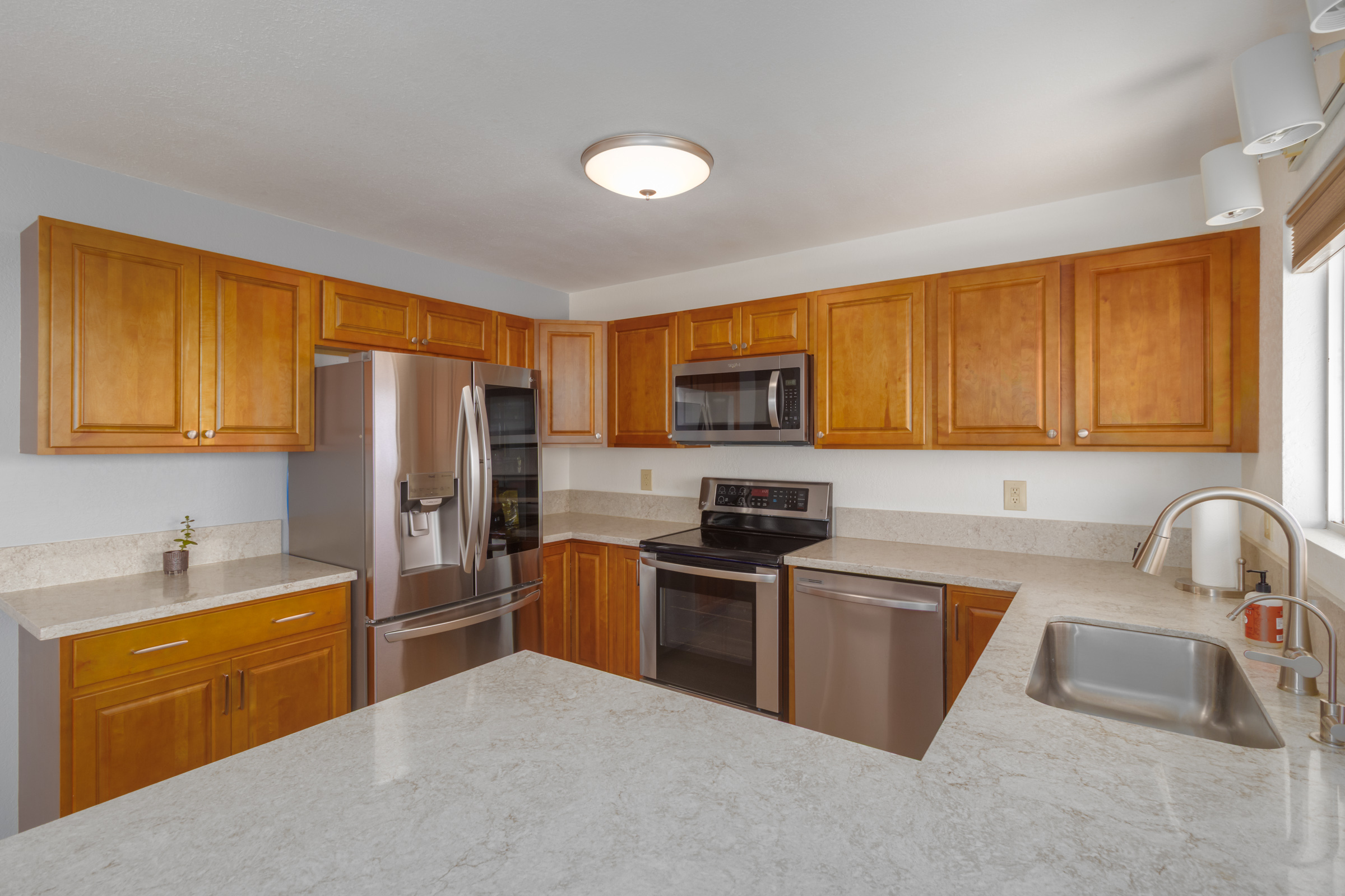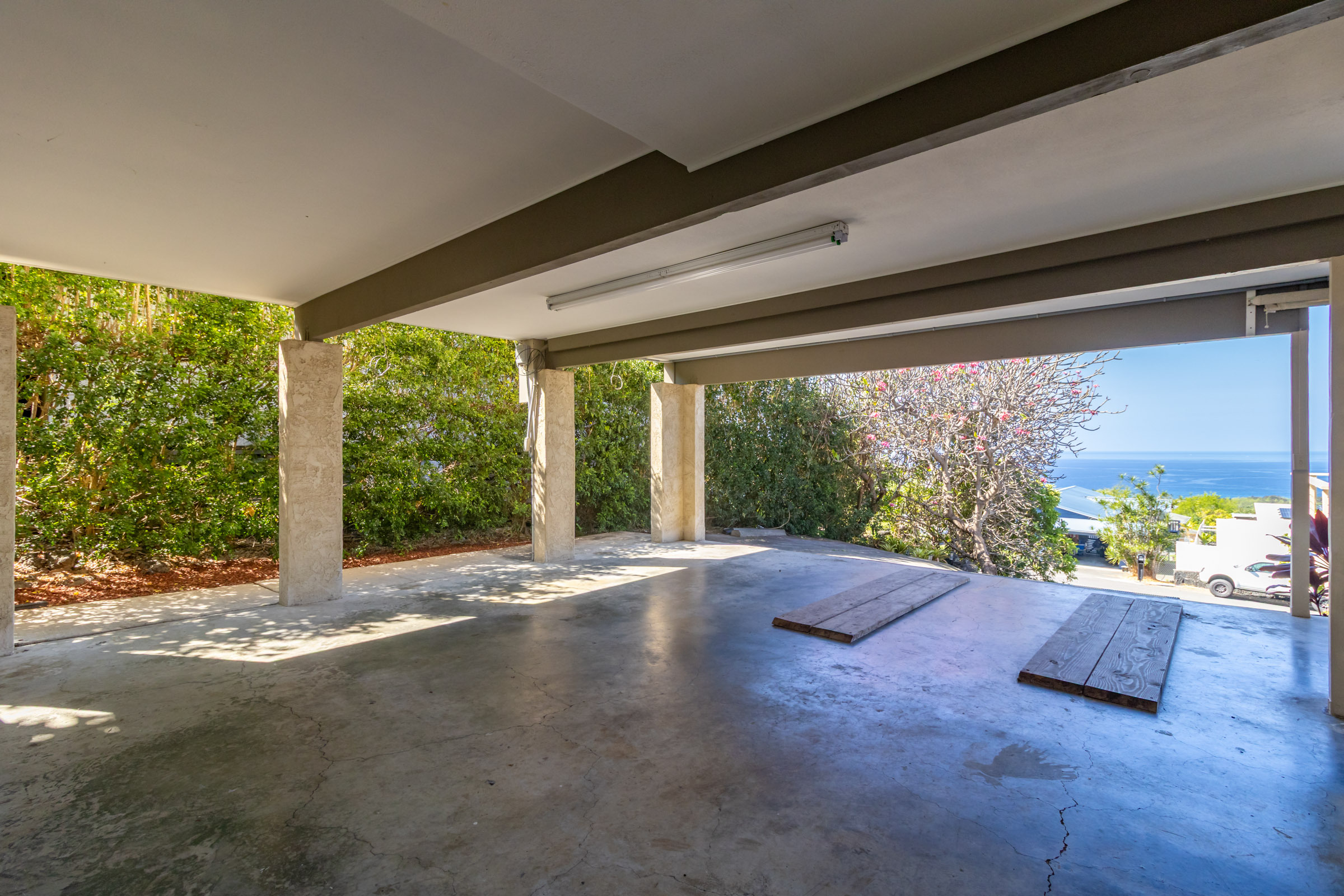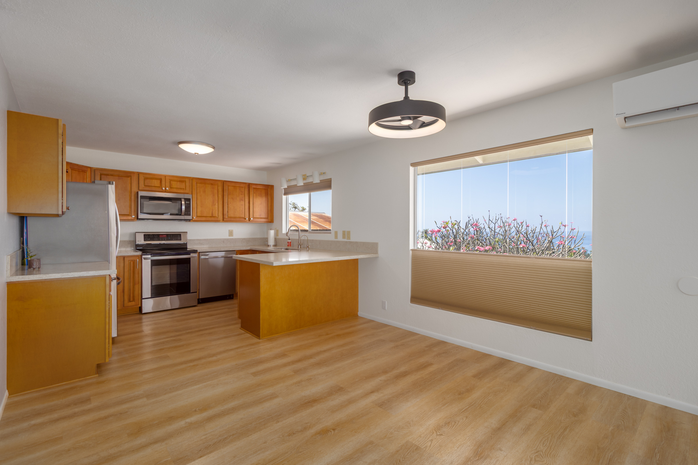 Discover this serene oasis in this this thoughtfully upgraded home located in central Sea View Circle. Spanning 1,147 square feet, the Leialoha home boasts 3 bedrooms and 2 bathrooms, providing ample space for both relaxation and entertainment. Offering expansive ocean and sunset views and a multitude of outdoor areas for fruit picking, gardening and entertaining fun with friends and family. Experience 77-6507 Leialoha Street https://player.vimeo.com/video/1169395566 Upon entering, you are greeted by the open floor plan with generous living area showcasing expansive panoramic ocean and sunset views. The kitchen is a modern masterpiece, featuring newer appliances, quartz counter tops in kitchen and bath with soft close cabinets. There's ample counter space, perfect for prepping and entertaining. Tying the modern aesthetic throughout are easy maintenance waterproof luxury vinyl plank flooring. The ground level features a modern, 1 bedroom Ohana Suite that offers an opportunity for additional living quarters, multigenerational housing or as a rental. Recently upgraded it includes a kitchenette sink and counter, new shower, toilet, washer and dryer, and utility sink. The lushly landscaped grounds invite you to unwind in the charming garden oasis. Lounge on the deck, soak in the sun or dine alfresco while taking in the mesmerizing sunset seascape. The landscaped grounds have retaining rock walls and established hedges and fruit trees - two varieties of mango, avocado, tangerine, orange, and a star fruit. All within reach and close proximity to all the conveniences of Kailua-Kona shopping, schools, dining and beaches.
