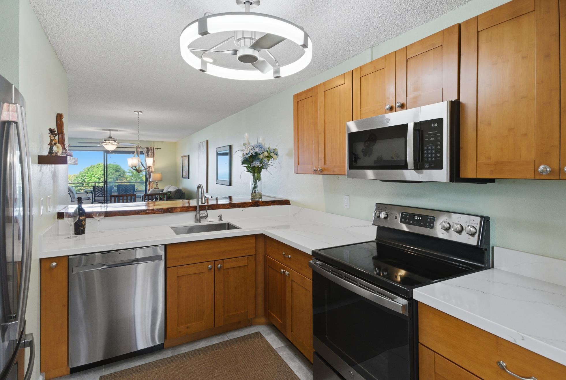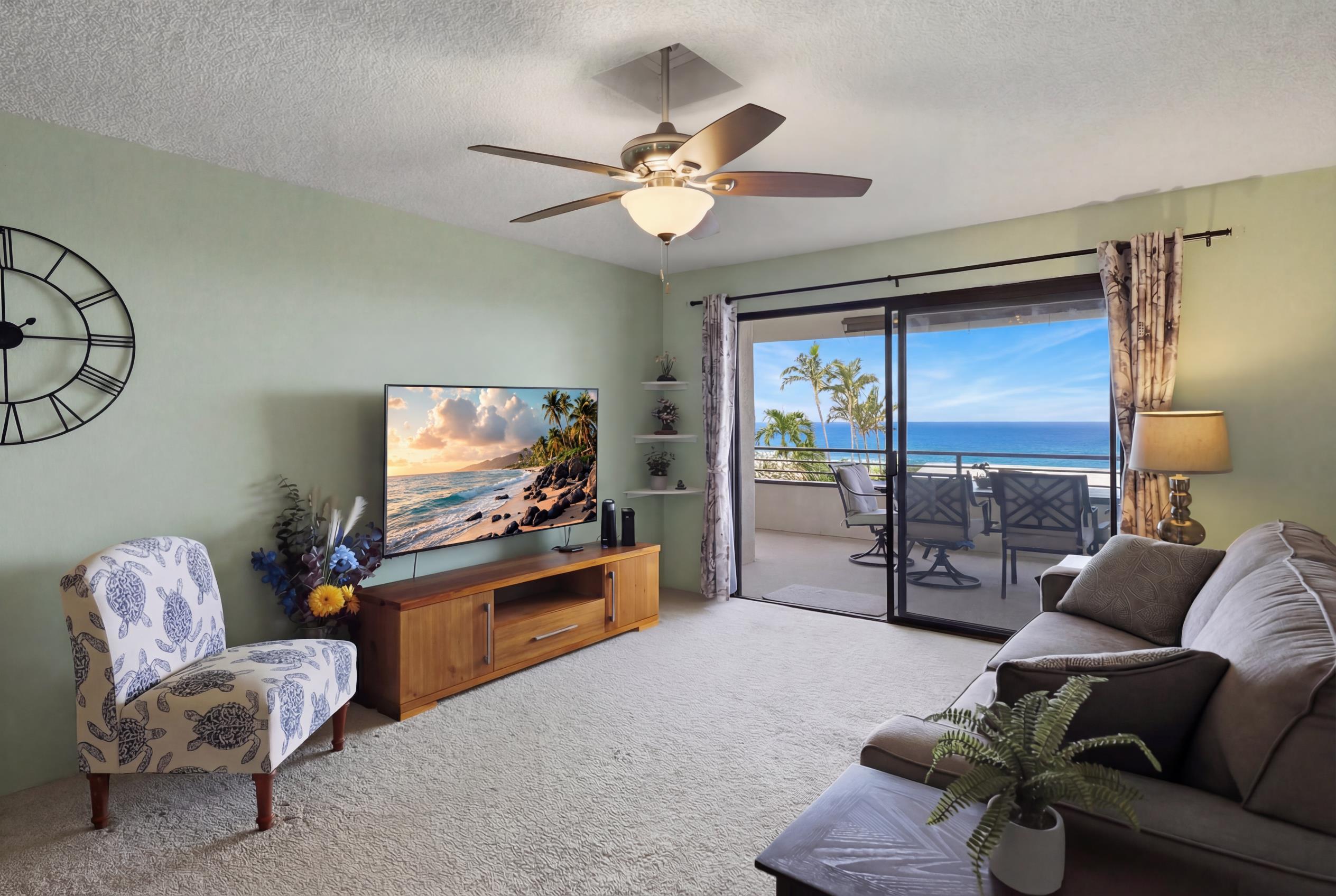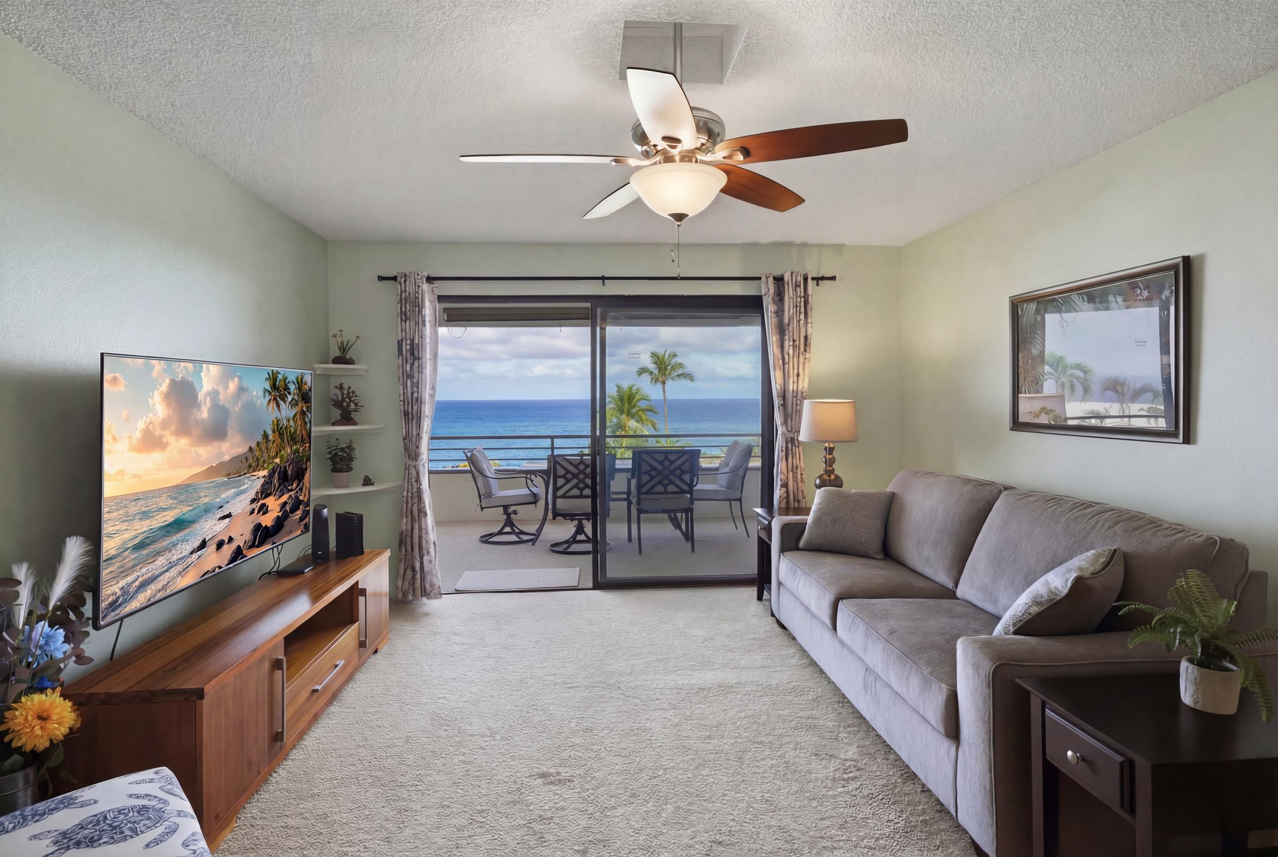 Spacious and immaculately maintained, this 2-bedroom, 2-bath condo is move-in ready and offered turnkey furnished. Enjoy beautiful ocean views from the large covered lanais, with access from both the living room and the primary bedroom–perfect for relaxing and taking in Kona’s tropical breezes. The bright, open interior features quartz countertops and newer stainless steel appliances and cabinetry in the kitchen, creating a fresh and modern feel. Brand new couch in living room. Comfortable living shows throughout this well-cared-for home, making it an excellent full-time residence, vacation getaway, or investment opportunity. Priced to sell, this condo offers exceptional value along with low-maintenance island living. HOA fees include common area maintenance, water, sewer, and trash service, cable/internet. Residents of the complex enjoy resort-style amenities including a swimming pool, hot tub, and BBQ area, providing the ideal setting to embrace your tropical island lifestyle. Pets allowed with board approval. Seller is offering a $5,000 credit for flooring with a full price offer. COME LIVE THE HAWAII DREAM!!