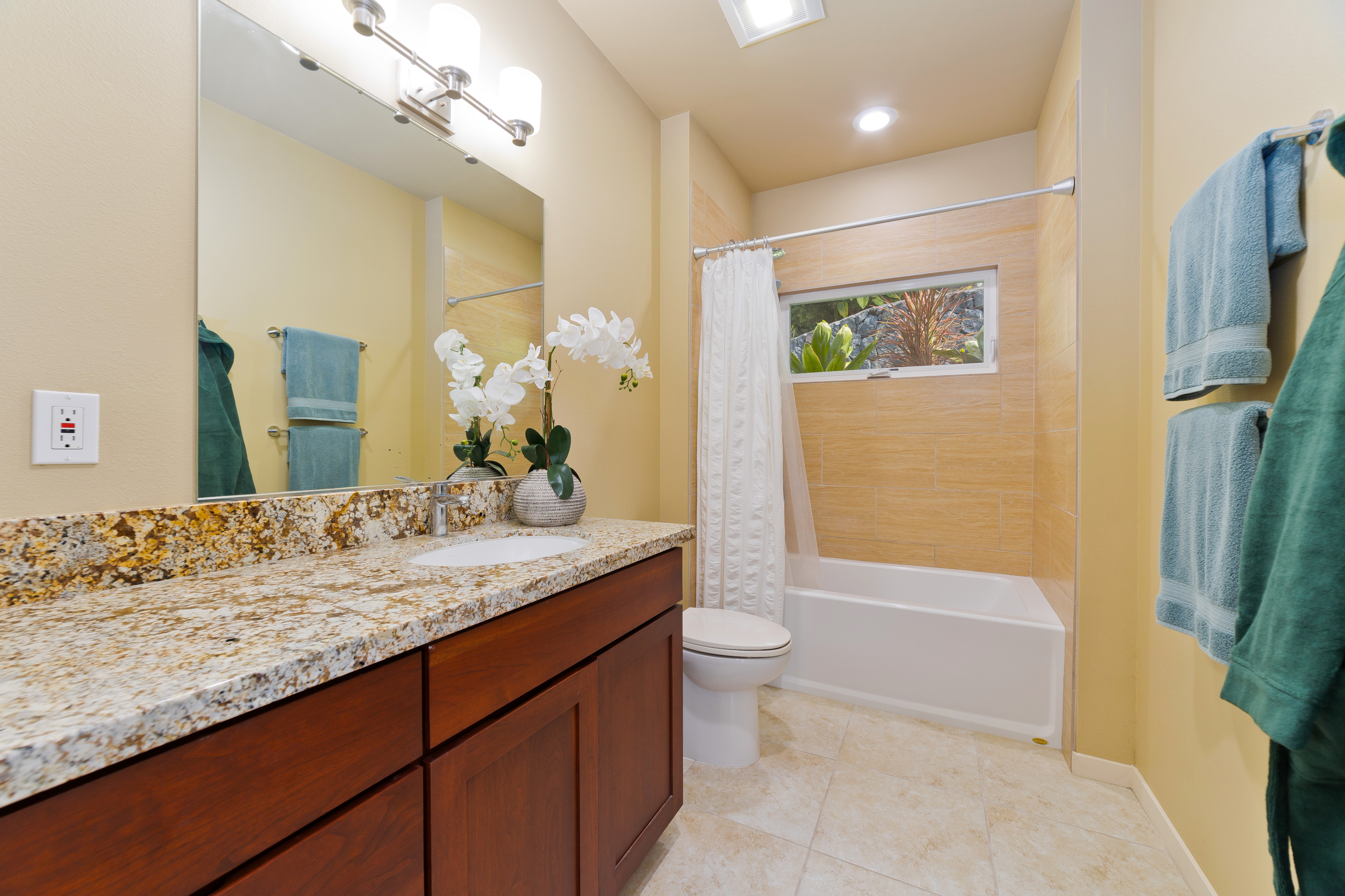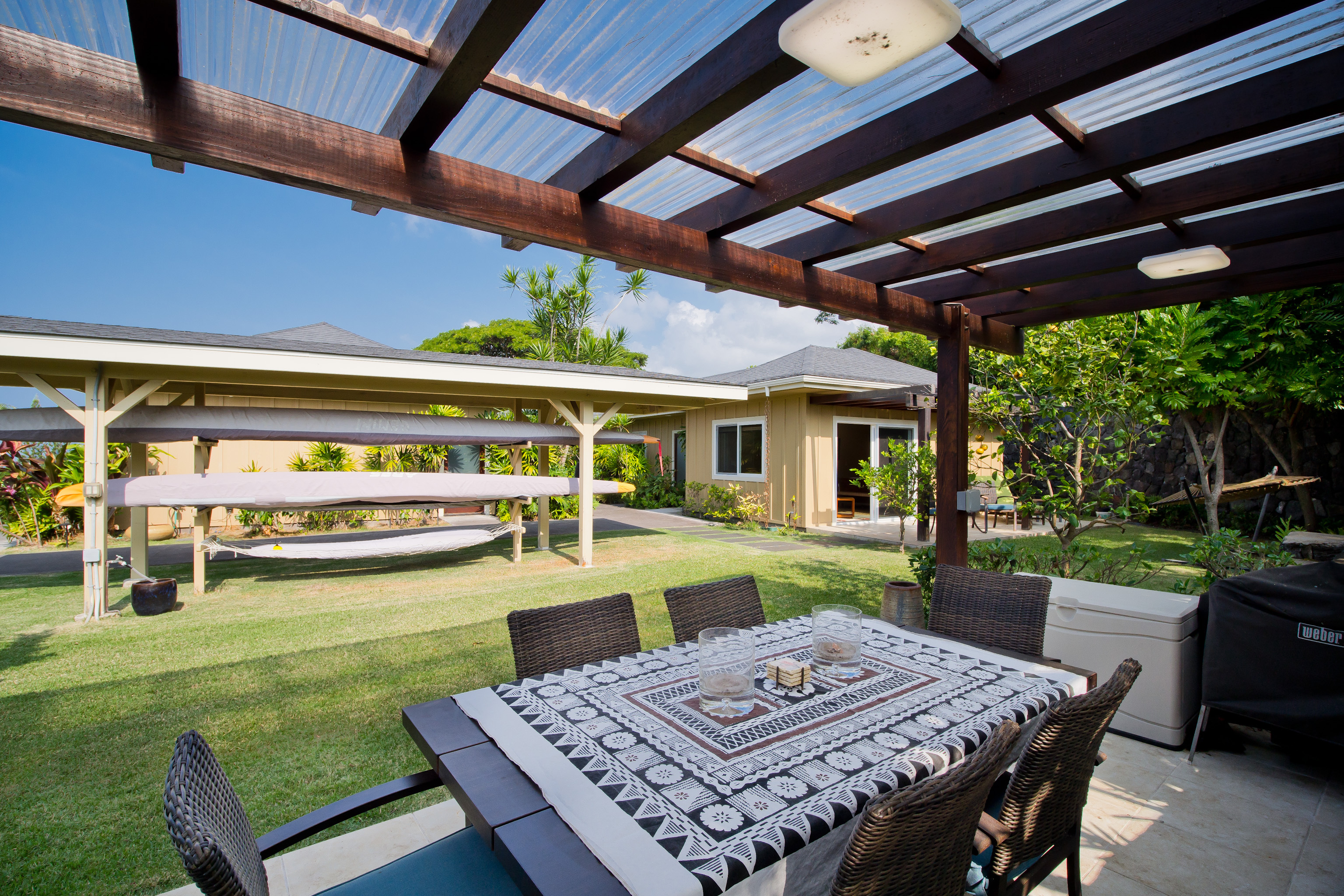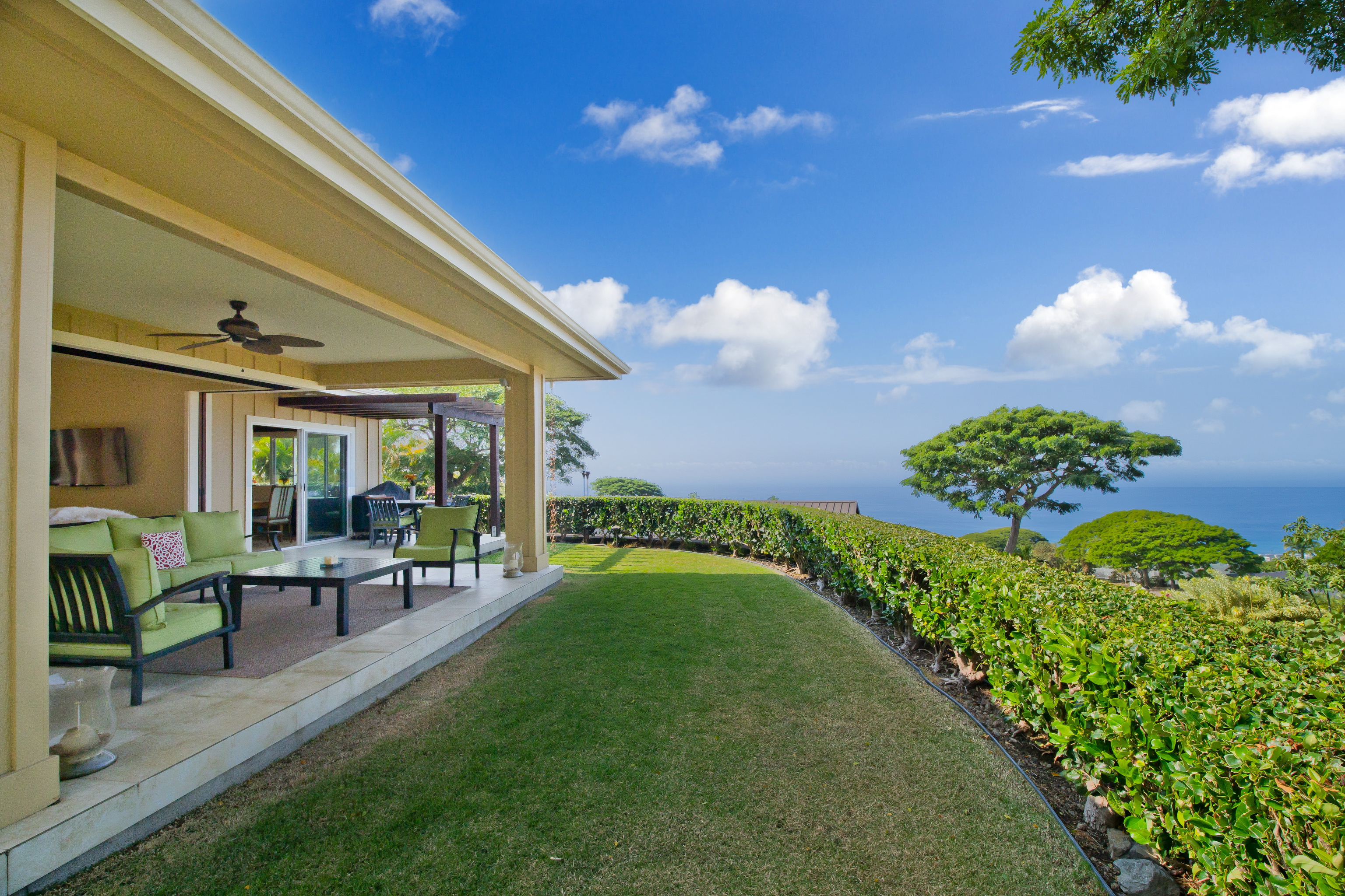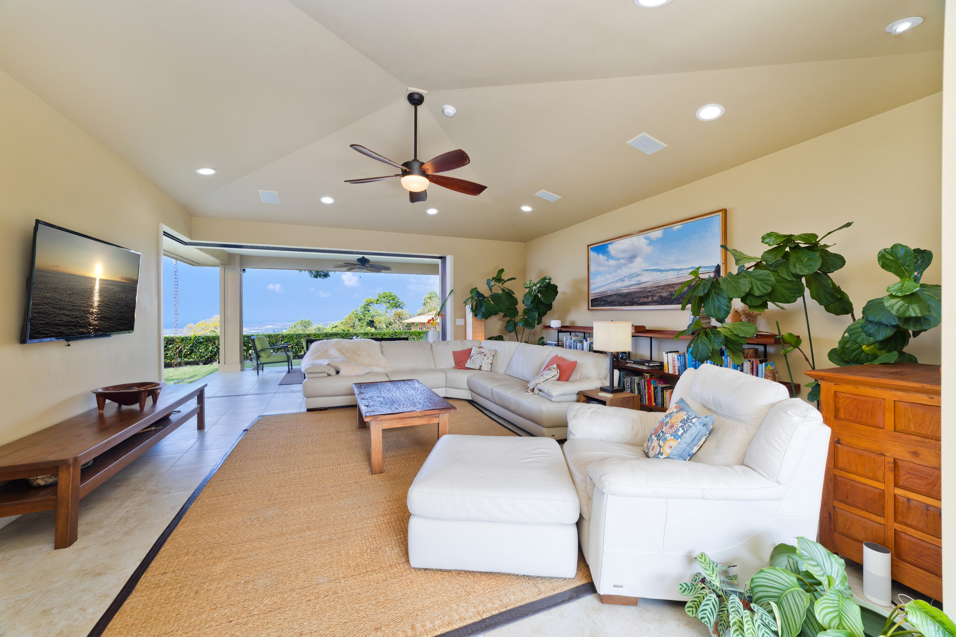 Positioned in one of Holualoa’s most desirable residential pockets, this custom-built residence delivers cool elevation comfort, exceptional quiet, and commanding ocean and coastline views across Kailua-Kona and the Pacific. The home sits on a wide, dead-end cul-de-sac within a thoughtfully designed subdivision featuring unusually broad streets and lack of through traffic–creating a sense of space and privacy rarely found in West Hawai?i. The layout offers 2,375 sf of interior living area with a total of 3,182 sf including covered outdoor spaces. Multiple lanais extend the living areas outdoors, making the home equally suited for relaxed daily living or entertaining. Three well-proportioned bedroom suites each include a private bath. One suite is configured with its own exterior access, providing excellent flexibility for guests, multi-generational living, or a dedicated workspace. A private steam room adds a wellness component, while the enclosed courtyard entry introduces a calm, sheltered transition into the home. Outdoor living is well supported with a covered dining and barbecue area and a nearby half bath for convenience. Storage and functionality are enhanced by a full 2-car garage and a separate covered canoe house designed for ocean gear, boards, and paddling equipment. The property includes a range of integrated systems such as motion-activated lighting, app-controlled irrigation, a monitored security system, and a built-in whole-home audio setup with an upgraded media configuration in the main living area. Mature landscaping surrounds the home, offering privacy and a distinctly tropical setting. The grounds feature established fruit trees including loquat, citrus varieties, grapefruit, and lychee, along with aromatic tropicals such as puakenikeni, gardenia, jasmine, and ginger. The location provides easy access without the winding approach roads often associated with Holualoa, while remaining just minutes from Kona town