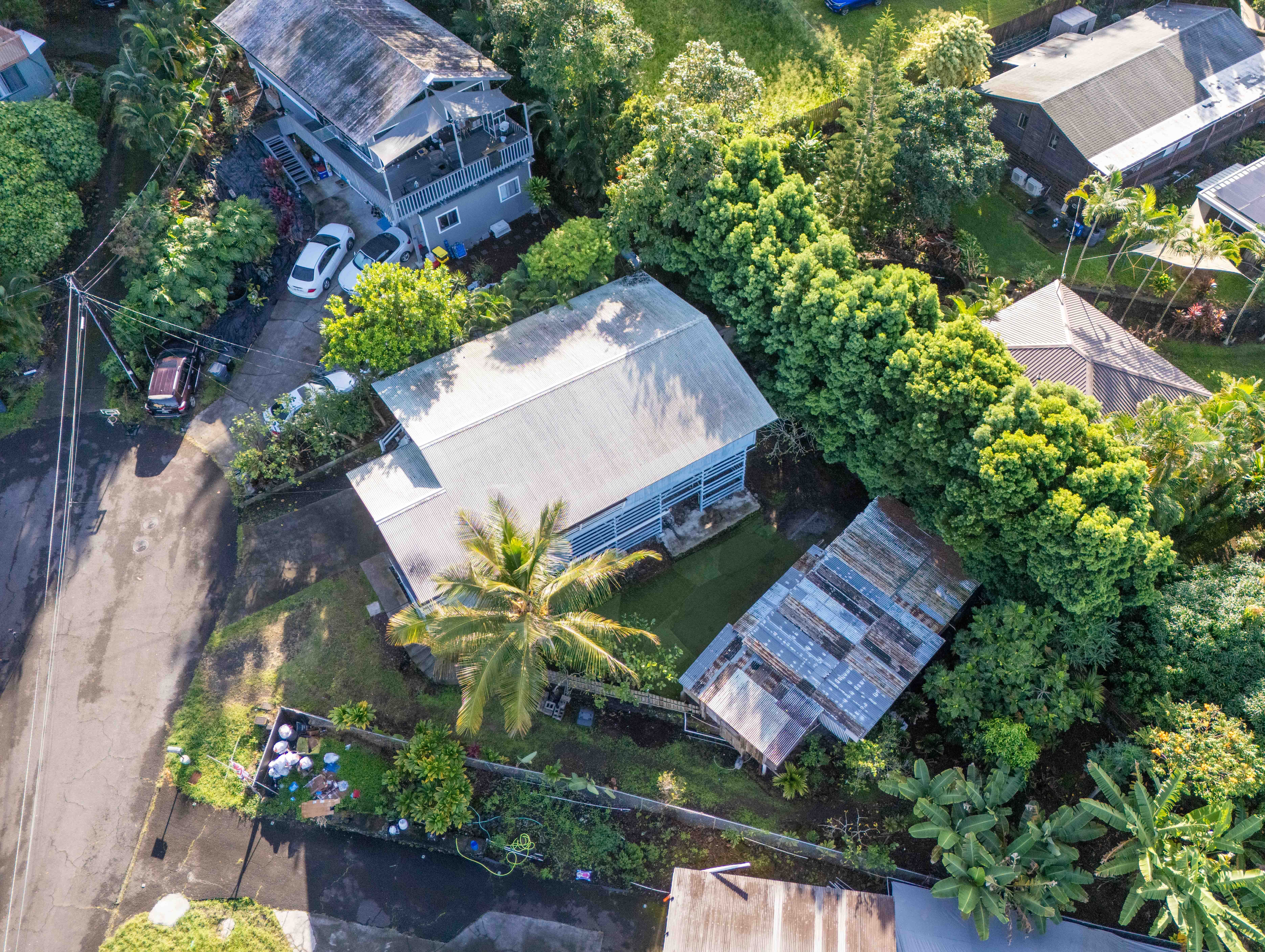 Investor Special conveniently located near the airport and nearby shops and town. This home features a two story construction featuring a brand new roof installed in 2021 and huge potential for possible additions. The house current layout is 3 bedroom 2 bathroom upstairs with an enclosed lanai which previously had beautiful ocean views. The bottom of the home has a single carport with a one bedroom one bathroom unit right beside it. Also found underneath the home is post and pier construction with at some parts 12ft high ceilings with endless possibilities to enclose and expand into additional living space or use as massive storage. In front of the building is an unpermitted structure that was used as a separate living quarters. Yard space is currently restricted by the unpermitted structure but there still is a beautiful garden located in front of it with mature trees such as mountain apple, coconut, avocado, mango, and more. Remove the unpermitted structure to gain more yard space or consider rebuilding the structure for other uses such as storage or living space. Home is located in a cul de sac making access to the property more easily accessible compared to houses located along the major roadways. This house needs some major TLC but when done right could become a great investment or wonderful home.
