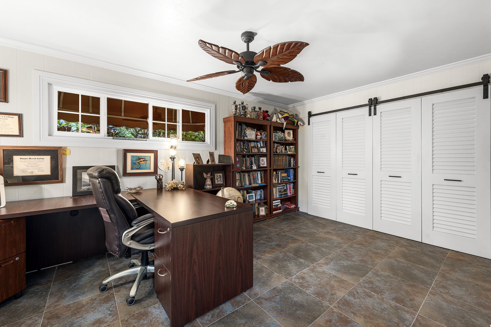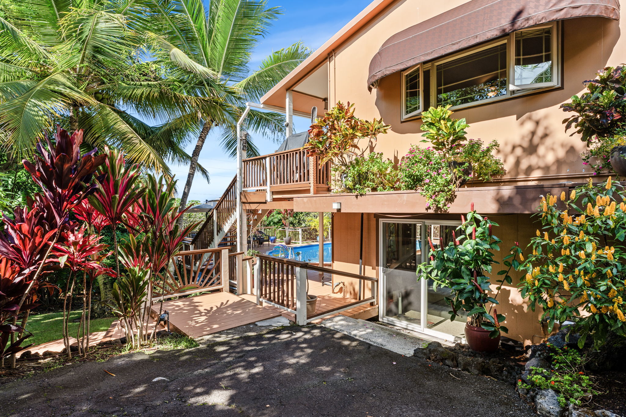 The main 3 bedroom, 2 bath home sits on a tropical oasis. Attention to detail shines throughout, including custom carved bannisters on front and back lanais. The home is being sold furnished.*