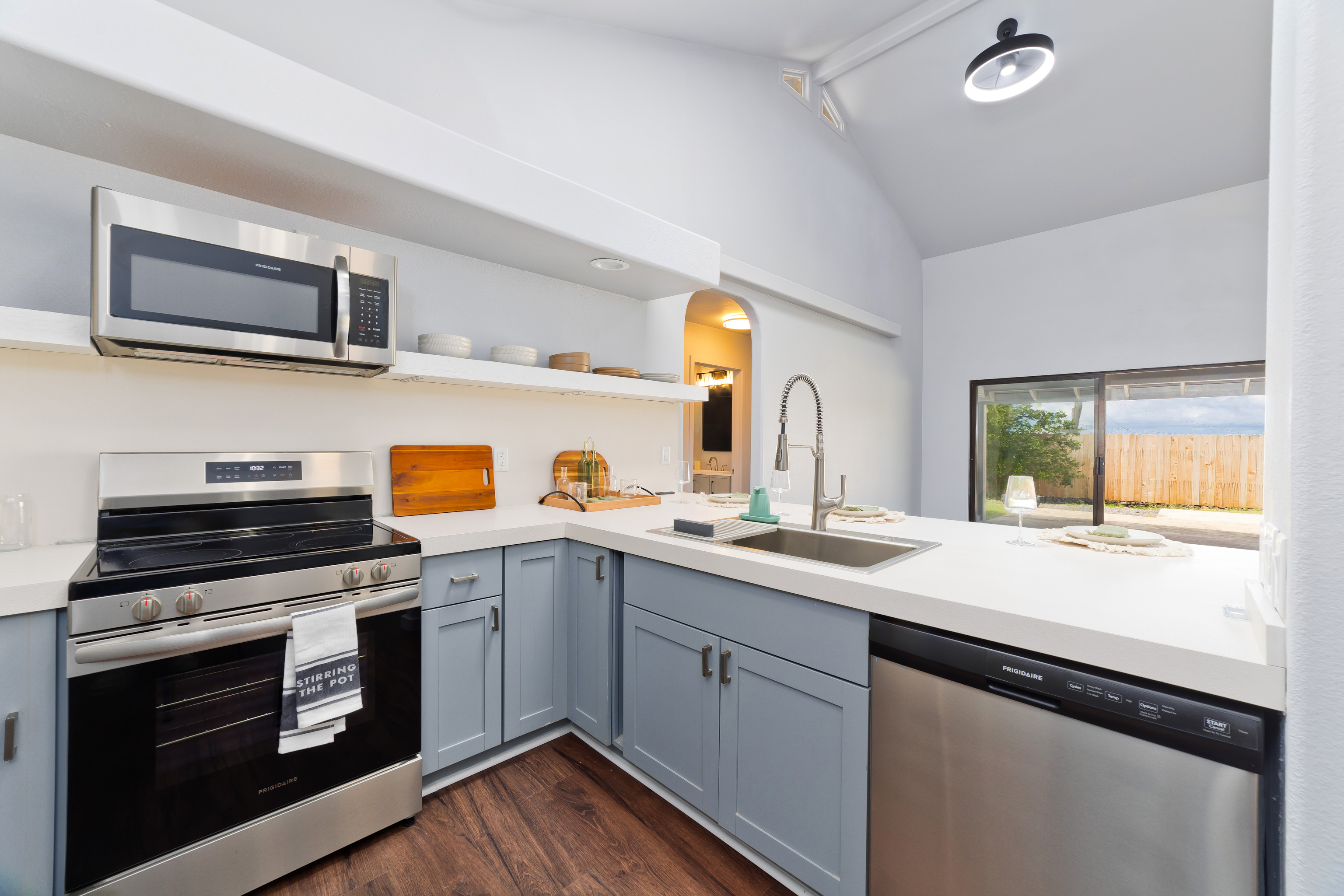 Step inside to an open-concept kitchen with updated countertops, cabinetry, and stainless-steel appliances. The spacious living area is bright and airy, ideal for relaxing or entertaining. Both bathrooms have been tastefully remodeled, and the home features new flooring, fresh paint, new roof with open valley flashing and thoughtful finishes throughout.