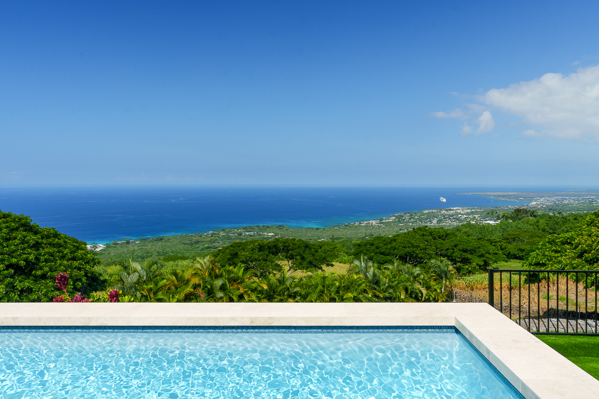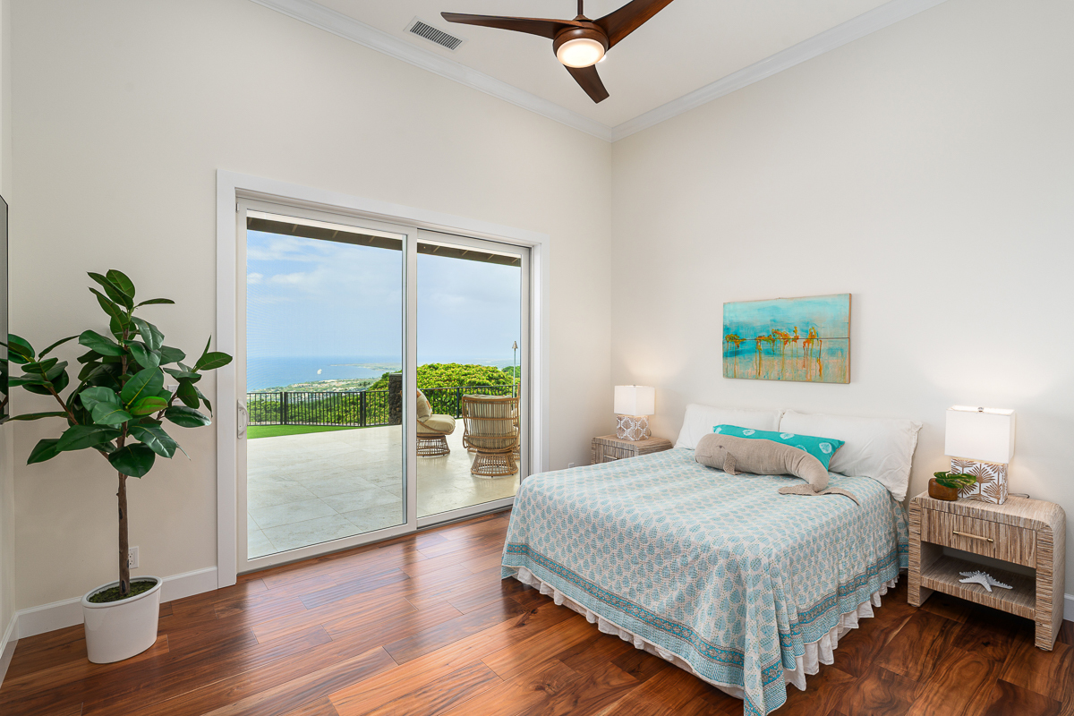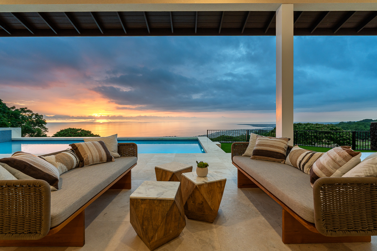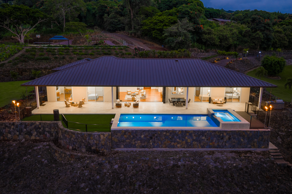 Perched above the Kona Coast in the exclusive Makalani Subdivision, this newly built custom estate offers panoramic, unobstructed views of the Kona Coast-perfect for whale watching, vivid sunsets, and front-row seats to fireworks on the 4th of July and NYE. Privately positioned on its own road, this home is the only residence on the street, ensuring unmatched seclusion and tranquility. Behind two private gates, this exceptional home spans 5,880 square feet under roof and showcases expert craftmanship. Recreating this level of design, materials, and extensive site work today would come at a much higher cost, making it a truly rare offering. Extensive grading has been completed to create two additional pads, with their own gated entry-offering flexibility for future expansion, potential guest dwellings, or agricultural use.