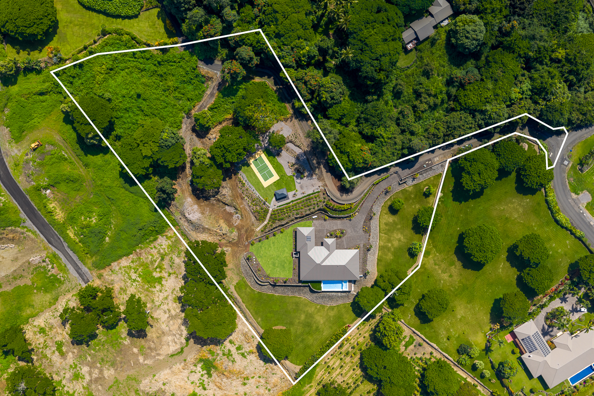 Perched above the Kona Coast in the exclusive Makalani Subdivision, this newly built custom estate offers panoramic, unobstructed views of the Kona Coast-perfect for whale watching, vivid sunsets, and front-row seats to fireworks on the 4th of July and NYE. Privately positioned on its own road, this home is the only residence on the street, ensuring unmatched seclusion and tranquility. Behind two private gates, this exceptional home spans 5,880 square feet under roof and showcases expert craftsmanship. Recreating this level of design, materials, and extensive site work today would come at a much higher cost, making it a truly rare offering. Extensive grading has been completed to create two additional pads, with their own gated entry-offering flexibility for future expansion, potential guest dwellings, or agricultural use.