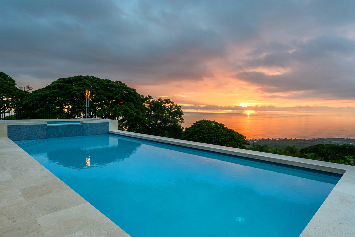 Outside you’ll enjoy a 22-person spa that waterfalls into the pool below, outdoor shower, and oversized 3-car garage. A private upper-level recreation area includes a pickleball/basketball court, fire pit and shaded pavilion-all framed by stunning ocean vistas. With rich tropical finishes like Acacia wood floors, Paracas Travertine tile, and handcrafted hardwood surfaces of Mango, Ohia, Monkey Pod, and Koa, this one-of-a-kind estate captures the very best of resort-style living on Hawai‘i Island.