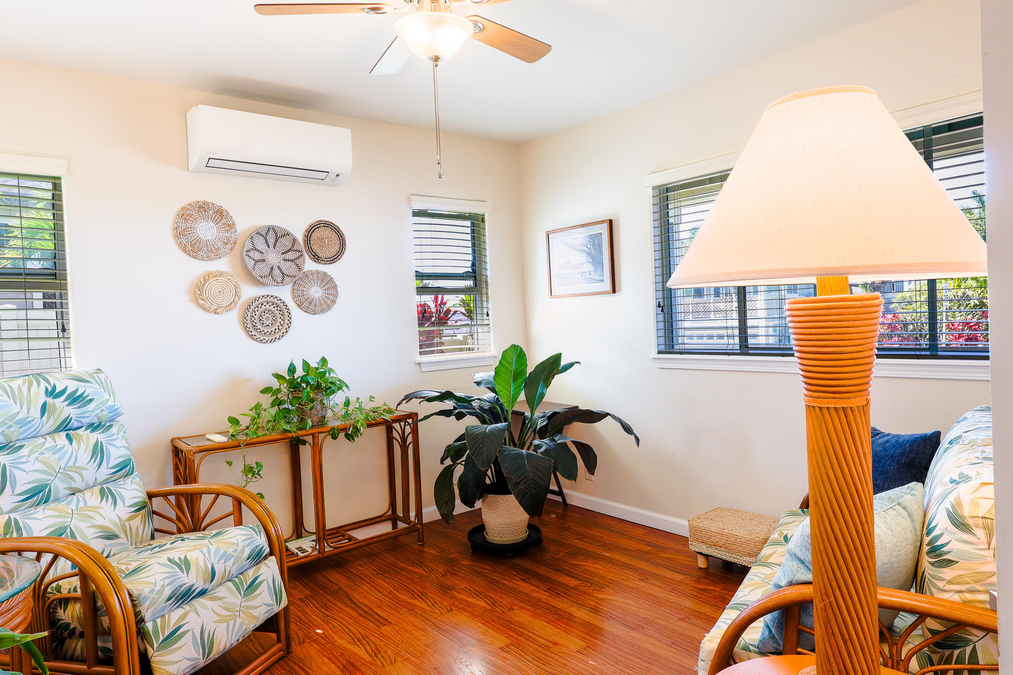 As you enter, you'll appreciate the ease of maintenance provided by the ceramic tile and laminate flooring throughout the home. Each bedroom and living area is equipped with split AC units for optimal comfort year-round.