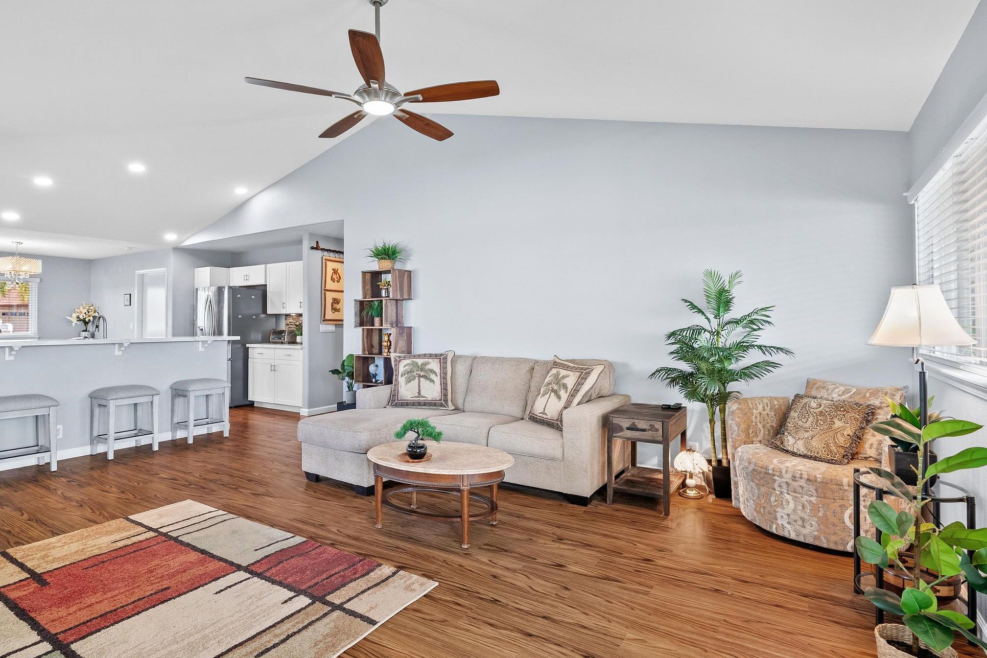 * Single-level Lokelani Floorplan with 3-bedrooms, 2-baths, and 2-car Garage with Attic Ladder.