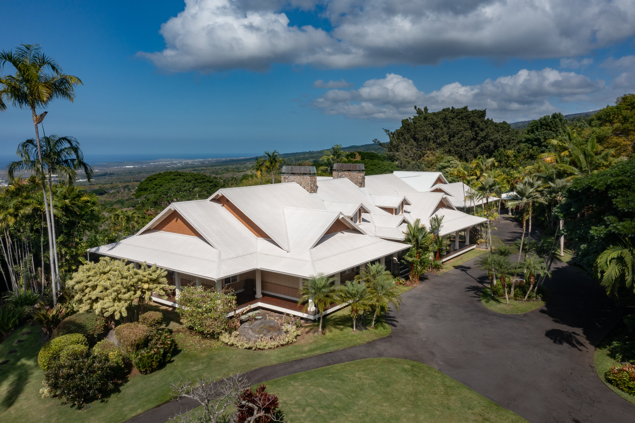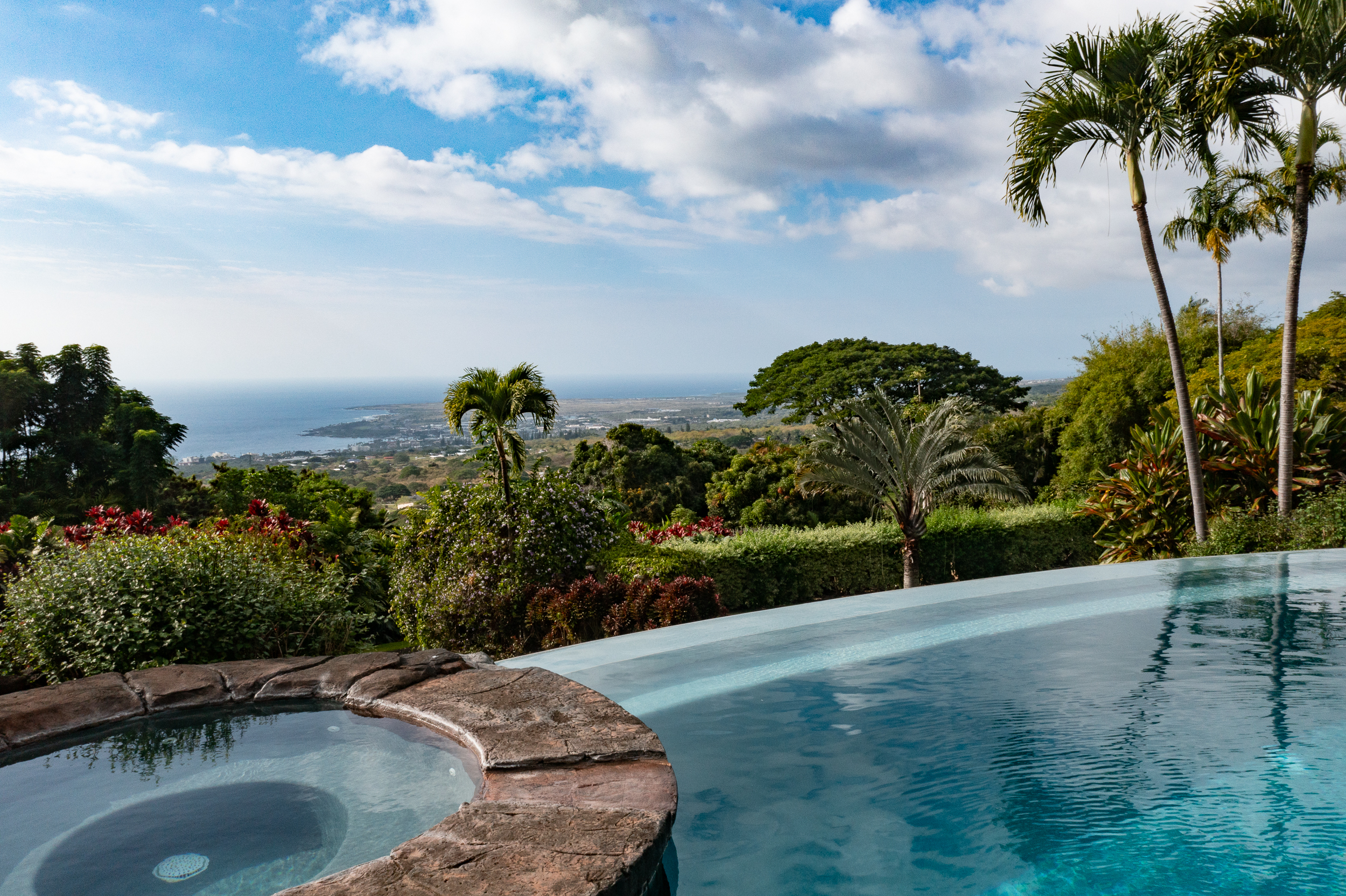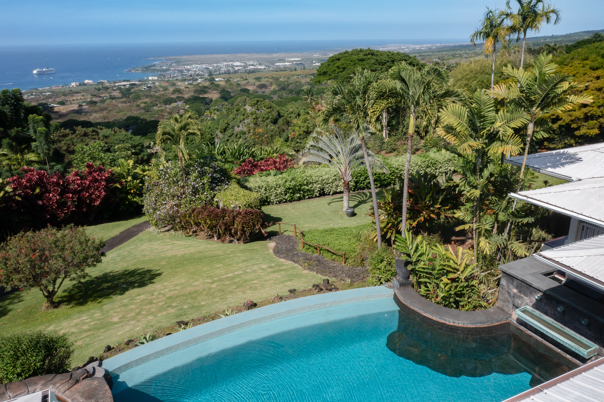 AWE-INSPIRING LUXURY RESORT STYLE ESTATE OUTSIDE OF RESORTS! BREATHTAKING AND DISTINCTIVE! AN EXCEPTIONAL 6 ACRE ESTATE WITH A 1/1 GUEST HOUSE, POOL/SPA , AND SENSATIONAL OCEAN VIEWS! A STUNNING PARK - LIKE SETTING! LUXURY LIVING COMPLETELY REDEFINED! An extraordinary 6 bed/6.5 bath residence awaits, as you enter the beautifully custom gated driveway, long and sleek, lined with commanding Royal Palms. Enter this luxury estate of amazing beauty with custom finish and architecture in every direction, as you are embraced by the magnificent Ocean and Kailua Bay views just in front of you! The rooms are big and bold with the richness of deep mahogany, high ceilings and stunning beams. The impeccably designed gourmet kitchen is rich in cabinetry, leather type granite countertops, and luxury appliances, a chef's dream! The primary suite is breathtaking, in addition all 5 bedrooms are en suites. All bathrooms are beautifully appointed. Powerful yet gracious, warm and welcoming, this estate blends with the natural beauty of the island, plenty of space and a feeling of exclusivity throughout! This beautiful estate property includes an infinity pool with a spa, stunning fountain features, a wine room, enormous lanai's covered in rich Ironwood, lush and well maintained landscaping in every direction, a wonderful variety of flowers, fruit trees, coffee and so much more. A charming 1/1 separate guest home with its own gated entrance and a 2 car garage, is a great place to offer to extended guests and family. This lovely 6 acre estate surrounded with paved walking/golf cart paths for your pleasure, encompasses a true Hawaiiana feeling with a richness and warmth that gives you a feeling that you have arrived! Approximately 12 minutes to Kona town, an ideal location tucked away in tropical privacy. Great elevation. Come and own this luxury estate dream property, a piece of Hawaiian paradise!