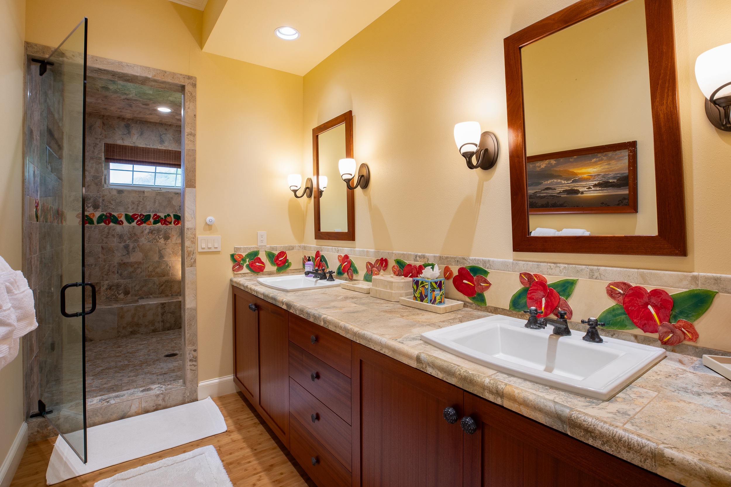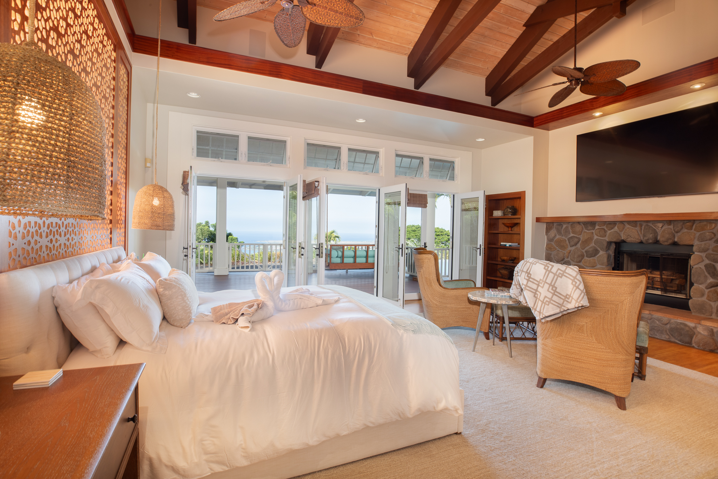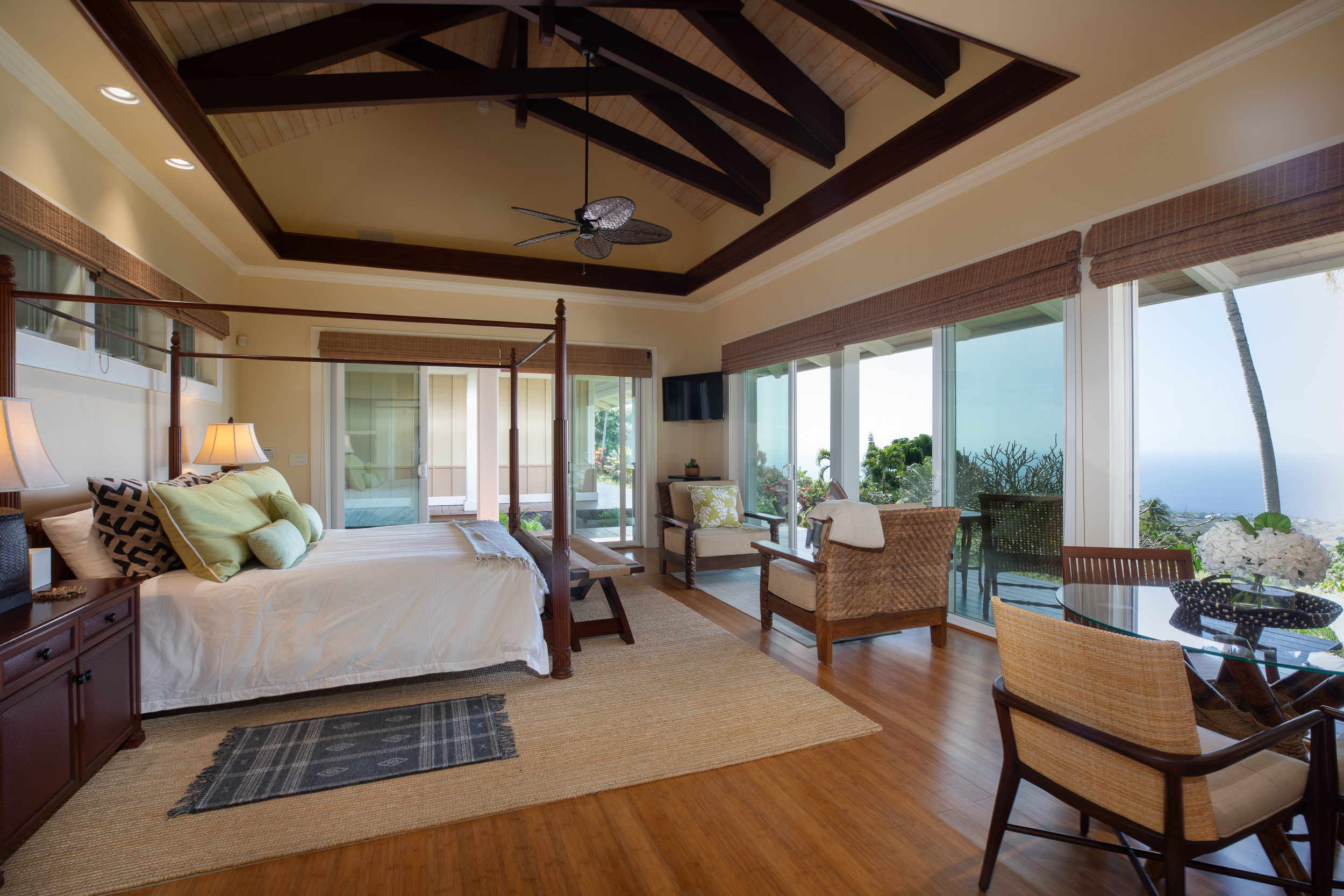 AWE-INSPIRING LUXURY RESORT STYLE ESTATE OUTSIDE OF RESORTS! BREATHTAKING AND DISTINCTIVE! AN EXCEPTIONAL 6 ACRE ESTATE WITH A 1/1 GUEST HOUSE, POOL/SPA , AND SENSATIONAL OCEAN VIEWS! A STUNNING PARK - LIKE SETTING! LUXURY LIVING COMPLETELY REDEFINED! An extraordinary 6 bed/6.5 bath residence awaits, as you enter the beautifully custom gated driveway, long and sleek, lined with commanding Royal Palms. Enter this luxury estate of amazing beauty with custom finish and architecture in every direction, as you are embraced by the magnificent Ocean and Kailua Bay views just in front of you! The rooms are big and bold with the richness of deep mahogany, high ceilings and stunning beams. The impeccably designed gourmet kitchen is rich in cabinetry, leather type granite countertops, and luxury appliances, a chef's dream! The primary suite is breathtaking, in addition all 5 bedrooms are en suites. All bathrooms are beautifully appointed. Powerful yet gracious, warm and welcoming, this estate blends with the natural beauty of the island, plenty of space and a feeling of exclusivity throughout! This beautiful estate property includes an infinity pool with a spa, stunning fountain features, a wine room, enormous lanai's covered in rich Ironwood, lush and well maintained landscaping in every direction, a wonderful variety of flowers, fruit trees, coffee and so much more. A charming 1/1 separate guest home with its own gated entrance and a 2 car garage, is a great place to offer to extended guests and family. This lovely 6 acre estate surrounded with paved walking/golf cart paths for your pleasure, encompasses a true Hawaiiana feeling with a richness and warmth that gives you a feeling that you have arrived! Approximately 12 minutes to Kona town, an ideal location tucked away in tropical privacy. Great elevation. Come and own this luxury estate dream property, a piece of Hawaiian paradise!
