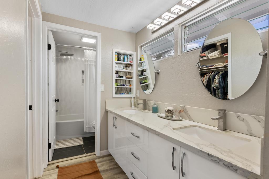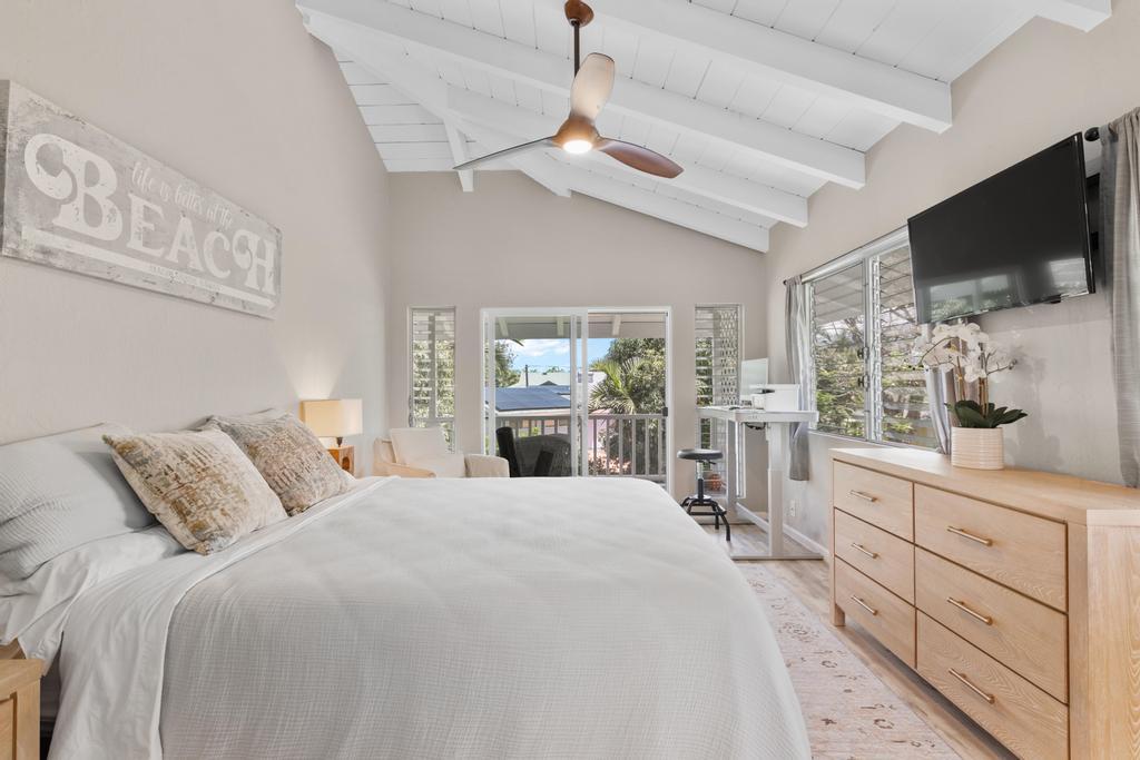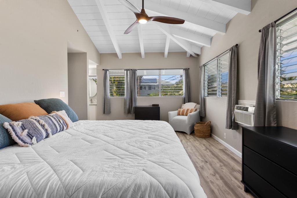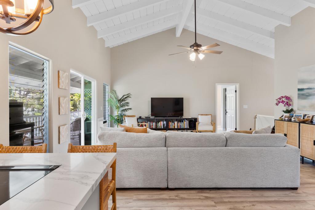 Located in the sought-after White Sands neighborhood, this one's got location, flexibility, and built-in cash flow. Just a short walk to Magic Sands Beach, this beautifully maintained home offers the perfect blend of residential comfort and income-generating potential. Featuring a flexible layout with a full upstairs residence and three studio suites downstairs, this property is ideal for those seeking a live-in investment or multi-generational living. Upstairs features a bright 2-bedroom, 2-bath layout with vaulted ceilings, large windows, and an open-concept design. The primary suite includes an en suite bath, while the second bedroom is ideal for guests, family, or a home office. Downstairs are three private, separately accessed suites with their own lanais. Lots of potential with this home!