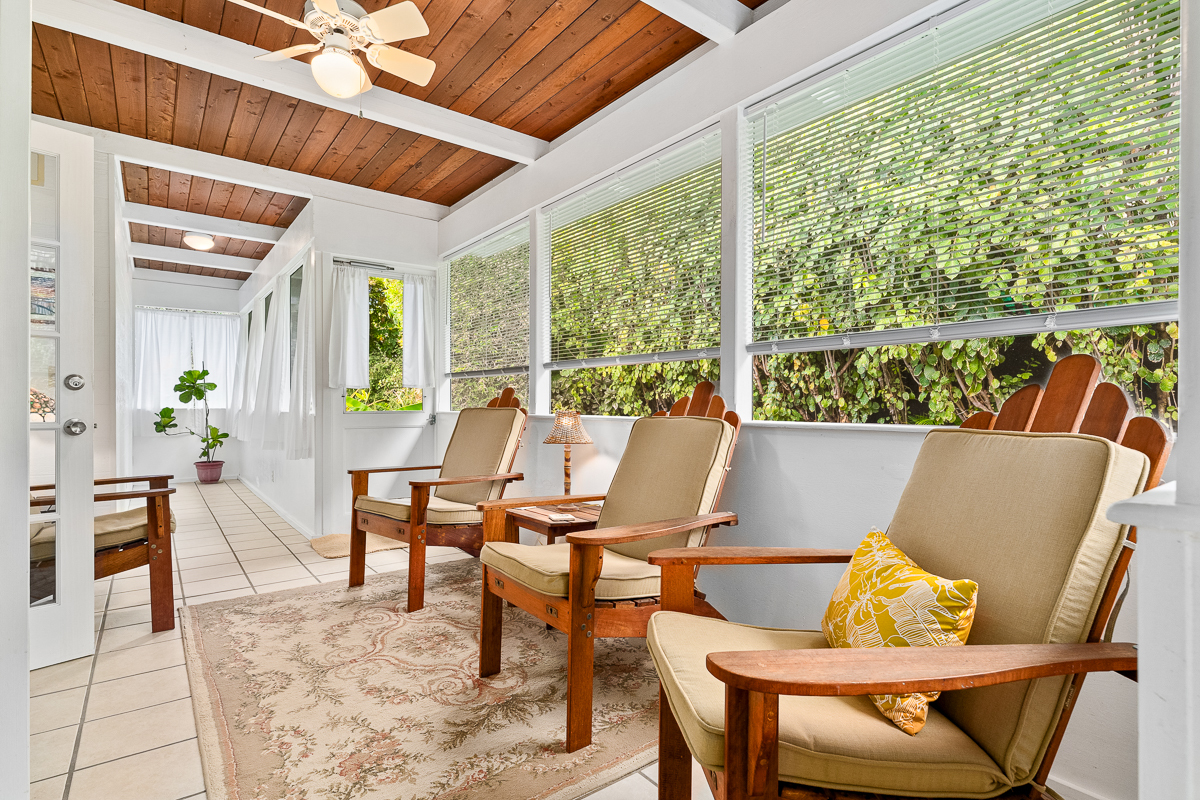 Thoroughly updated and fully permitted, the main home offers 3 bedrooms and 2 baths with an enclosed screened lanai. The distinctive cupola roof enhances natural ventilation, light and island style, offering both comfort and charm. An enclosed backyard with tropical plantings creates a serene and private setting.