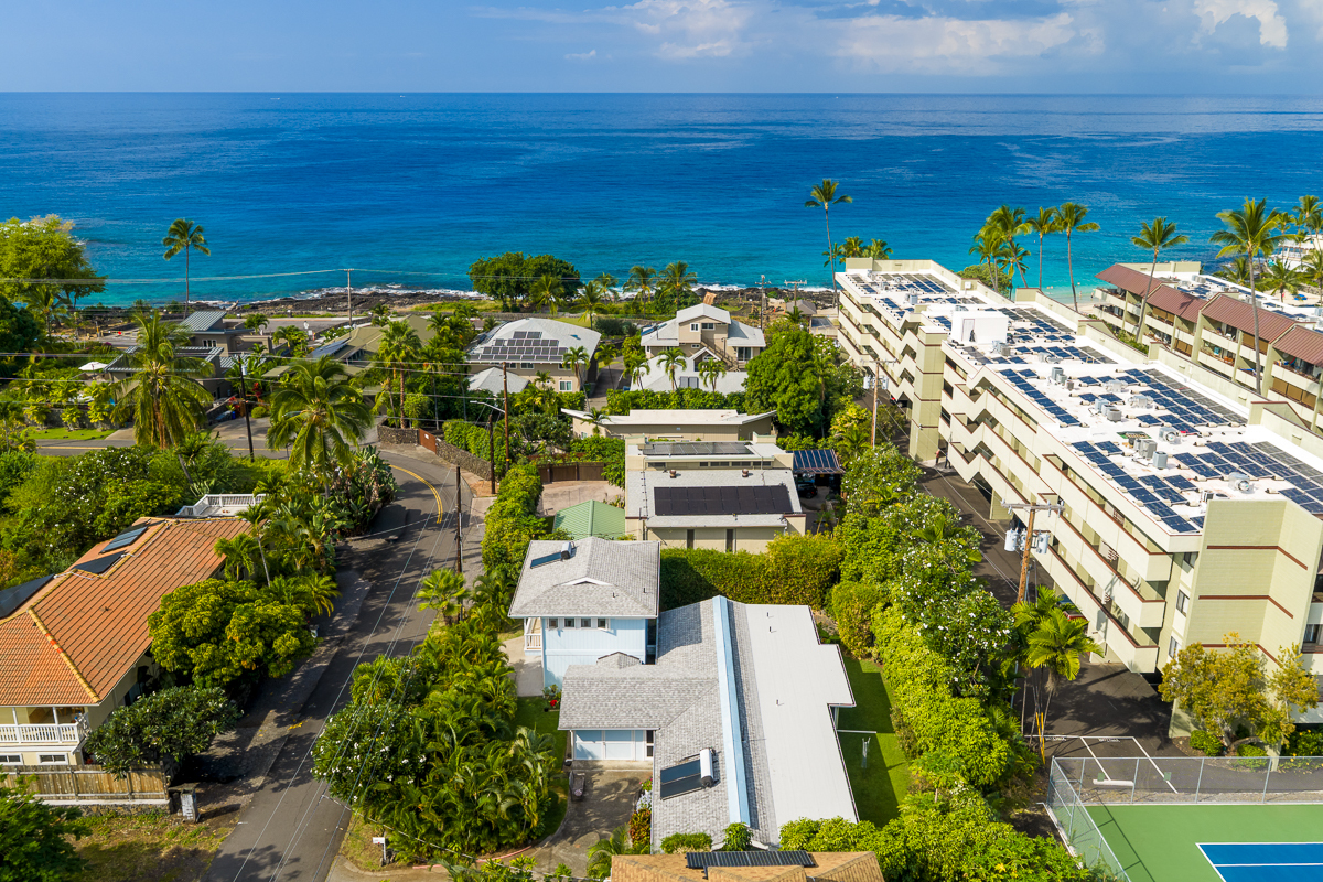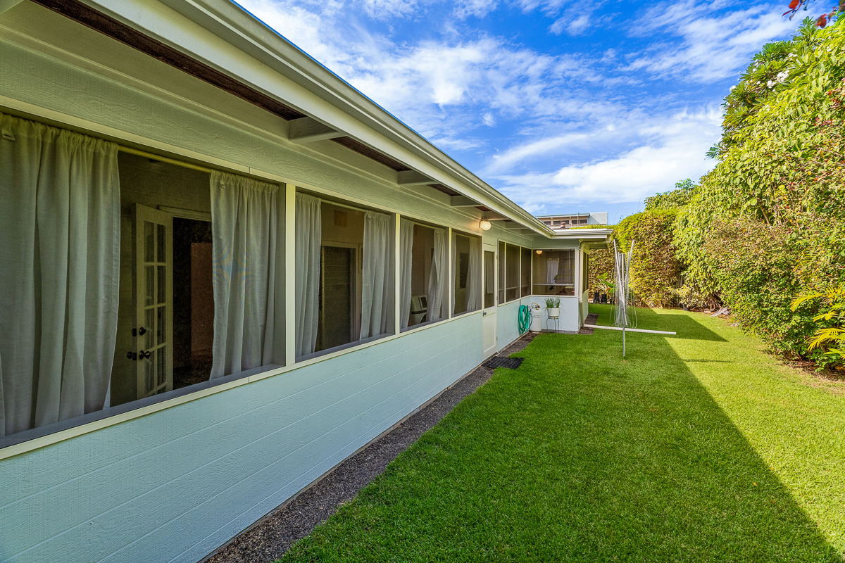 Located on a quiet street without thru traffic the property enjoys peaceful privacy while being minutes from Magic Sands Beach park, the Kona coastline and vibrant Alii Drive. Morning swims, surf sessions and sunset watching are all within easy reach. A neighborhood path leads directly to the beach and a local restaurant.