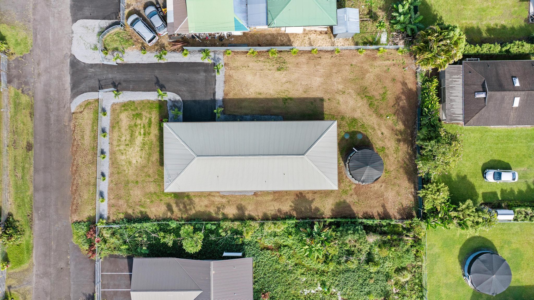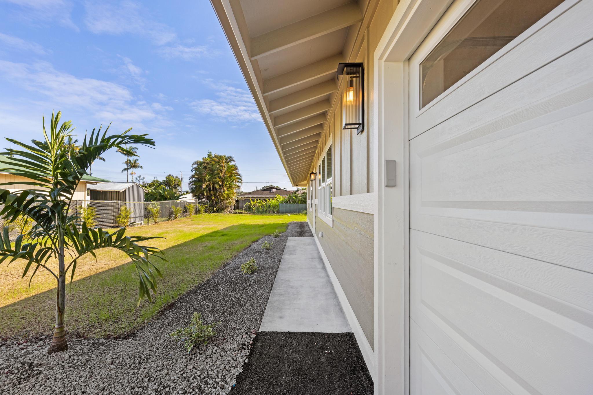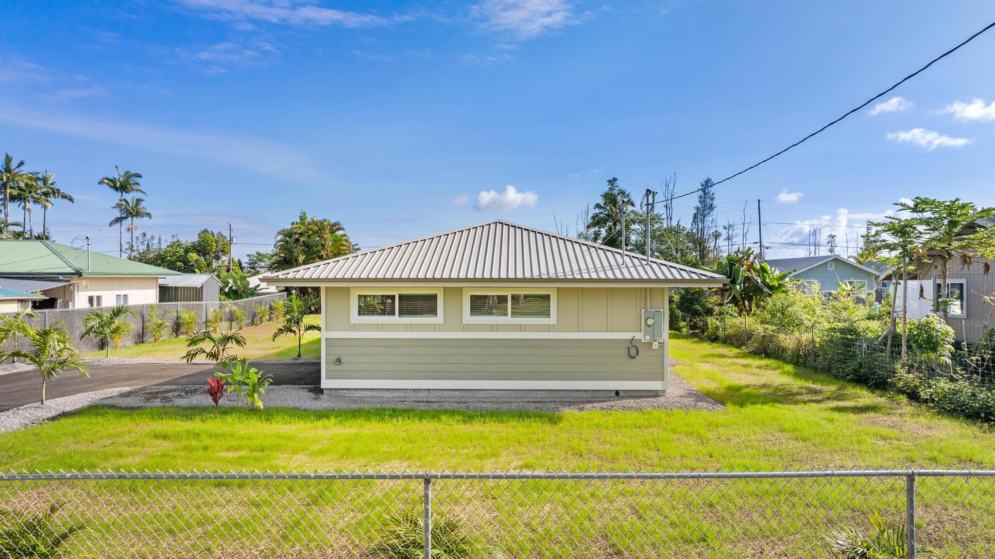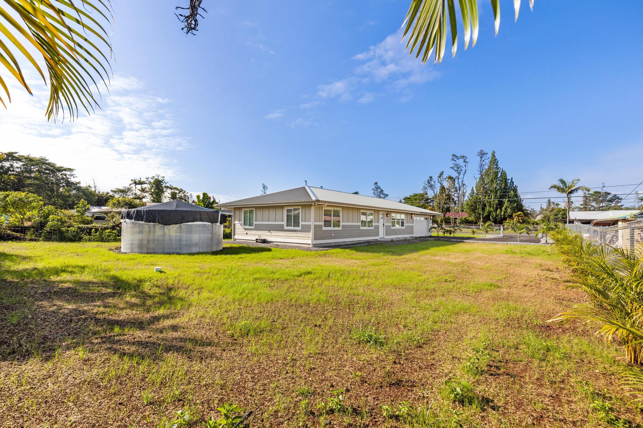 You Asked… and We Delivered! Turnkey Living in Ainaloa on Uilani Drive! This brand new home was built with you in mind. You asked for a 3 bedroom home with more than two bathrooms, we delivered 2.5! You asked for a chain link fence, we added one with a gate. You asked for a driveway, we paved it with asphalt. You wanted an enclosed garage, we built it in. You asked for a yard and landscaping, we gave you grass and native plants. You asked to be on a paved road, well, we are, right toward the front half of the subdivision! From the moment you arrive, you’ll see this home stands out from the rest. Sitting on a spacious 12,000 sq ft lot, it’s designed for comfort, style, and functionality. Step inside to an open concept floor plan featuring 3 bedrooms, 2 full bathrooms, plus an additional half bath conveniently located in the lovely epoxy garage. The modern kitchen is the heart of the home, with a 7 foot quartz island, custom tile backsplash, dishwasher, and clean contemporary finishes. High-end tile flows throughout the bathrooms, offering natural texture and long-lasting quality. You’ll love the barn style windows, window blinds already installed, and the bright, airy feel throughout. Outside, enjoy classic board-and-batten siding, a brand new asphalt driveway, chain link fencing with palm lined borders for privacy, and a freshly seeded lawn ready for you to make it your own. With a 1 year general contractor’s warranty included, this home is as solid as it is stunning. Don’t miss your chance to own a brand new home in one of Puna’s most desirable and fast-growing neighborhoods. This one truly delivers.