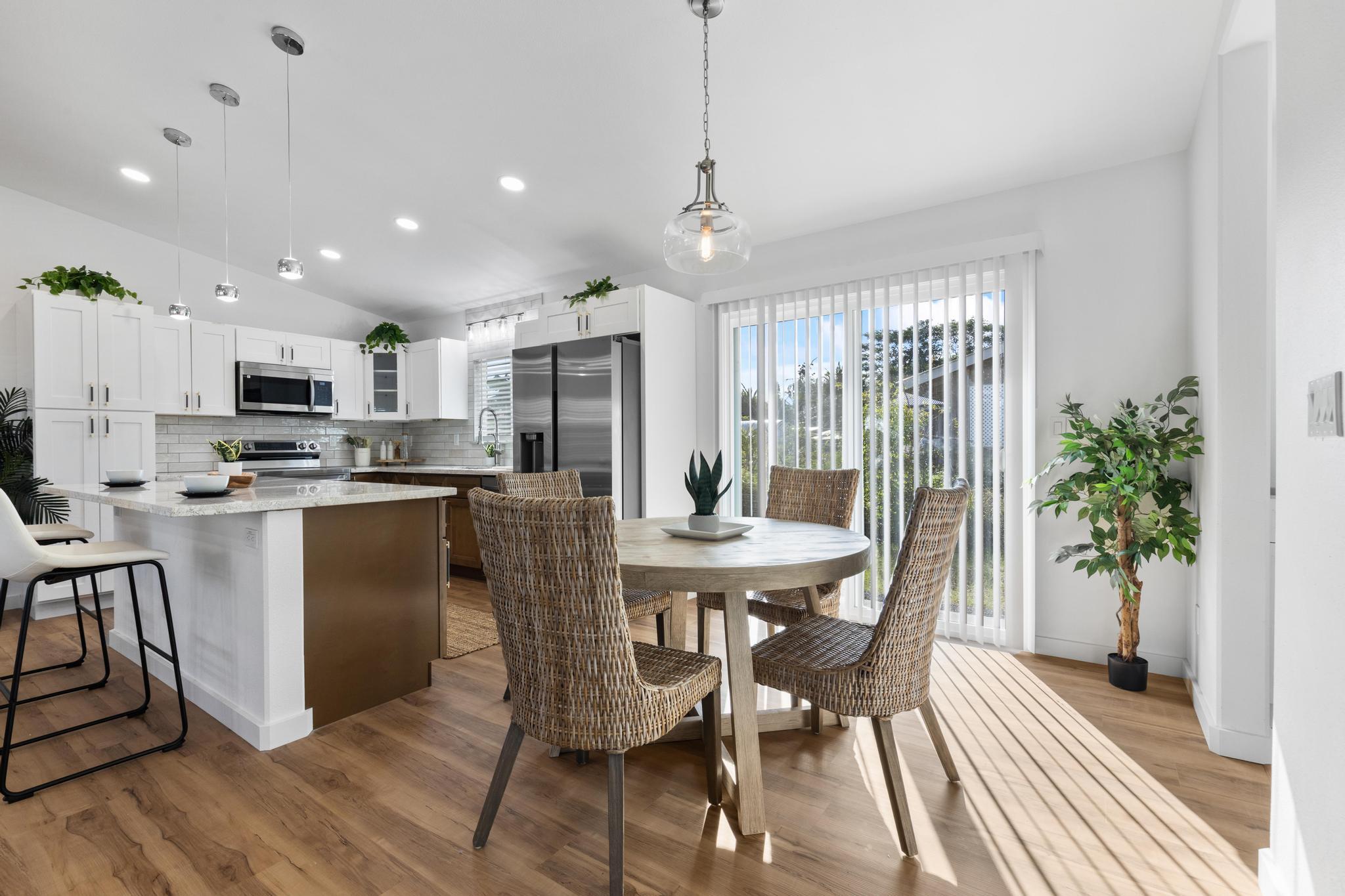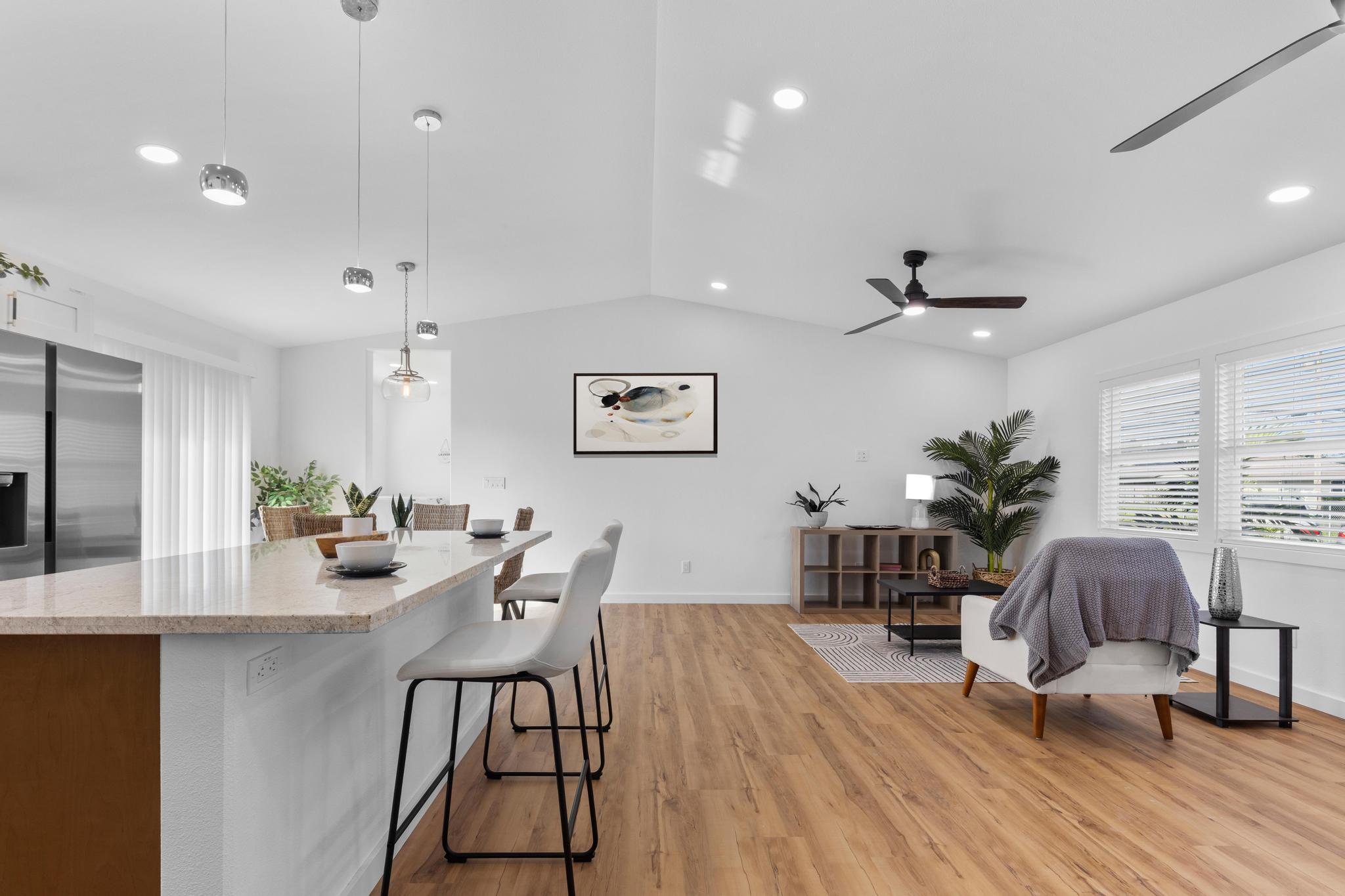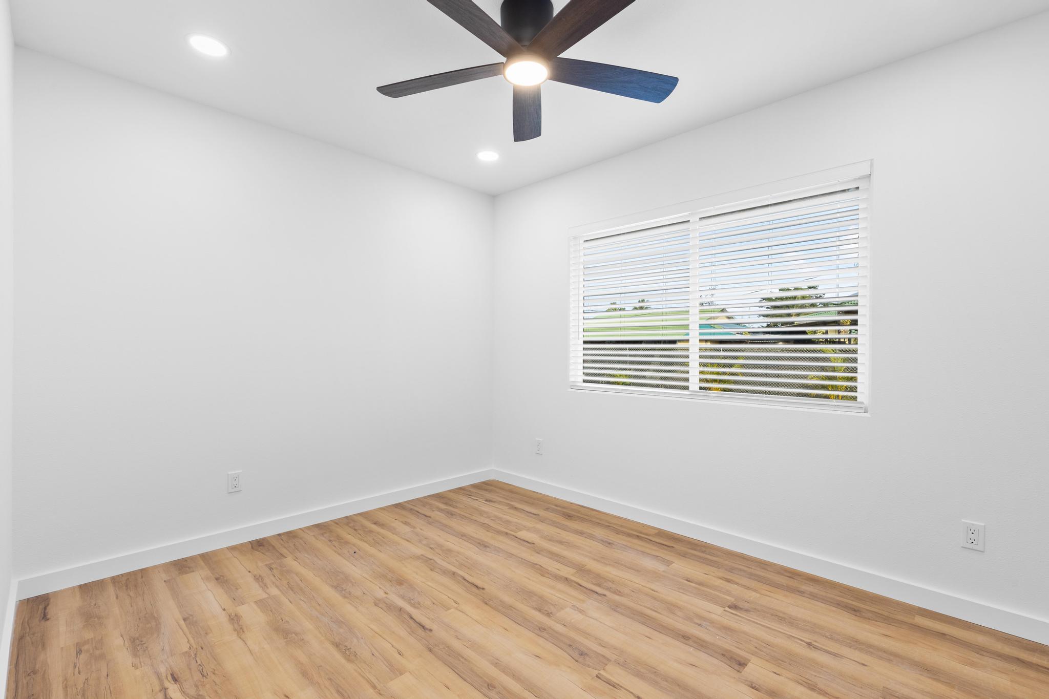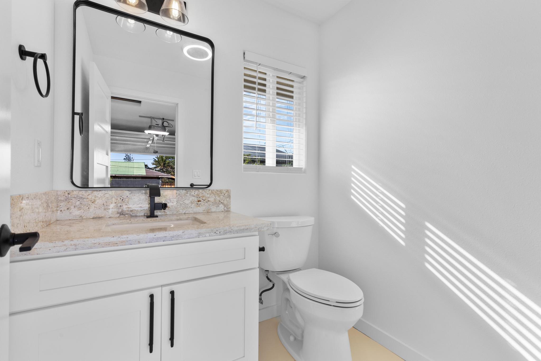 You Asked… and We Delivered! Turnkey Living in Ainaloa on Uilani Drive! This brand new home was built with you in mind. You asked for a 3 bedroom home with more than two bathrooms, we delivered 2.5! You asked for a chain link fence, we added one with a gate. You asked for a driveway, we paved it with asphalt. You wanted an enclosed garage, we built it in. You asked for a yard and landscaping, we gave you grass and native plants. You asked to be on a paved road, well, we are, right toward the front half of the subdivision! From the moment you arrive, you’ll see this home stands out from the rest. Sitting on a spacious 12,000 sq ft lot, it’s designed for comfort, style, and functionality. Step inside to an open concept floor plan featuring 3 bedrooms, 2 full bathrooms, plus an additional half bath conveniently located in the lovely epoxy garage. The modern kitchen is the heart of the home, with a 7 foot quartz island, custom tile backsplash, dishwasher, and clean contemporary finishes. High-end tile flows throughout the bathrooms, offering natural texture and long-lasting quality. You’ll love the barn style windows, window blinds already installed, and the bright, airy feel throughout. Outside, enjoy classic board-and-batten siding, a brand new asphalt driveway, chain link fencing with palm lined borders for privacy, and a freshly seeded lawn ready for you to make it your own. With a 1 year general contractor’s warranty included, this home is as solid as it is stunning. Don’t miss your chance to own a brand new home in one of Puna’s most desirable and fast-growing neighborhoods. This one truly delivers.