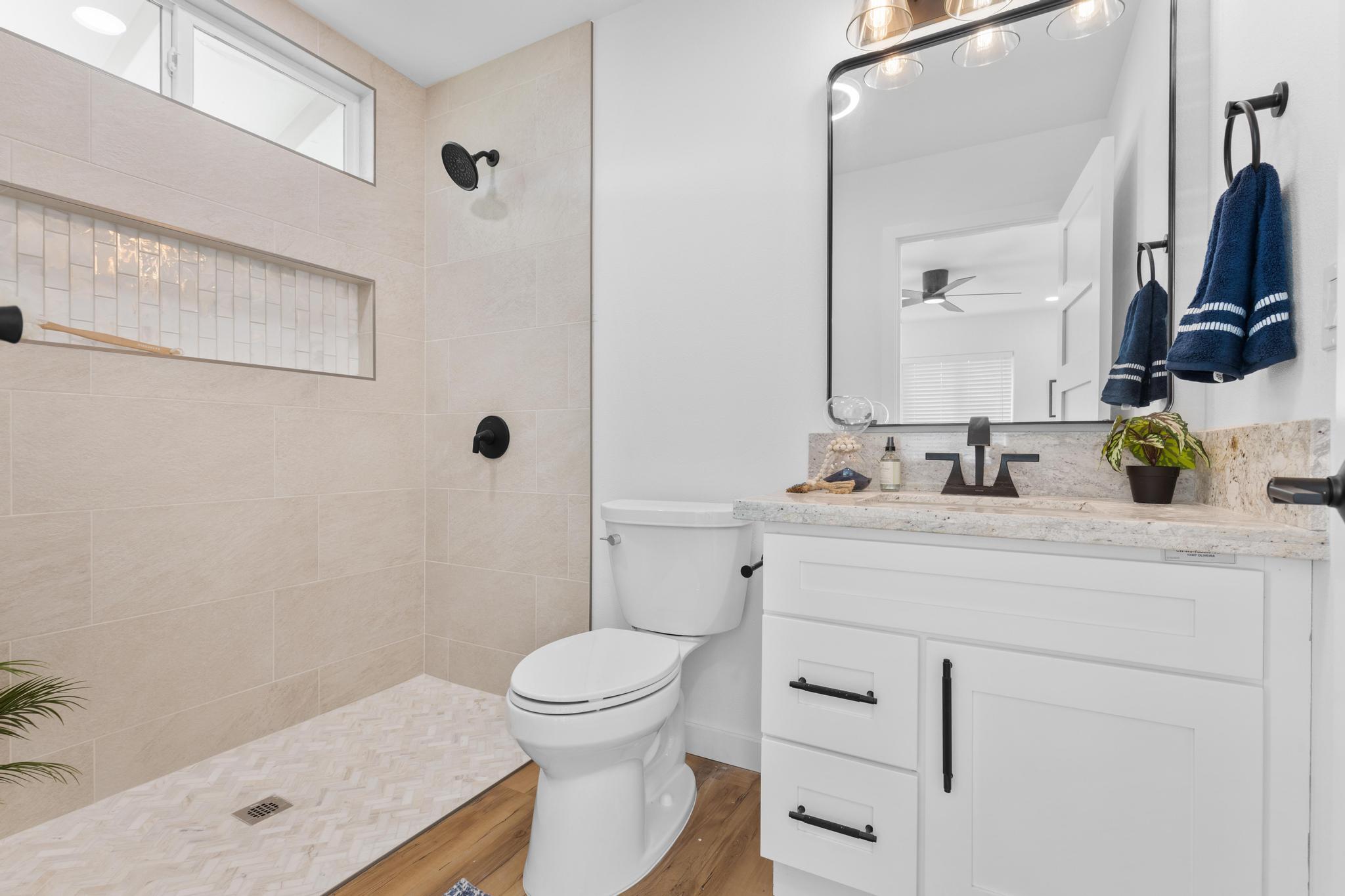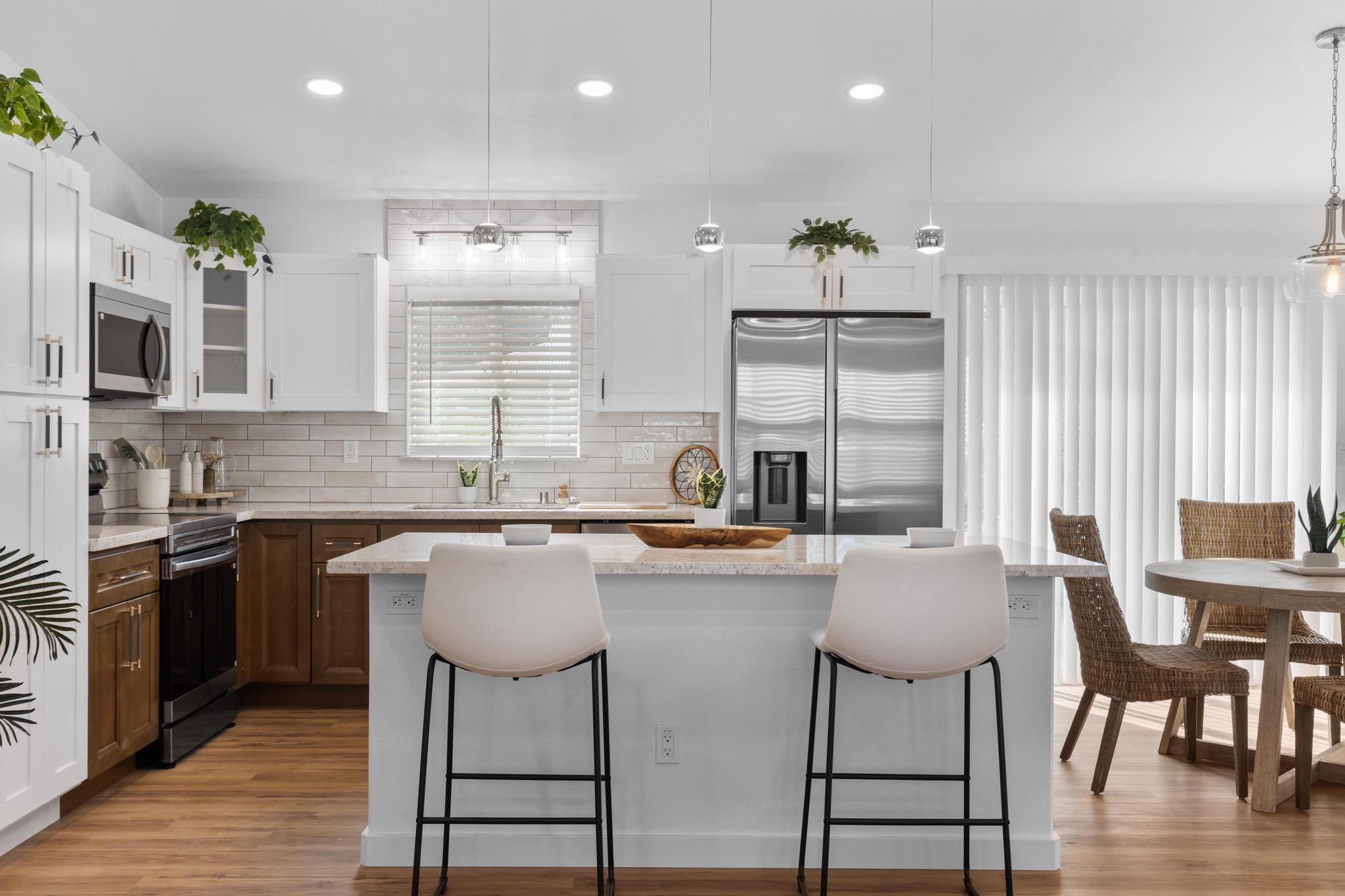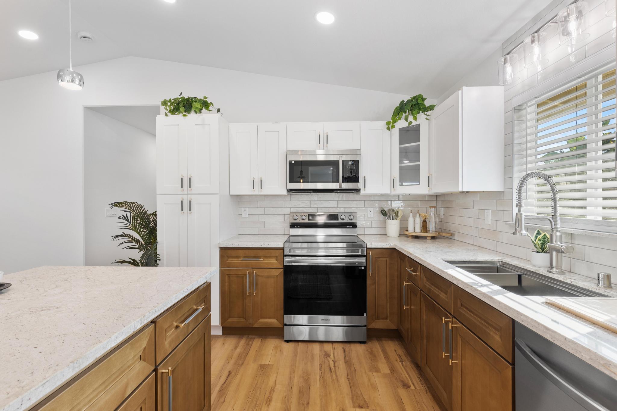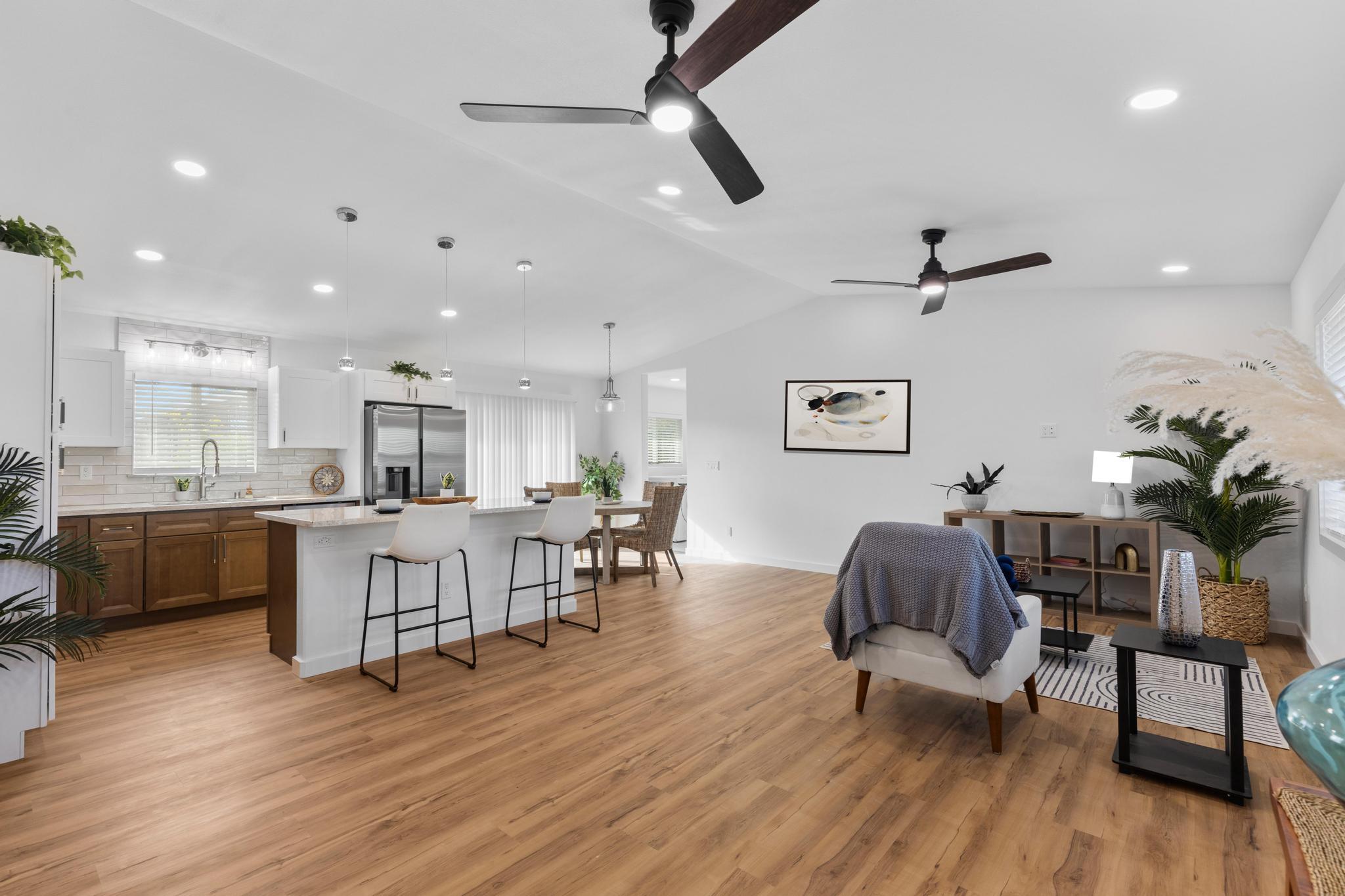 You Asked… and We Delivered! Turnkey Living in Ainaloa on Uilani Drive! This brand new home was built with you in mind. You asked for a 3 bedroom home with more than two bathrooms, we delivered 2.5! You asked for a chain link fence, we added one with a gate. You asked for a driveway, we paved it with asphalt. You wanted an enclosed garage, we built it in. You asked for a yard and landscaping, we gave you grass and native plants. You asked to be on a paved road, well, we are, right toward the front half of the subdivision! From the moment you arrive, you’ll see this home stands out from the rest. Sitting on a spacious 12,000 sq ft lot, it’s designed for comfort, style, and functionality. Step inside to an open concept floor plan featuring 3 bedrooms, 2 full bathrooms, plus an additional half bath conveniently located in the lovely epoxy garage. The modern kitchen is the heart of the home, with a 7 foot quartz island, custom tile backsplash, dishwasher, and clean contemporary finishes. High-end tile flows throughout the bathrooms, offering natural texture and long-lasting quality. You’ll love the barn style windows, window blinds already installed, and the bright, airy feel throughout. Outside, enjoy classic board-and-batten siding, a brand new asphalt driveway, chain link fencing with palm lined borders for privacy, and a freshly seeded lawn ready for you to make it your own. With a 1 year general contractor’s warranty included, this home is as solid as it is stunning. Don’t miss your chance to own a brand new home in one of Puna’s most desirable and fast-growing neighborhoods. This one truly delivers.